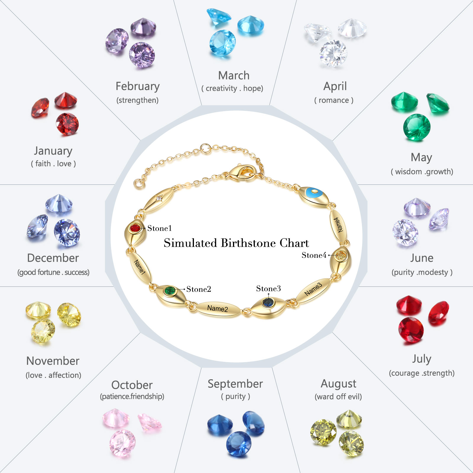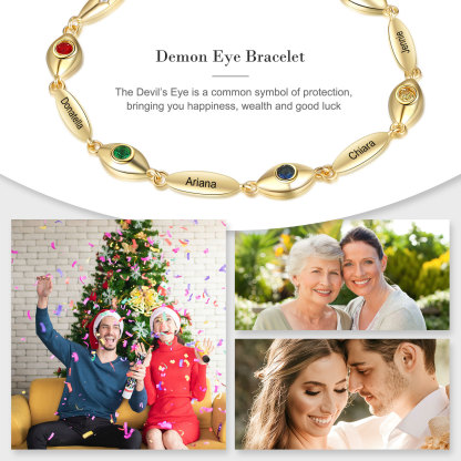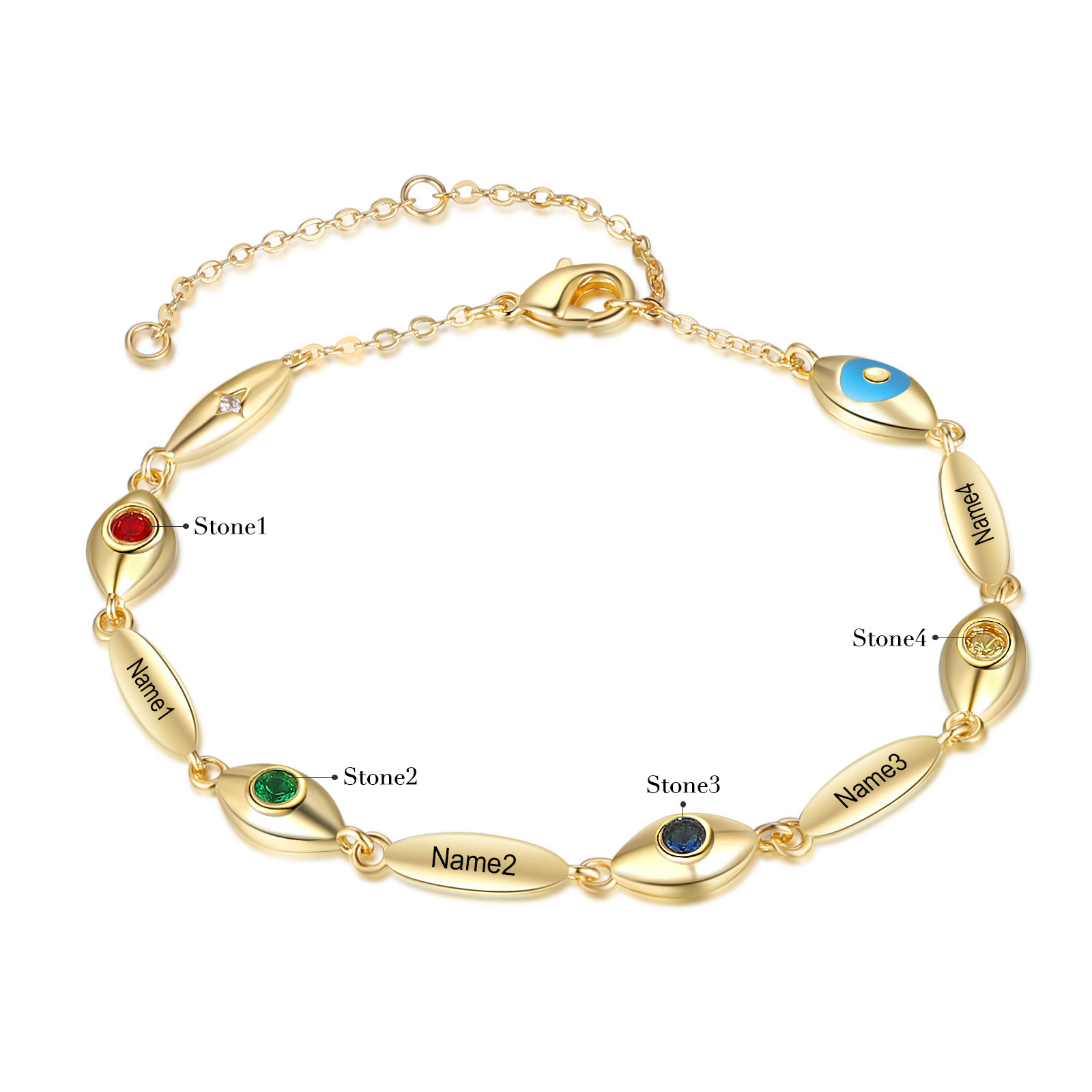 Personalized Demon Eye Bracelet With 4 Birthstones Engraved Name Bracelet Gifts For Her