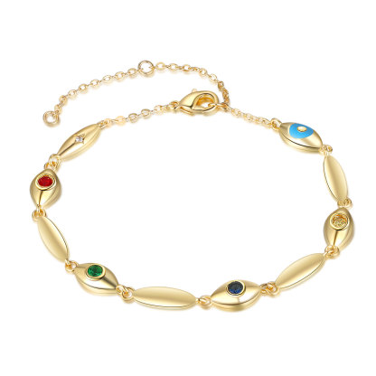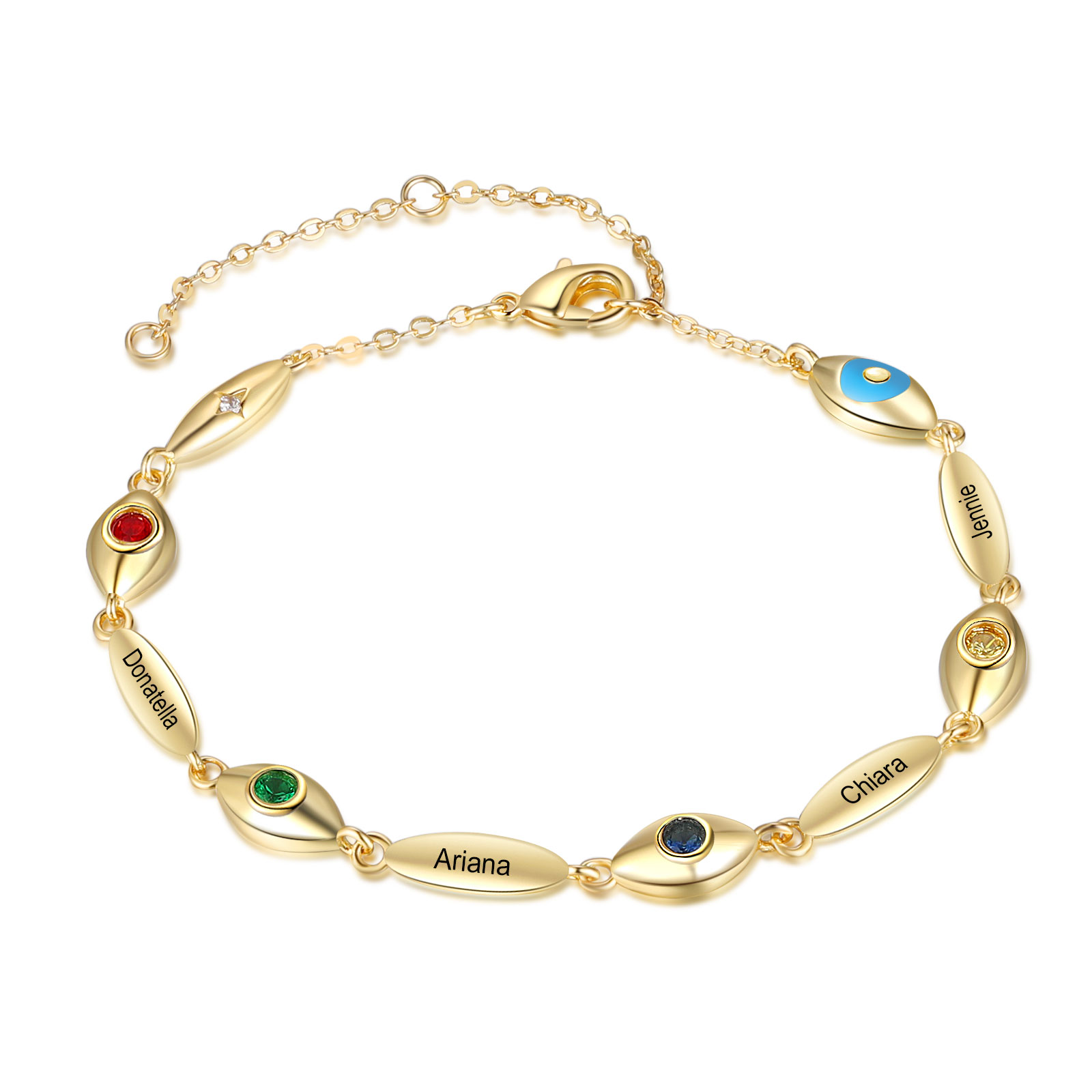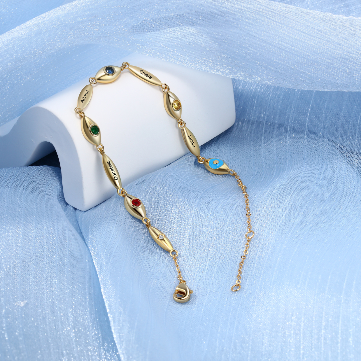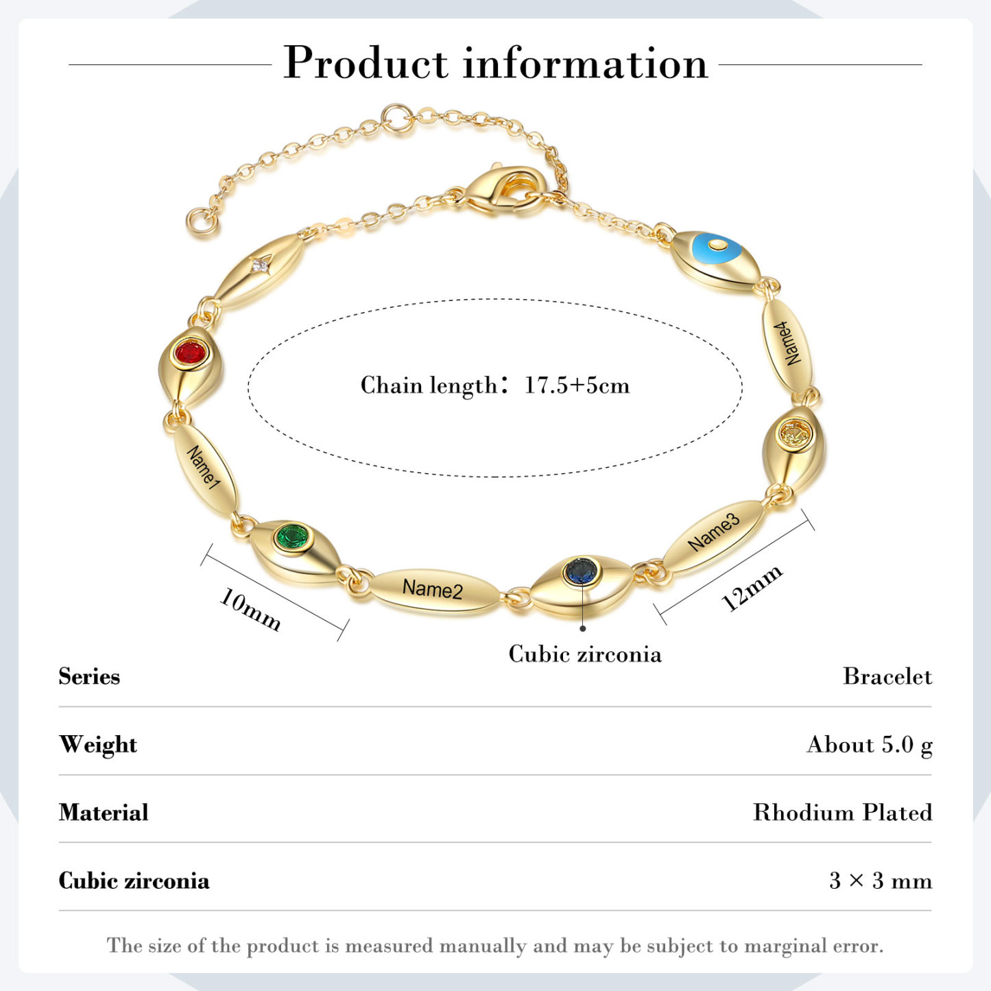 Personalized Demon Eye Bracelet With 4 Birthstones Engraved Name Bracelet Gifts For Her