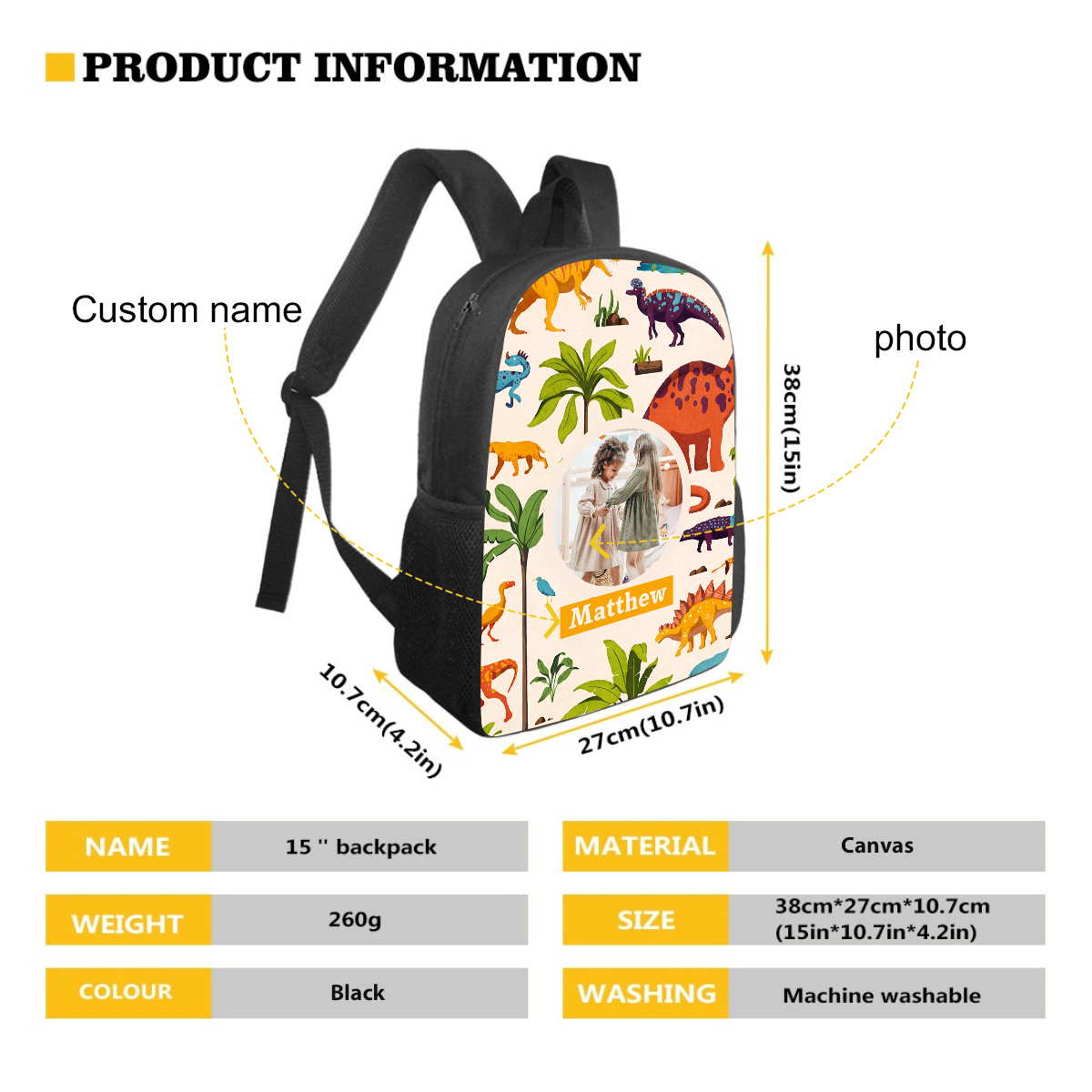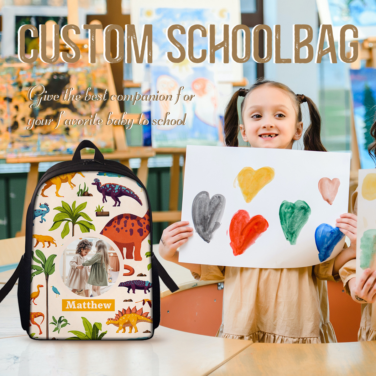 Introducing our newest personalized backpack designed especially for young students! This backpack is the perfect choice to accompany your child on their educational journey. With its customizable feature, you can add your child's name and photo, making it uniquely theirs.