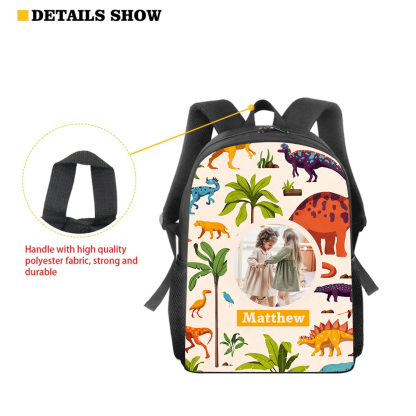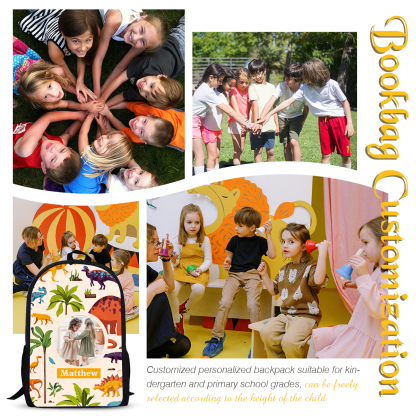 Personalized Dinosaur World School Bag Name Backpack, Customized Schoolbag Travel Bag For Kids