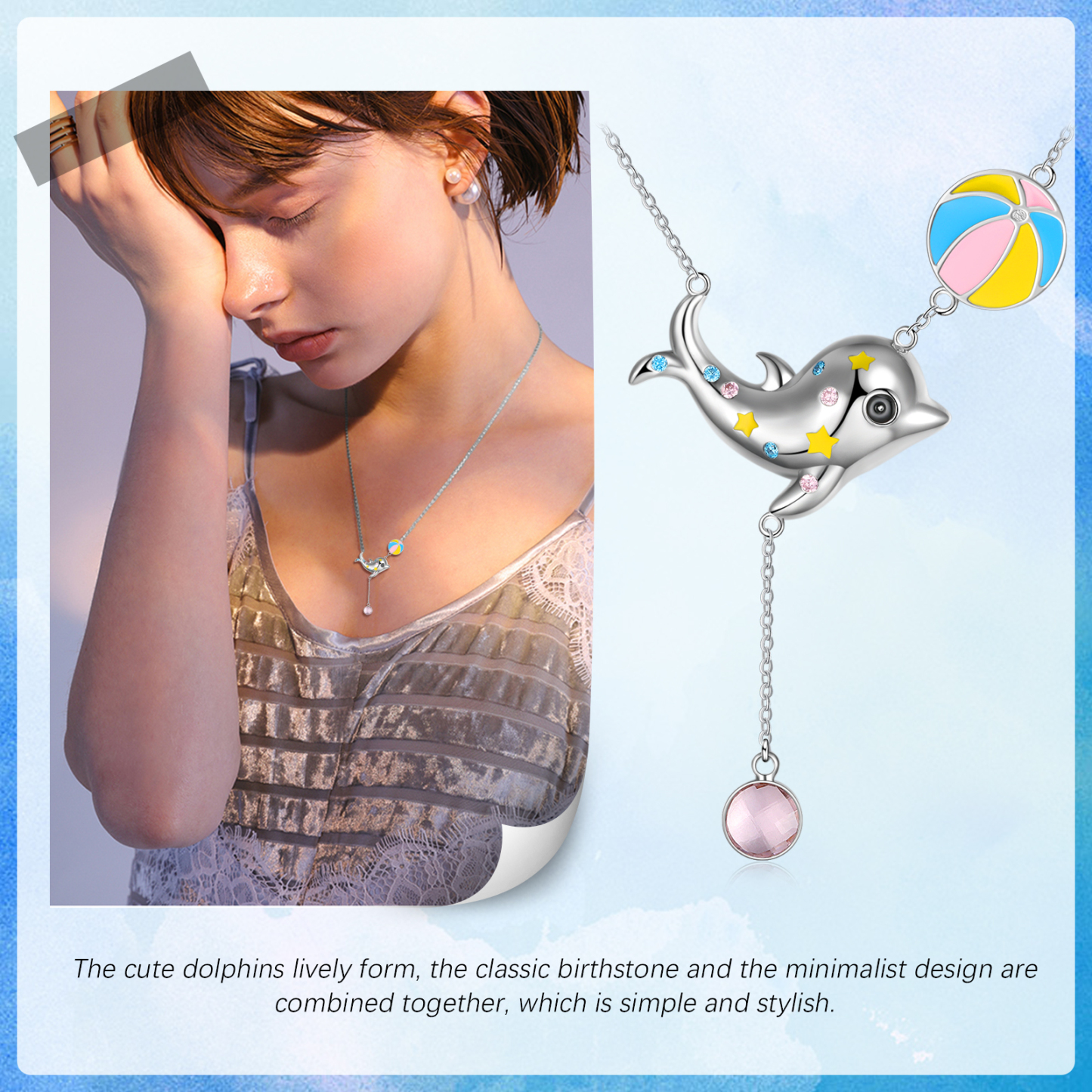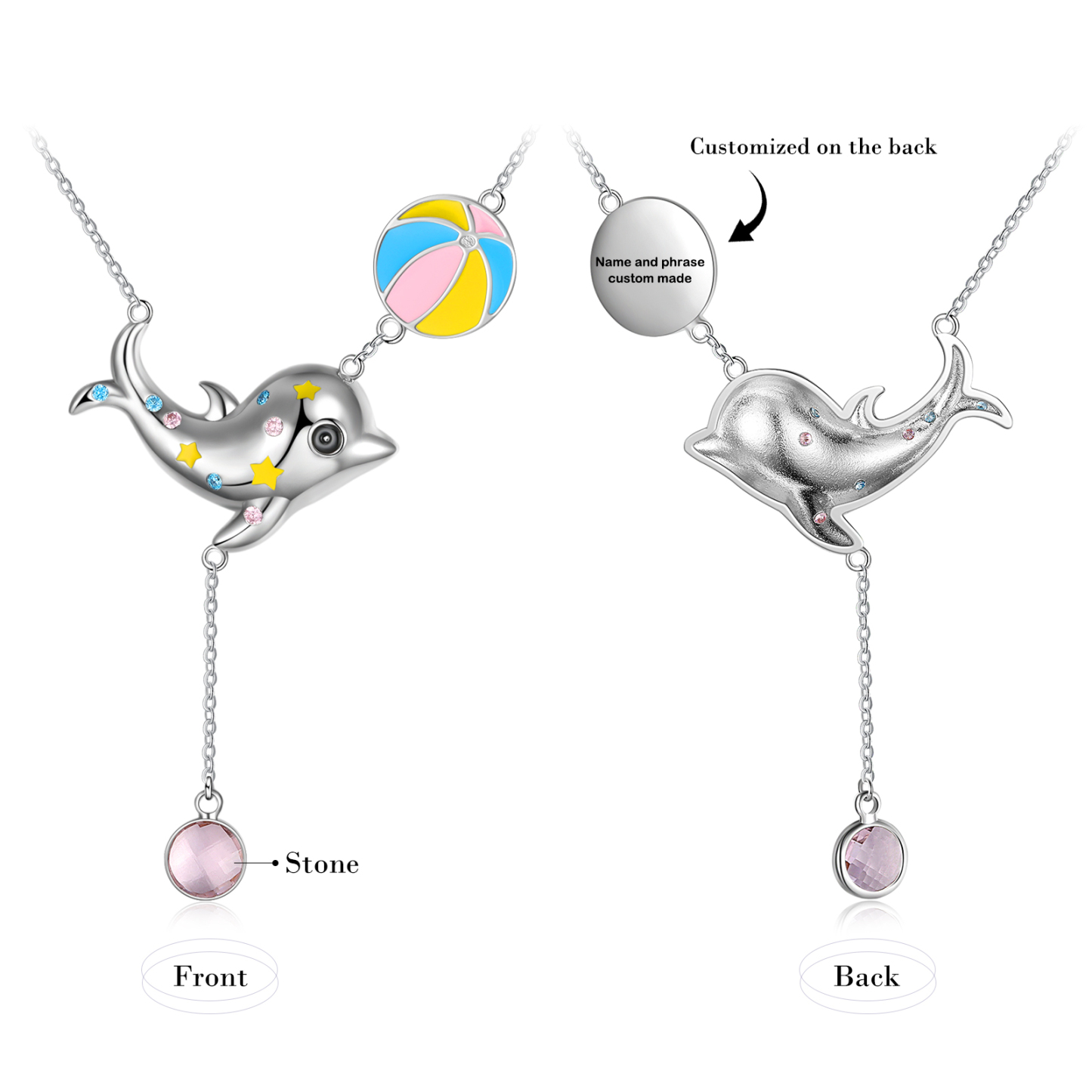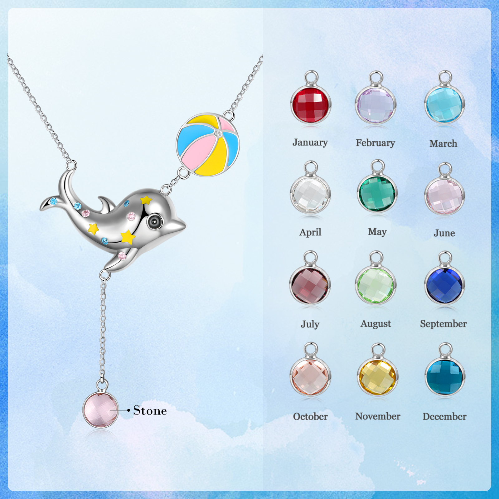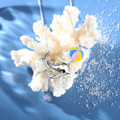 Personalized Dolphin Necklace With Birthstone Custom Name Necklace Gifts For Her
