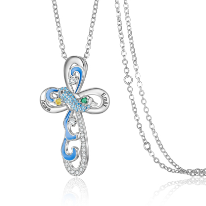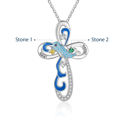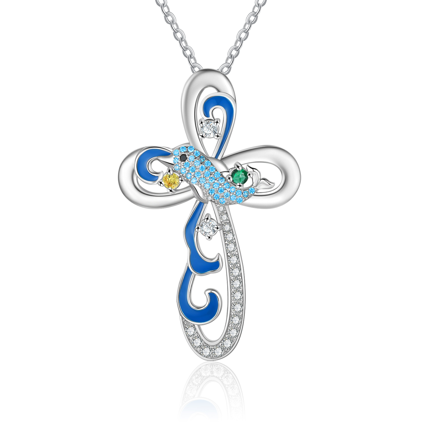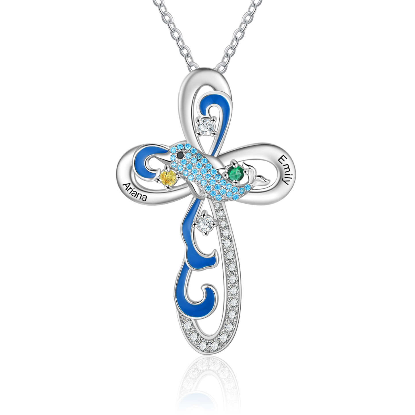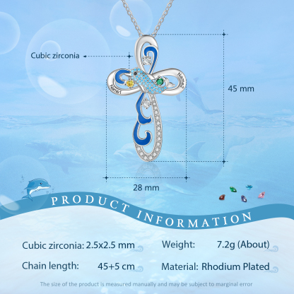 Personalized Dolphin Necklace With Names Custom 2 Birthstones Cross Necklace Gifts for Her