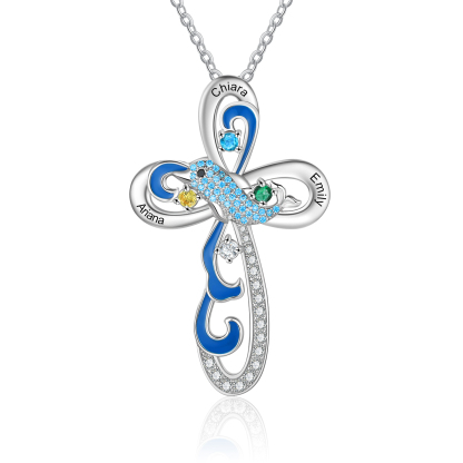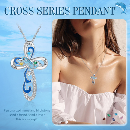 Personalized Dolphin Necklace With Names Custom 3 Birthstones Cross Necklace Gifts for Her
