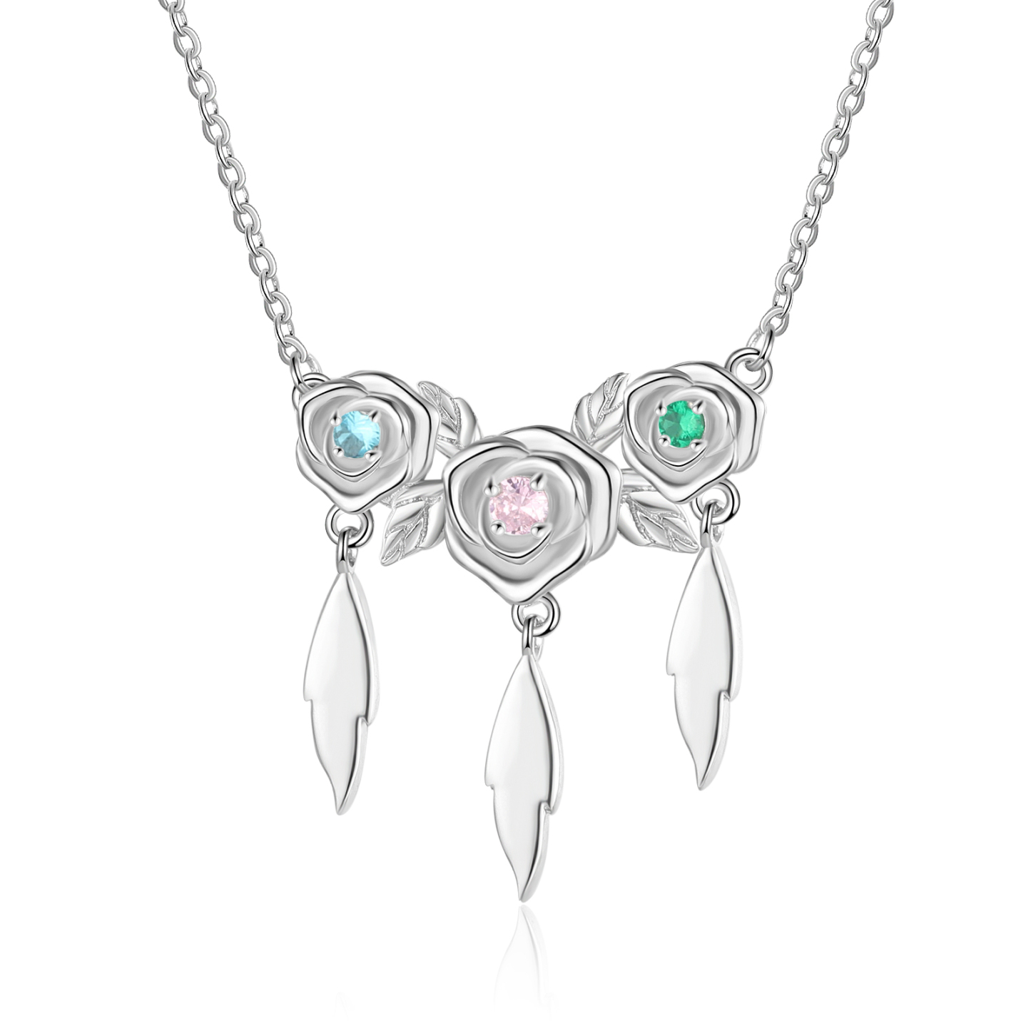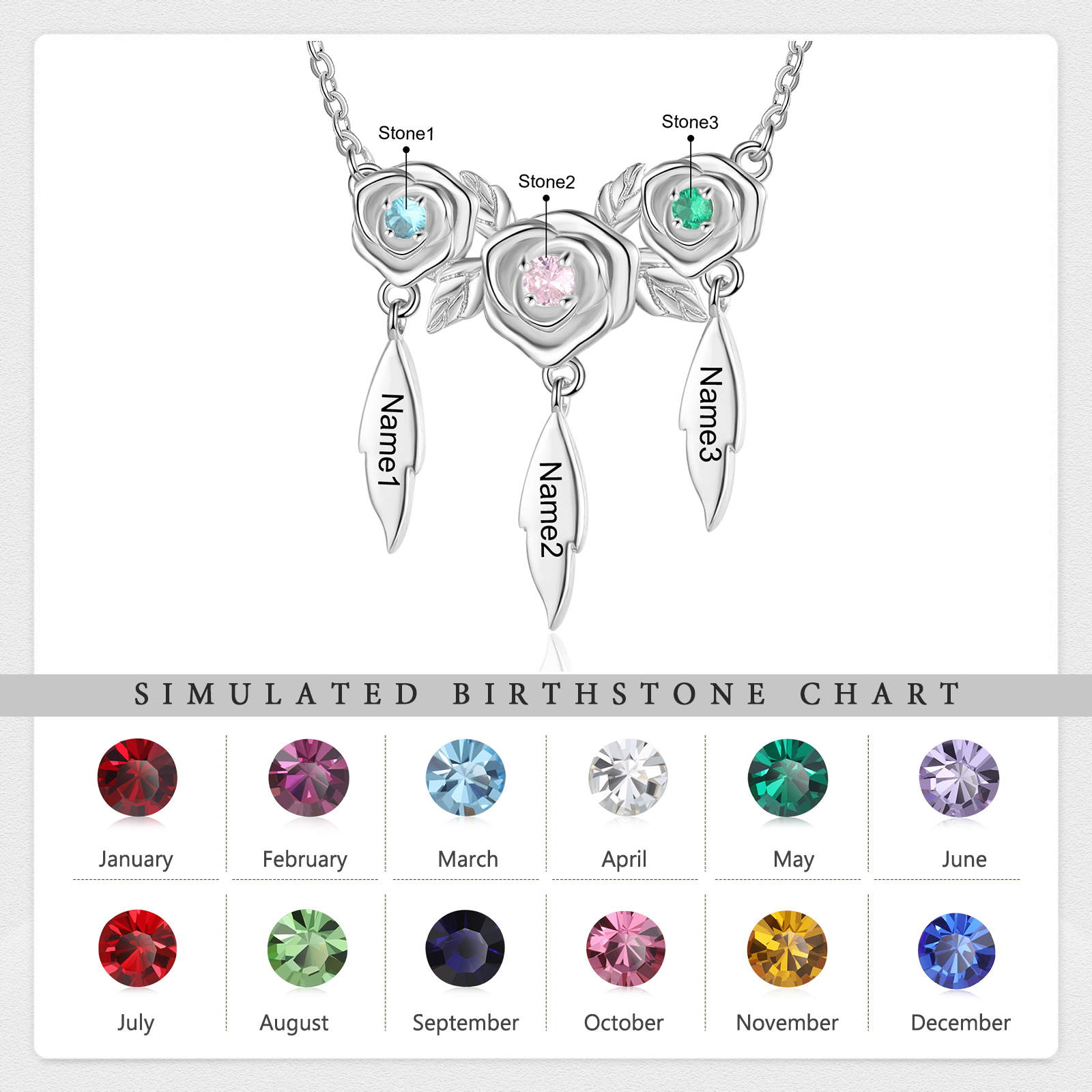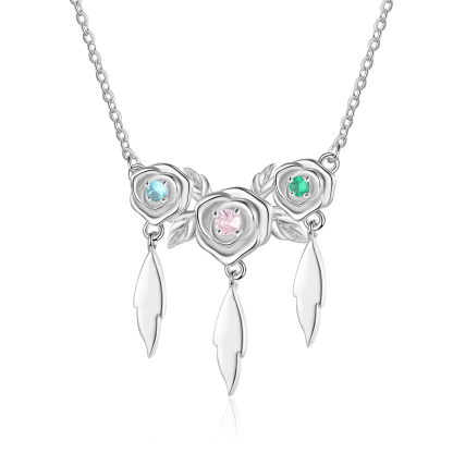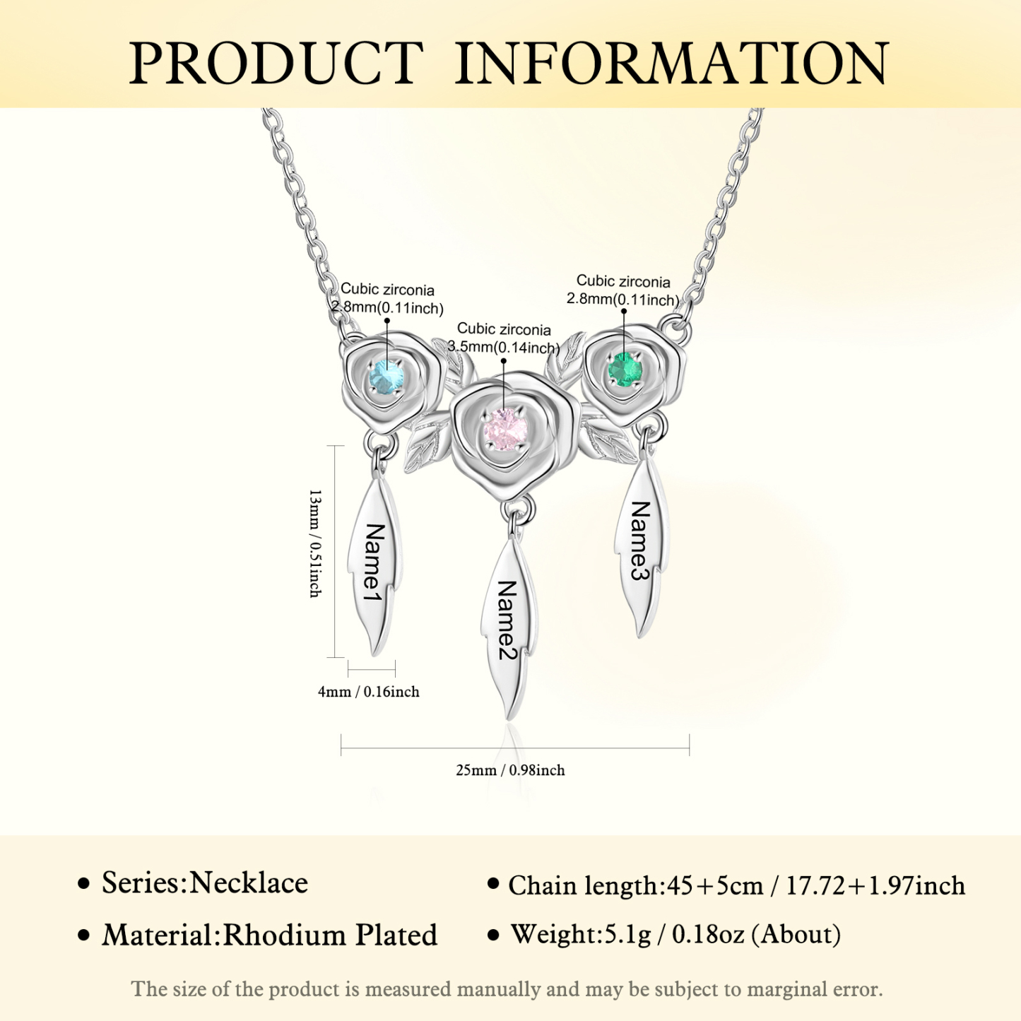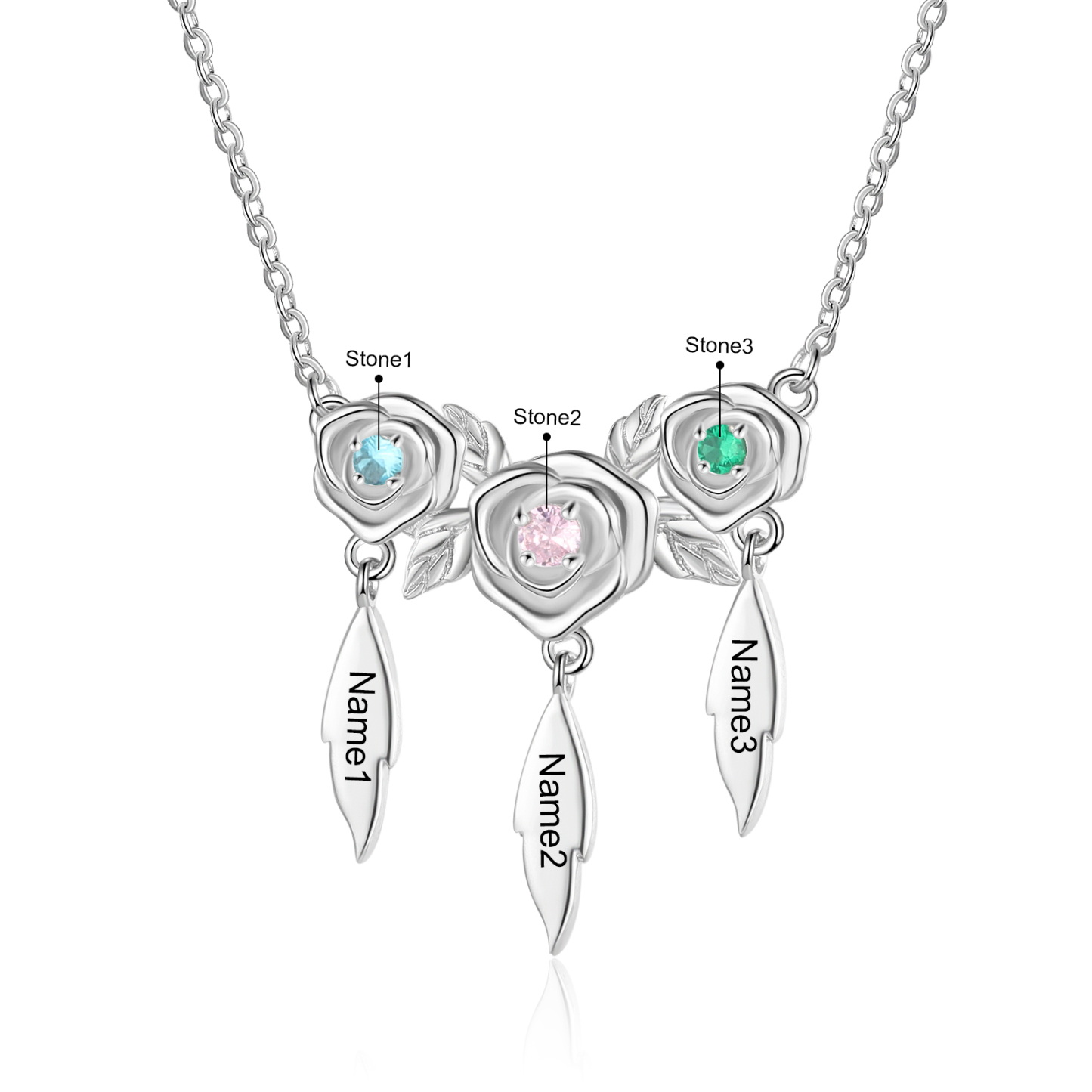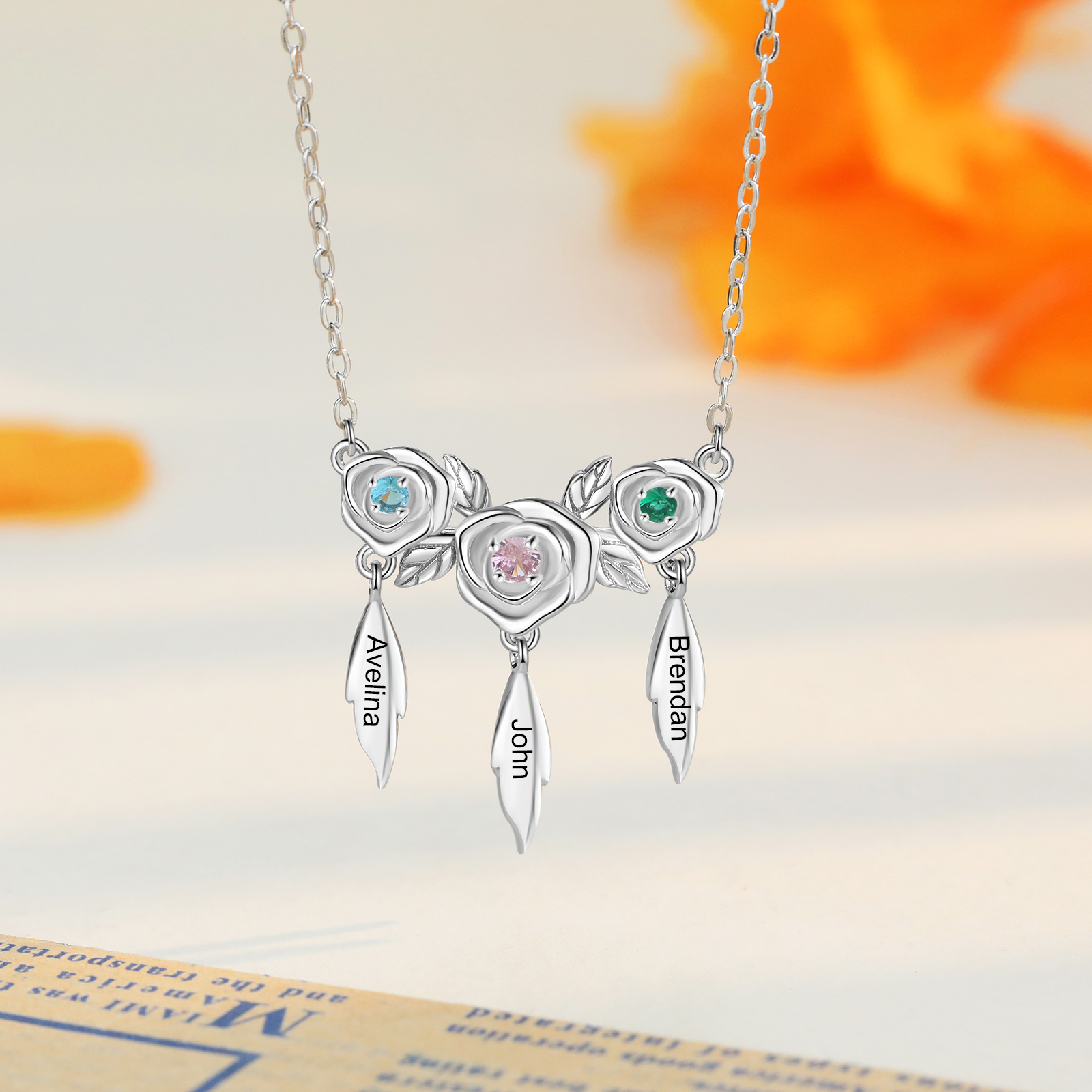 Personalized Dream Catcher Necklace Custom 3 Names Rose Flower Necklace