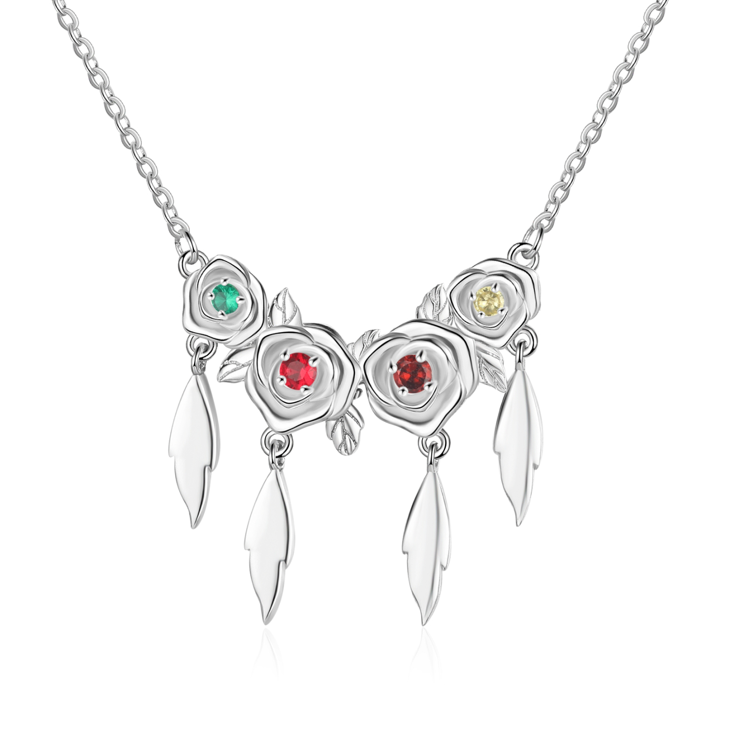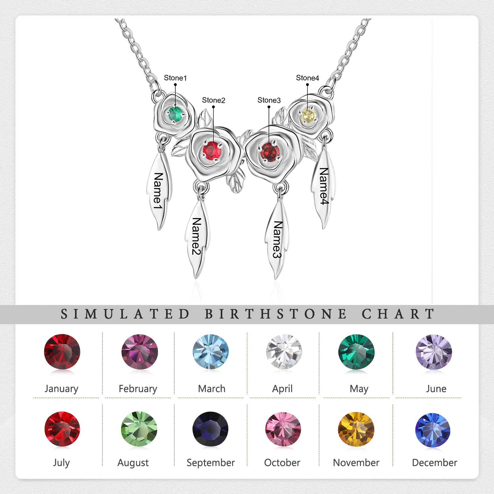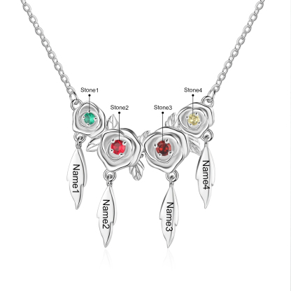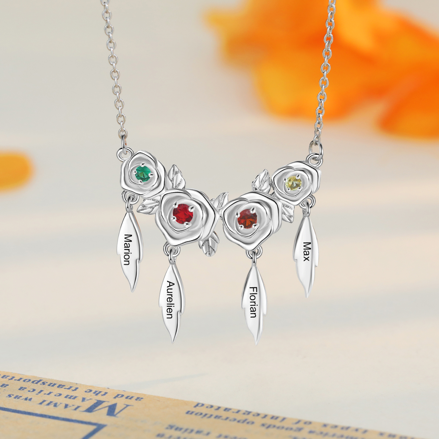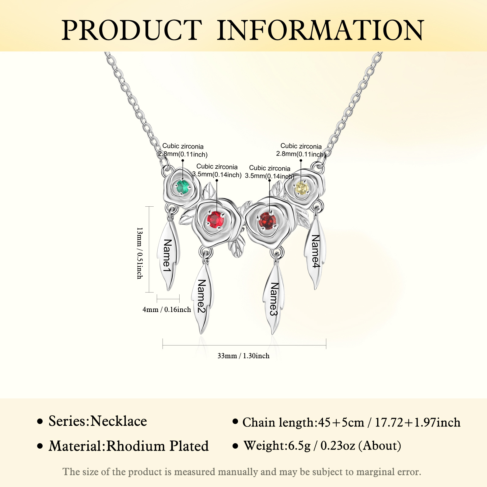 Personalized Dream Catcher Necklace Custom 4 Names Rose Flower Necklace
