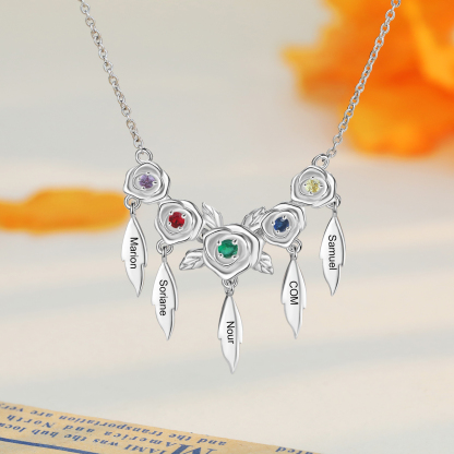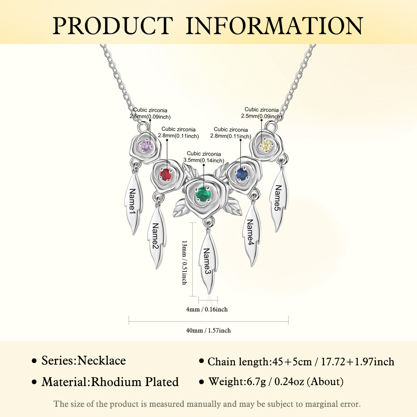 Personalized Dream Catcher Necklace Custom 5 Names Rose Flower Necklace
