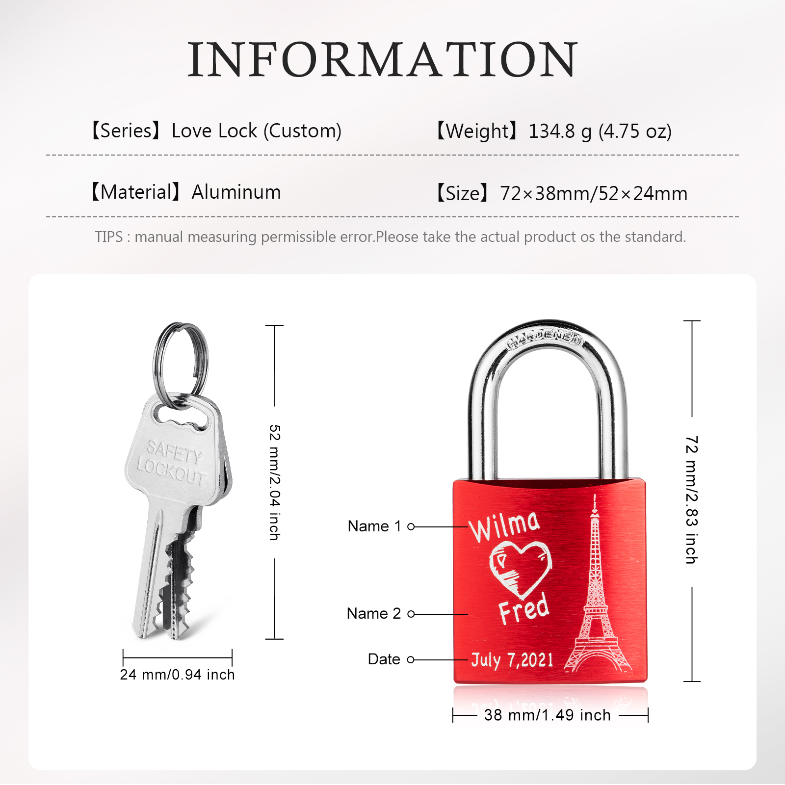 Personalized Eiffel Tower Engraved Love Lock Custom Names Padlocks Gifts For Couple