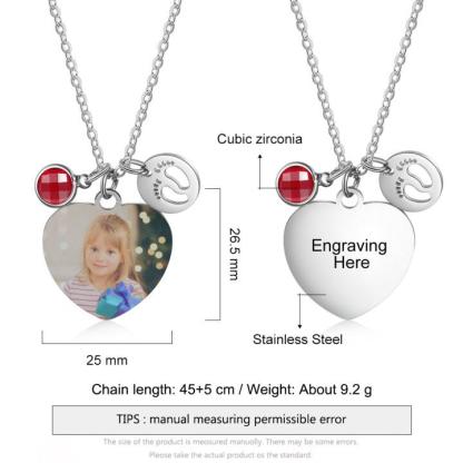 Personalized Heart Necklace With Birthstone Custom Photo Necklace Gifts For Her