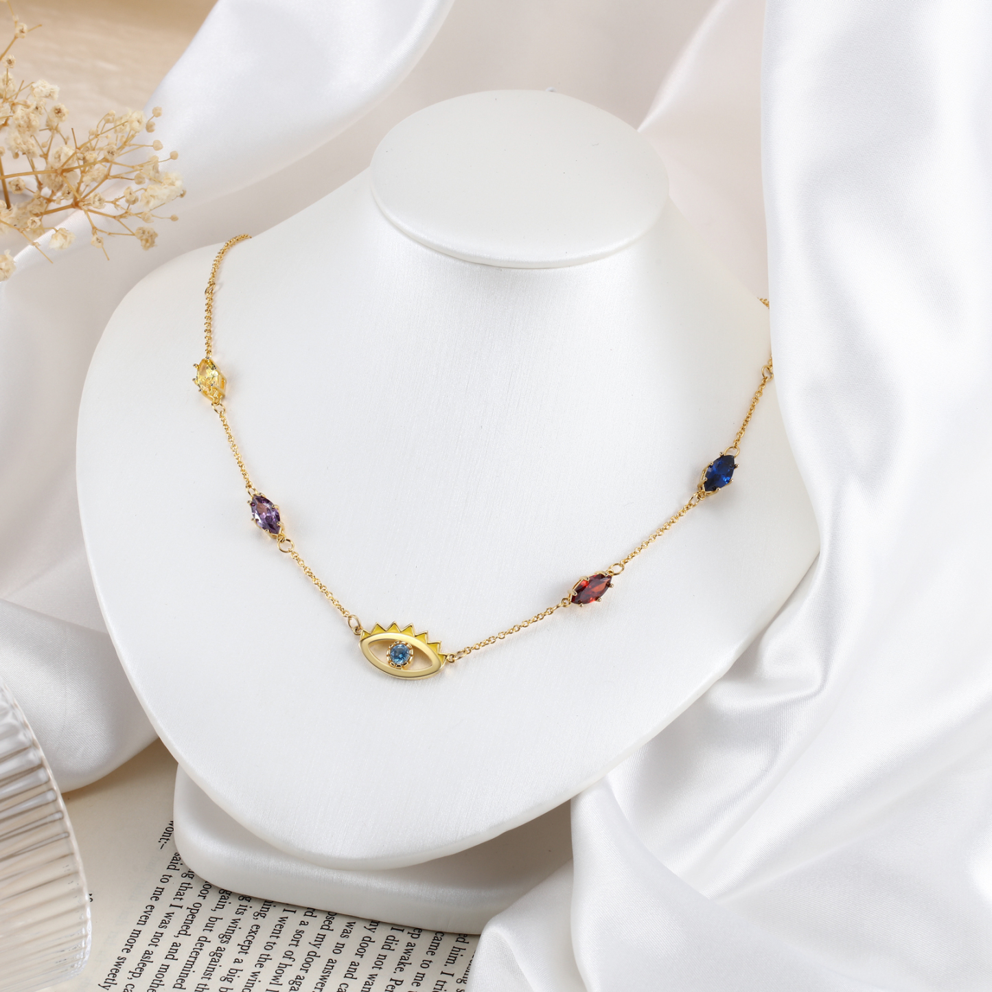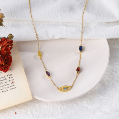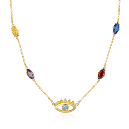 Personalized Evil Eye Necklace Custom 5 Birthstones Necklace for Her