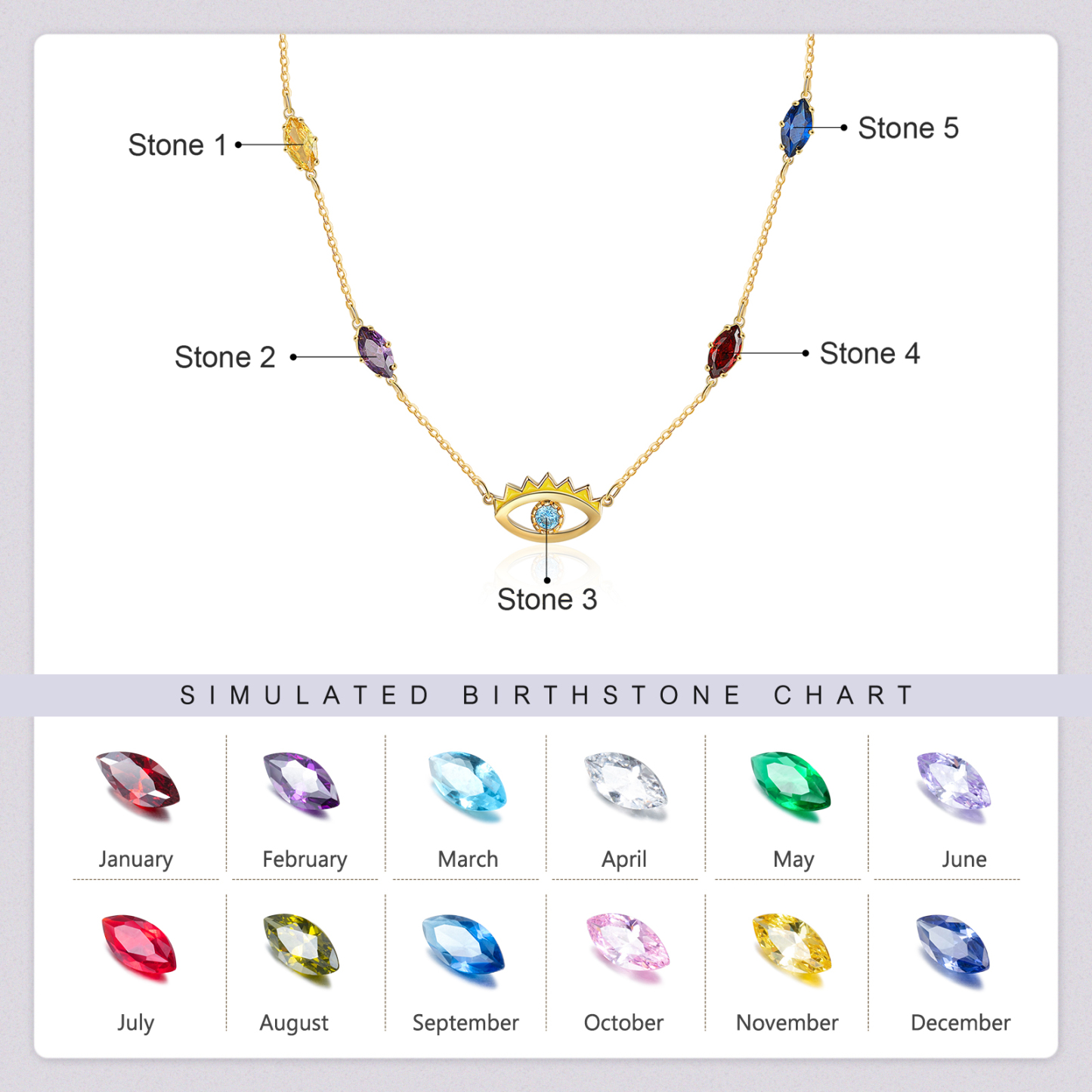 - Can choose 5 birthstones on the Necklaces