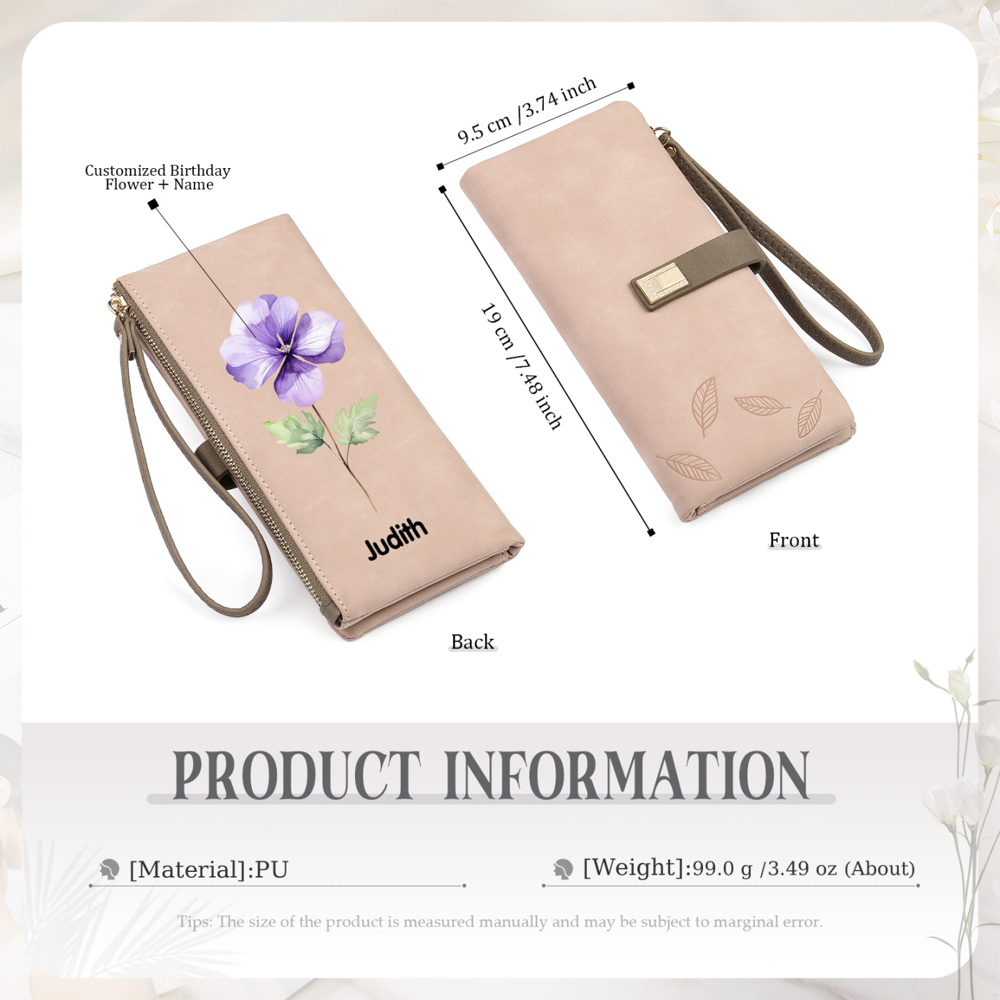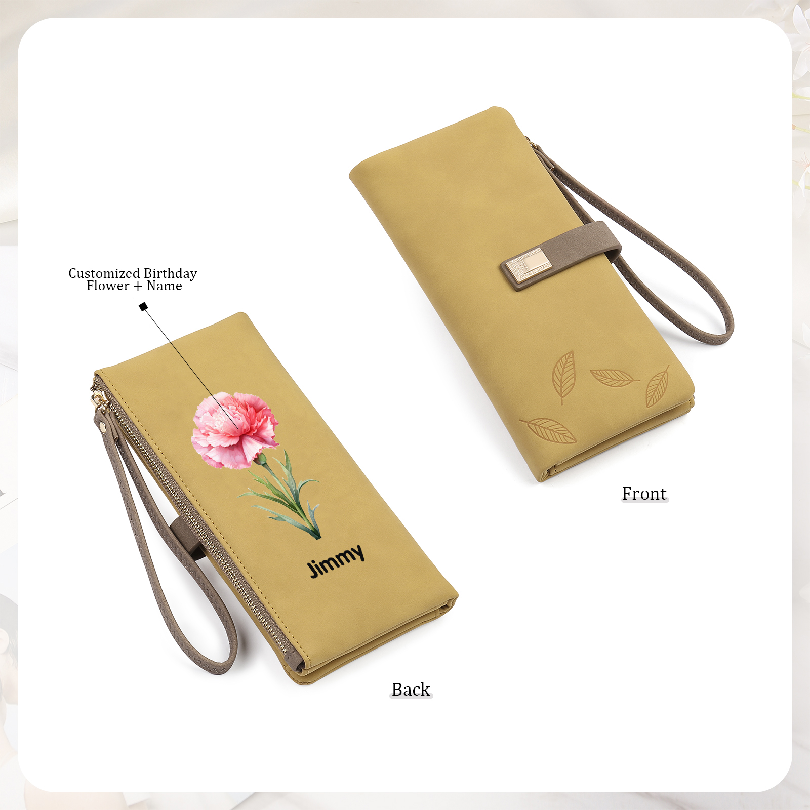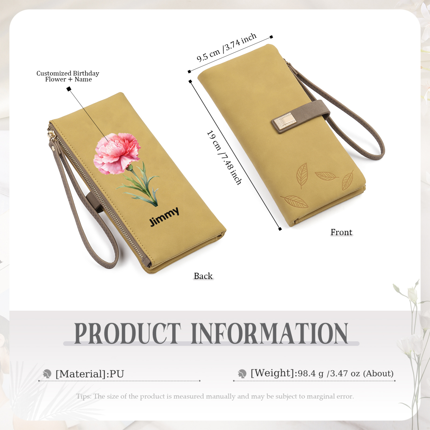 Personalized Exquisite Women'S Wallet Customized Birth Flowers And Name Zipper Women'S Wallet