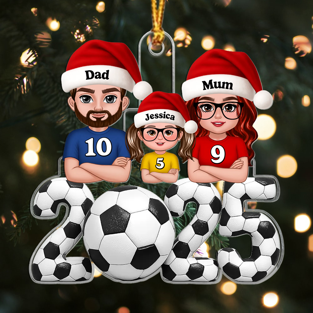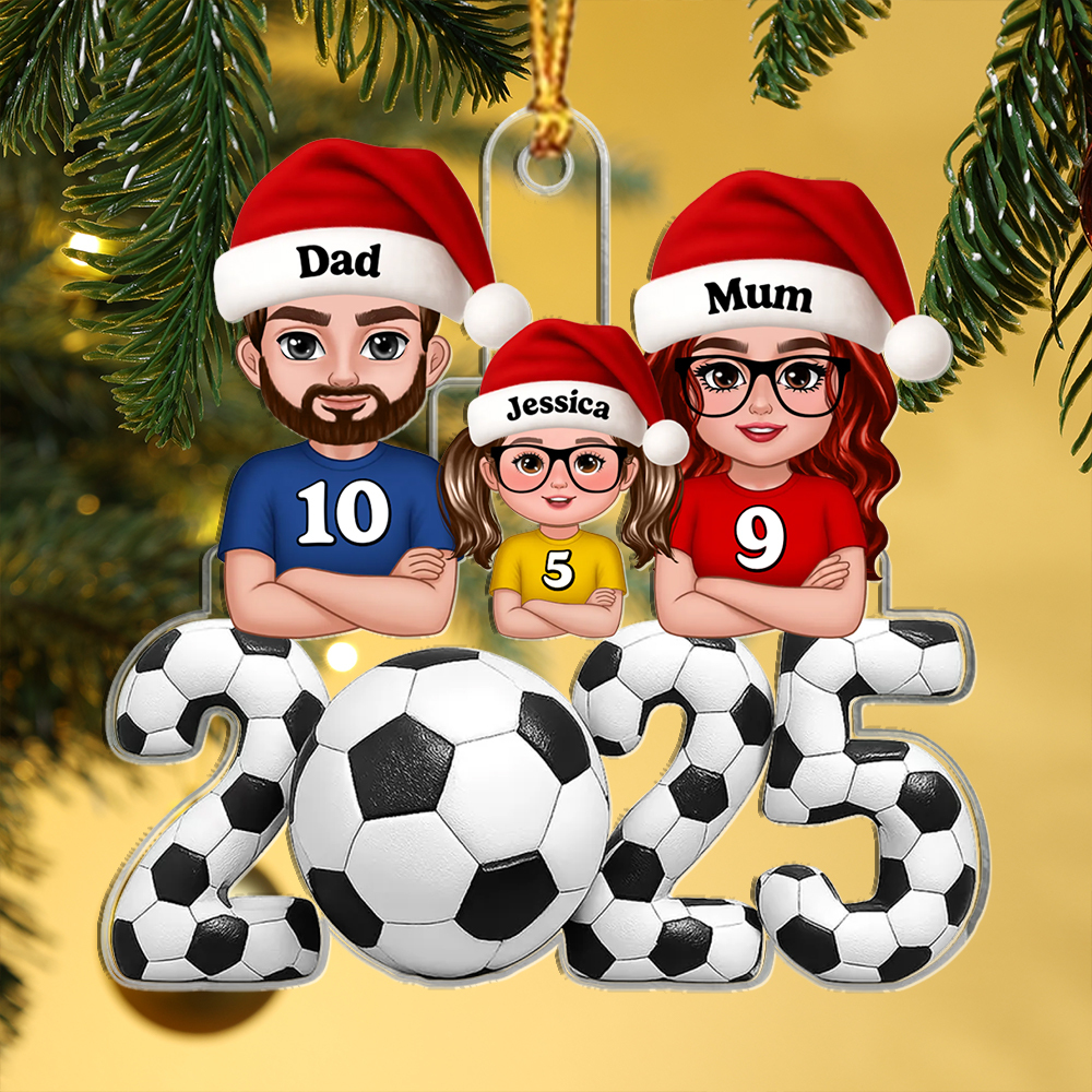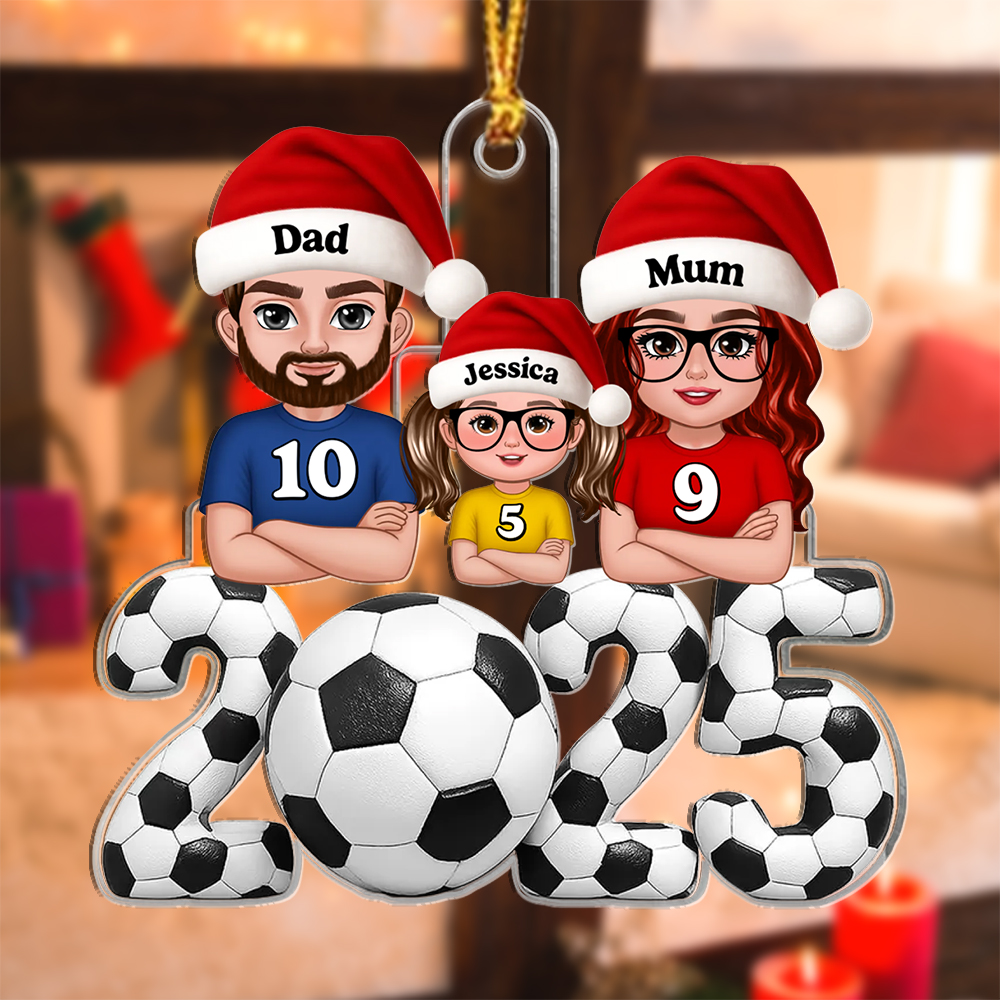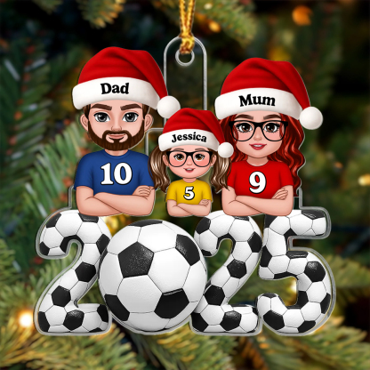 Keywords: personalized Christmas ornament, family football ornament, custom name tree decoration, gift for football fan, 2025 ornament, stocking filler, sentimental family keepsake, personalised Xmas gift