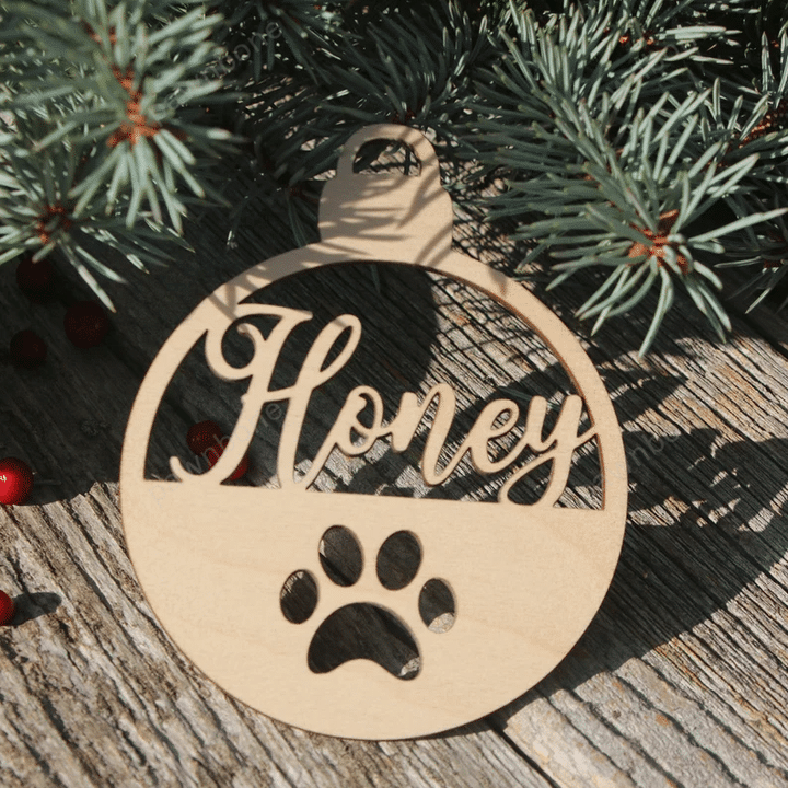 Personalized Family Gift Custom Wooden Paw Christmas Ornament