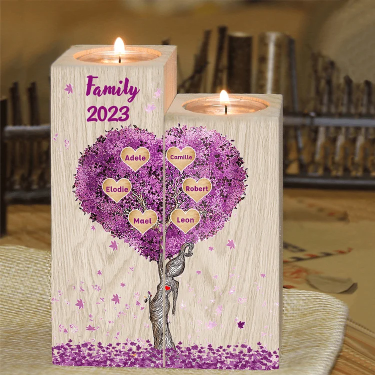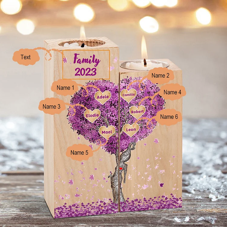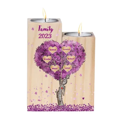 Personalized Family Tree Candle Holder Custom 6 Names Wooden Candlesticks