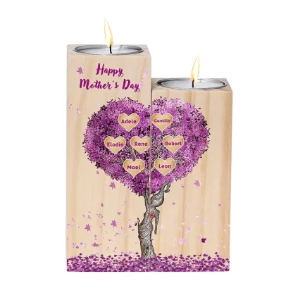 Personalized Family Tree Candle Holder Custom 7 Names Wooden Candlesticks