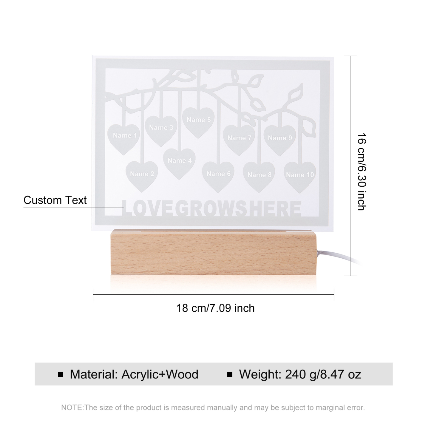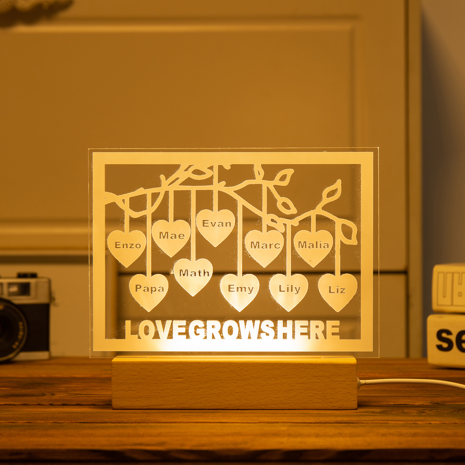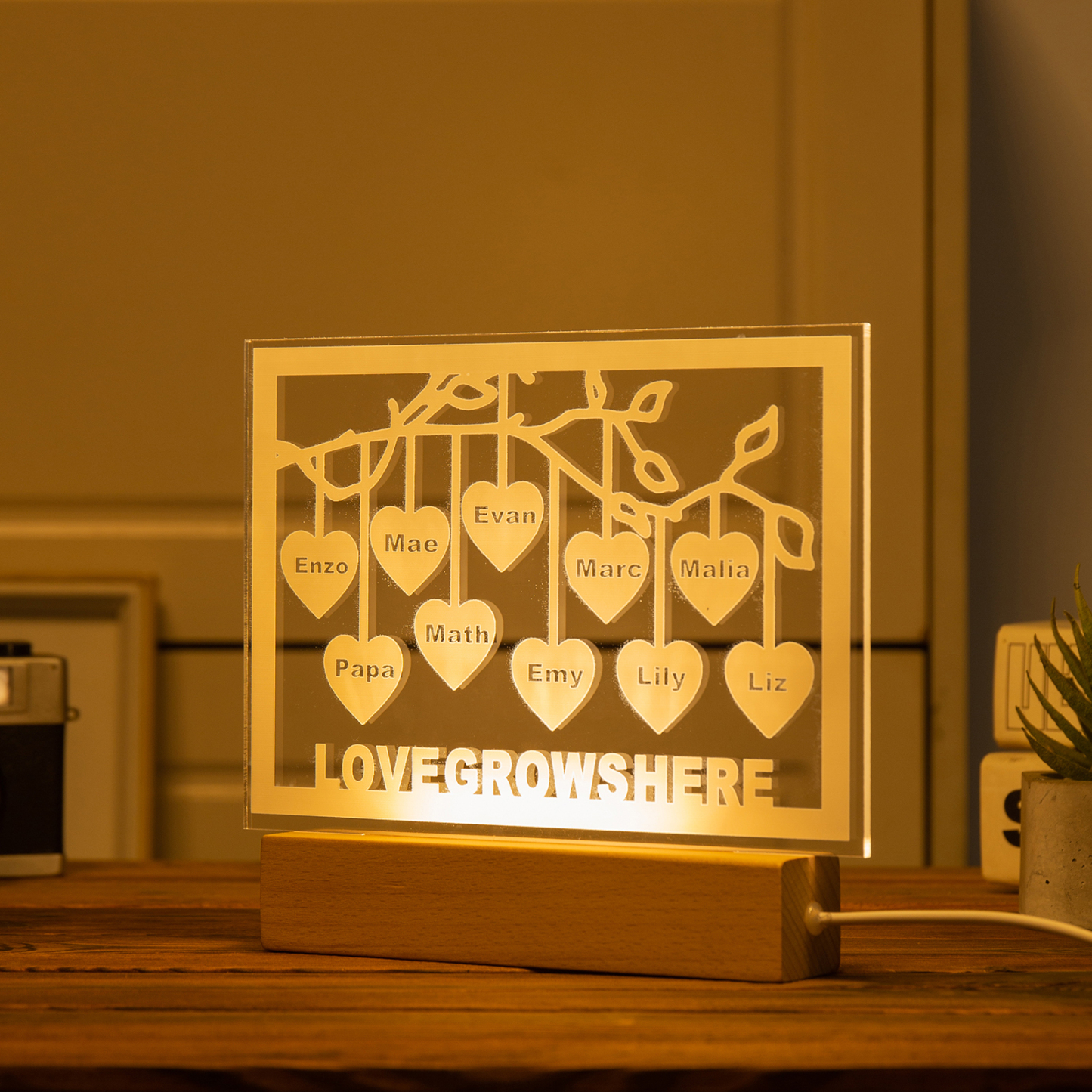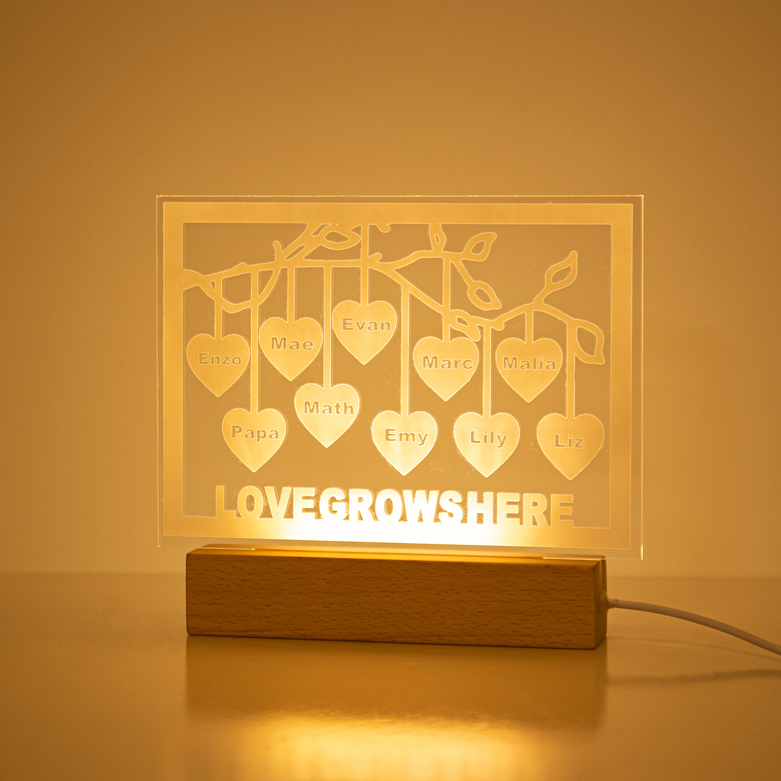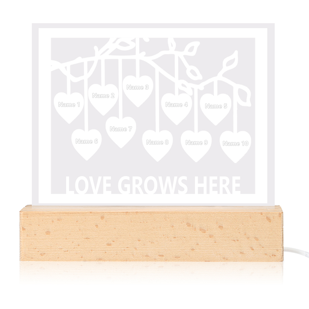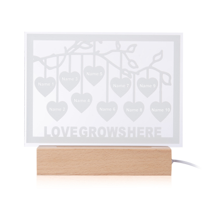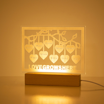 Personalized Family Tree Night Light LED Sign Engraved 10 Names Plaque USB Power Lamp