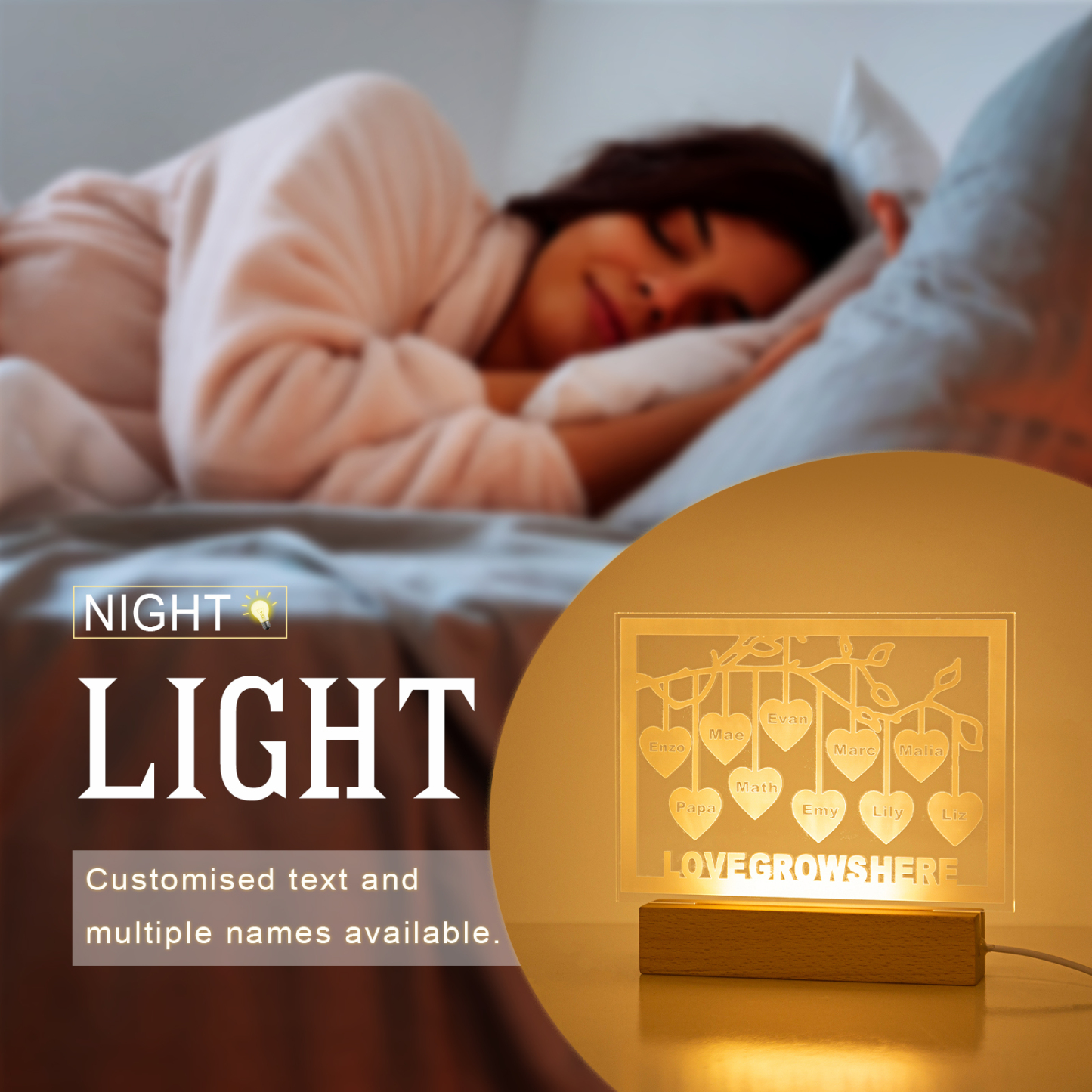 ❤️ 𝑪𝒂𝒑𝒕𝒖𝒓𝒆 𝒕𝒉𝒆 𝒃𝒆𝒔𝒕 𝒎𝒆𝒎𝒐𝒓𝒊𝒆𝒔 𝒐𝒇 𝒚𝒐𝒖 𝒂𝒏𝒅 𝒚𝒐𝒖𝒓 𝒇𝒂𝒎𝒊𝒍𝒚 with this family tree night light. All you need to do is give us custom info. As a result, we will turn your customization into a meaningful gift that is perfect for many occasions. Give it to your loved one to show how much you love her.