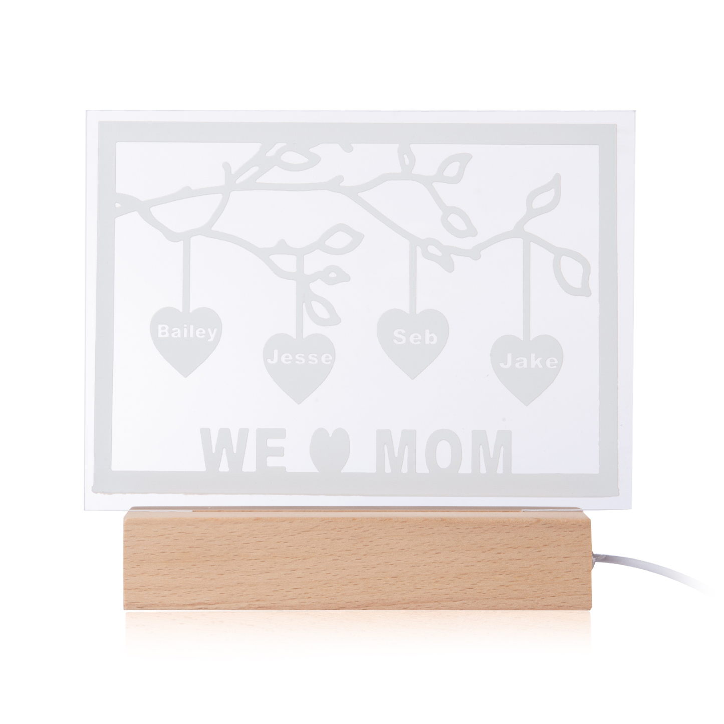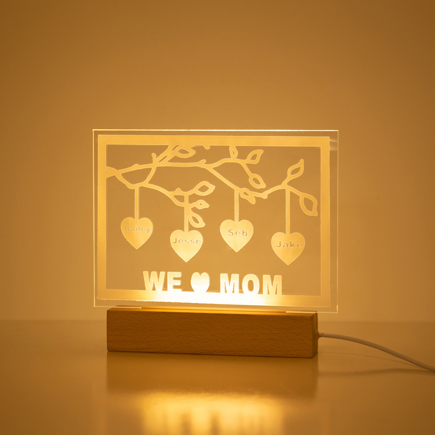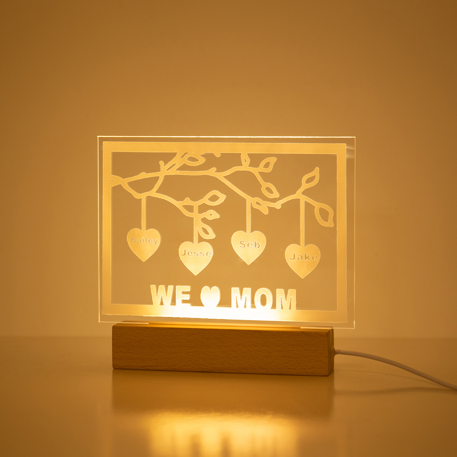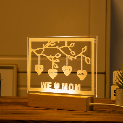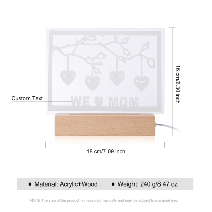 Personalized Family Tree Night Light LED Sign Engraved 4 Names Plaque USB Power Lamp