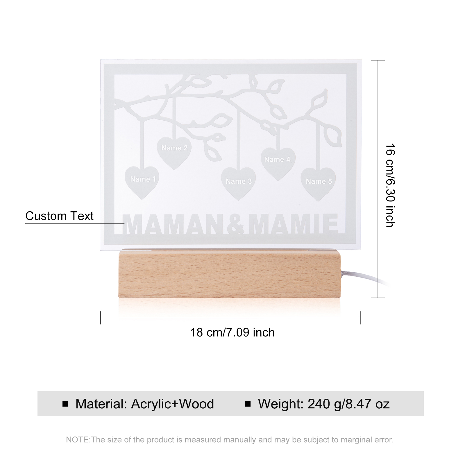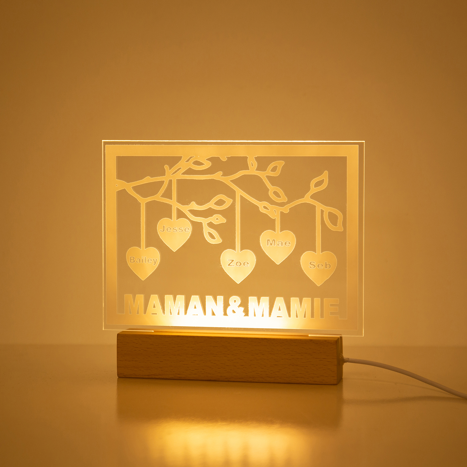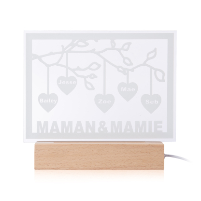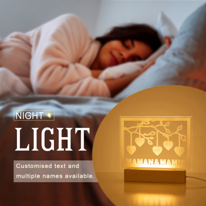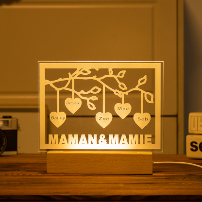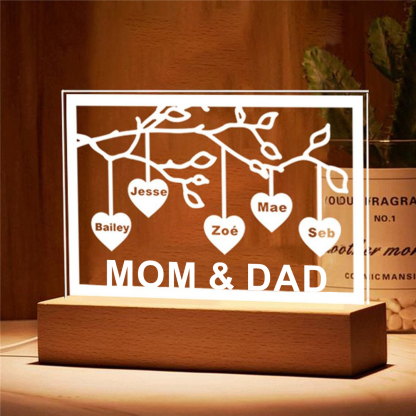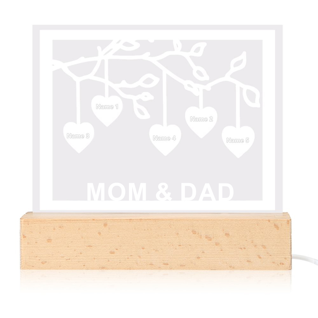 Personalized Family Tree Night Light LED Sign Engraved 5 Names Plaque USB Power Lamp