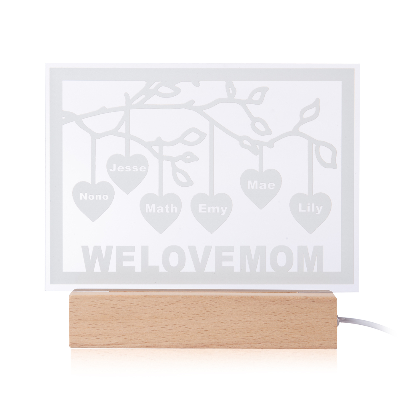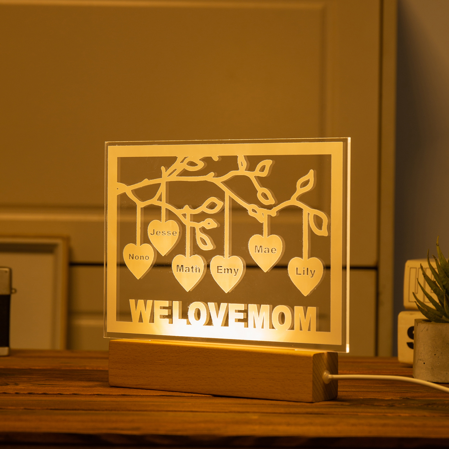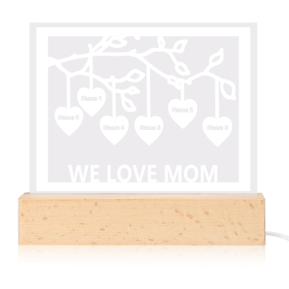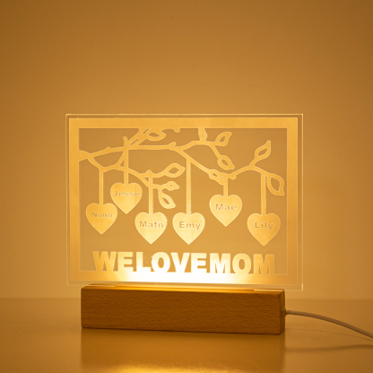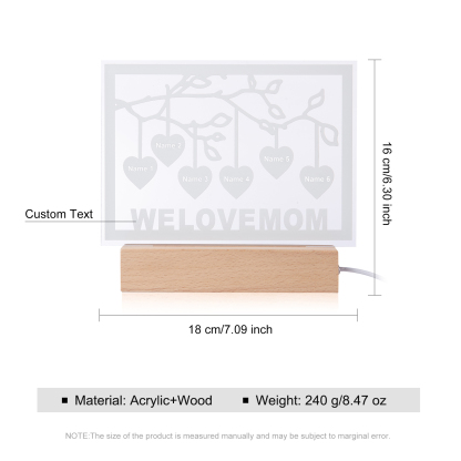 Personalized Family Tree Night Light LED Sign Engraved 6 Names Plaque USB Power Lamp