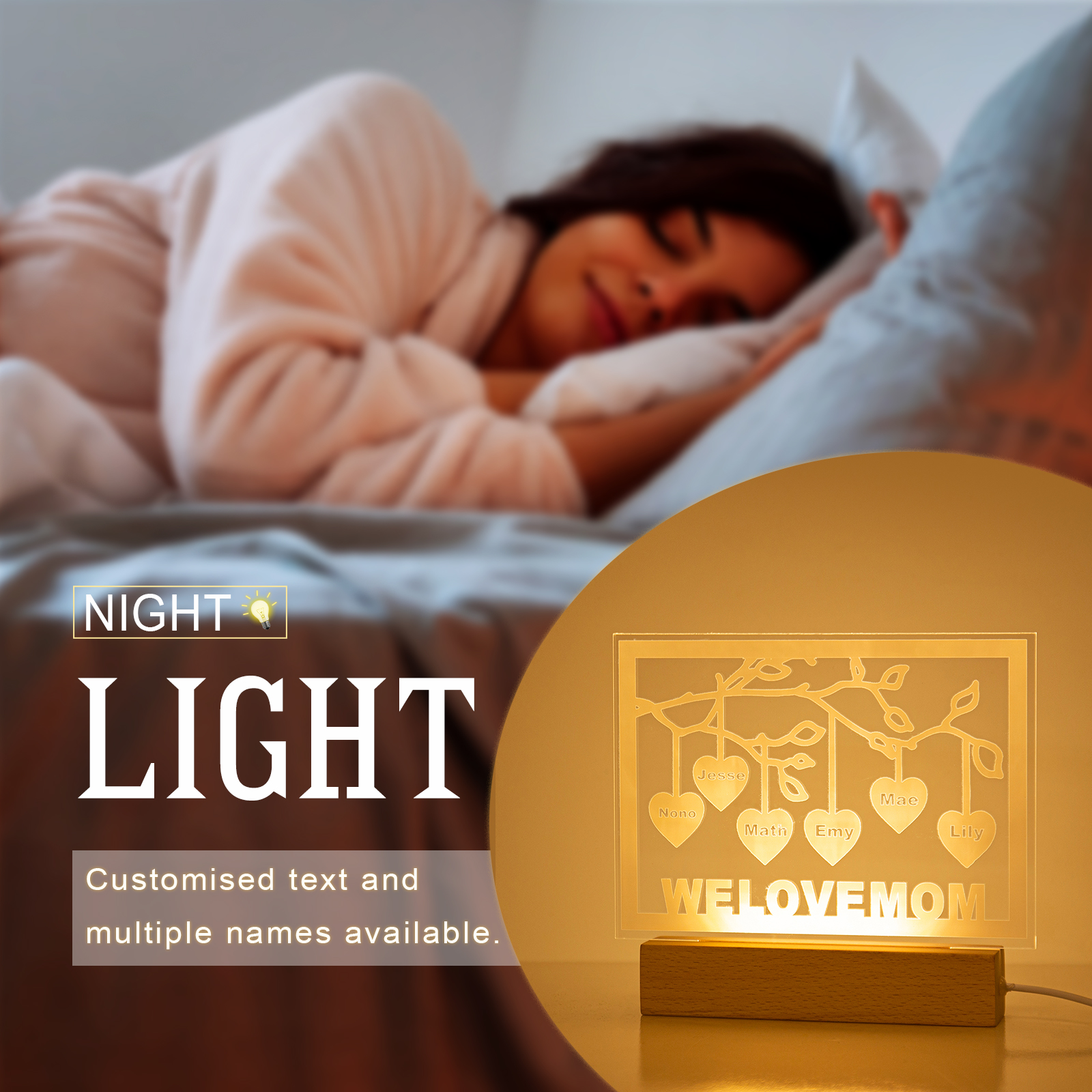 ❤️ 𝑪𝒂𝒑𝒕𝒖𝒓𝒆 𝒕𝒉𝒆 𝒃𝒆𝒔𝒕 𝒎𝒆𝒎𝒐𝒓𝒊𝒆𝒔 𝒐𝒇 𝒚𝒐𝒖 𝒂𝒏𝒅 𝒚𝒐𝒖𝒓 𝒇𝒂𝒎𝒊𝒍𝒚 with this family tree night light. All you need to do is give us custom info. As a result, we will turn your customization into a meaningful gift that is perfect for many occasions. Give it to your loved one to show how much you love her.