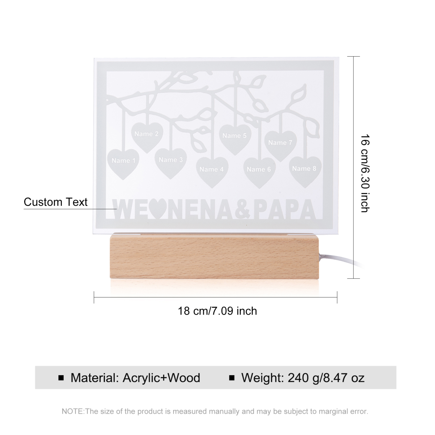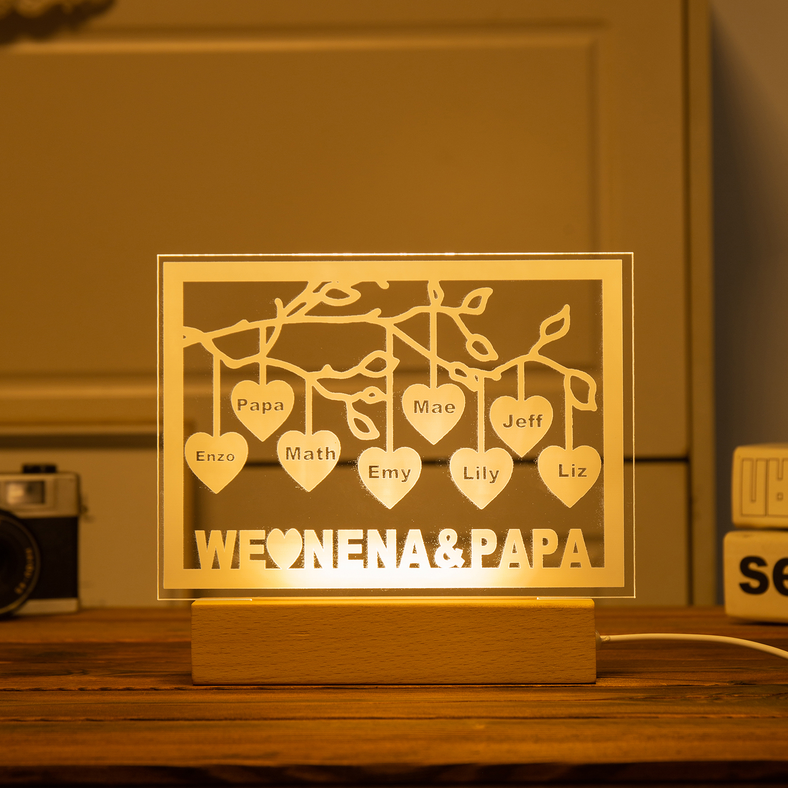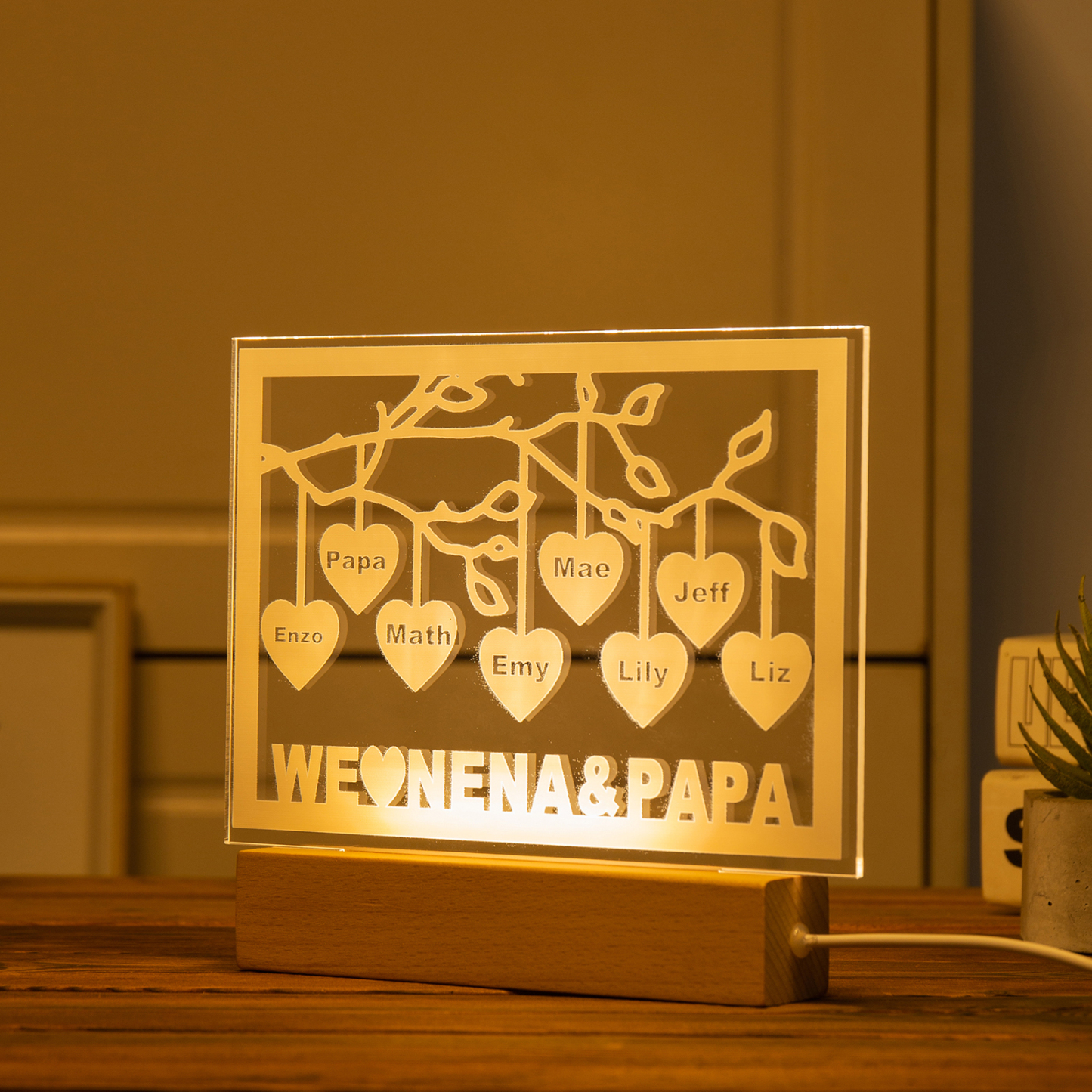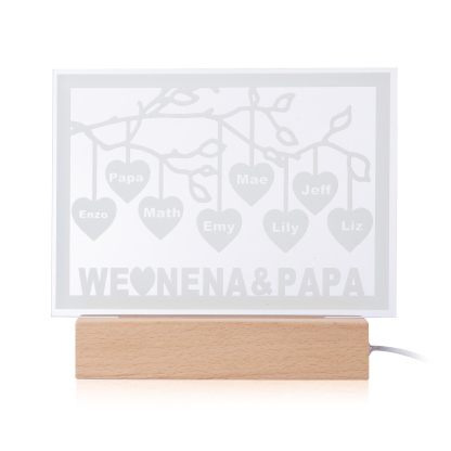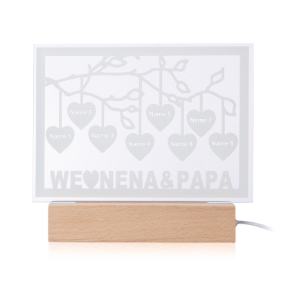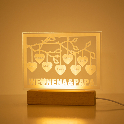 Personalized Family Tree Night Light LED Sign Engraved 8 Names Plaque USB Power Lamp