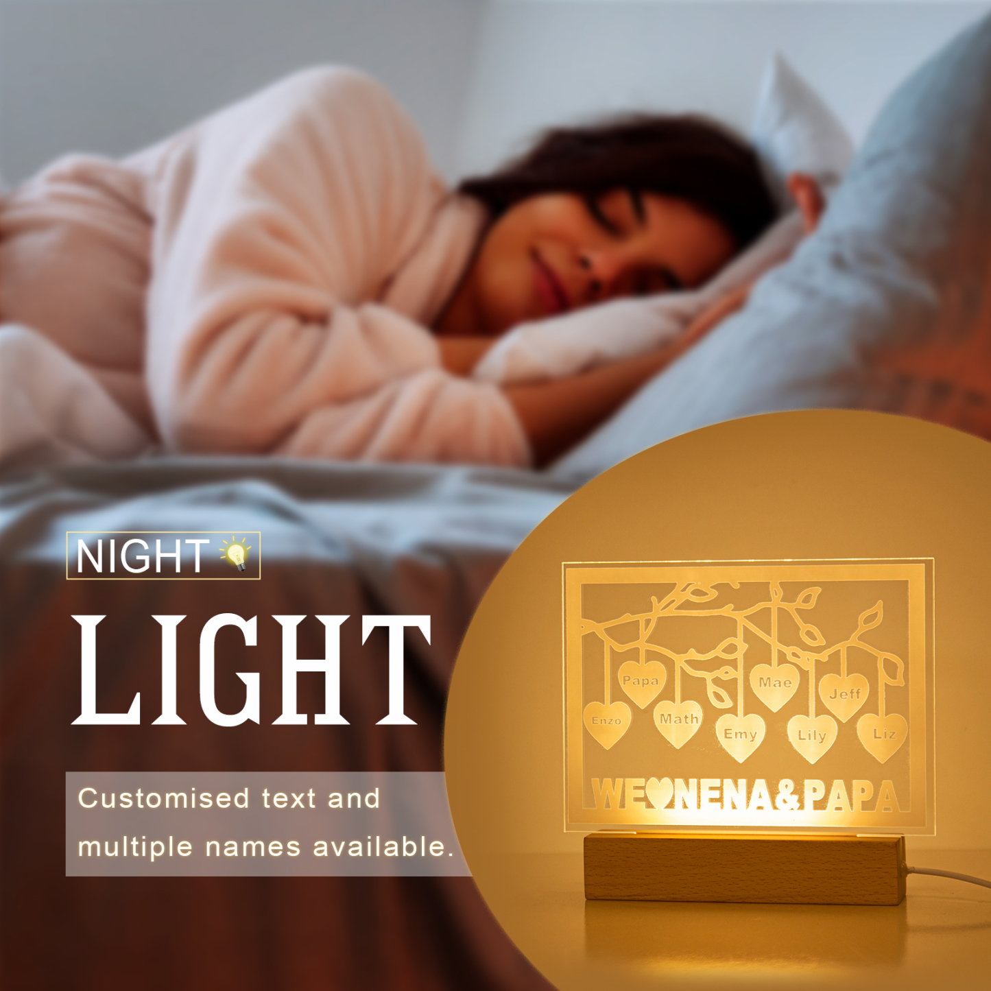 ❤️ 𝑪𝒂𝒑𝒕𝒖𝒓𝒆 𝒕𝒉𝒆 𝒃𝒆𝒔𝒕 𝒎𝒆𝒎𝒐𝒓𝒊𝒆𝒔 𝒐𝒇 𝒚𝒐𝒖 𝒂𝒏𝒅 𝒚𝒐𝒖𝒓 𝒇𝒂𝒎𝒊𝒍𝒚 with this family tree night light. All you need to do is give us custom info. As a result, we will turn your customization into a meaningful gift that is perfect for many occasions. Give it to your loved one to show how much you love her.