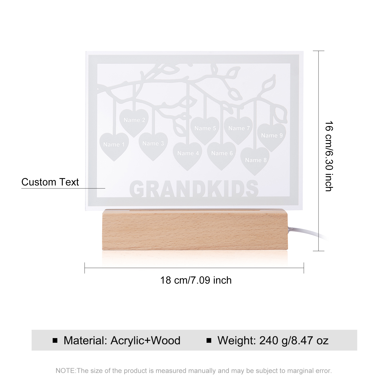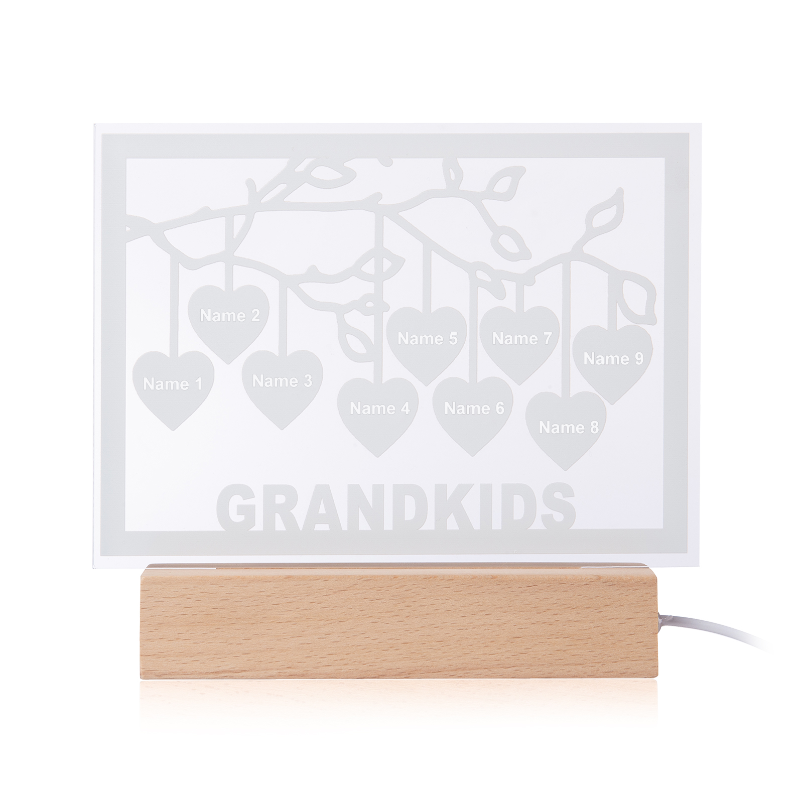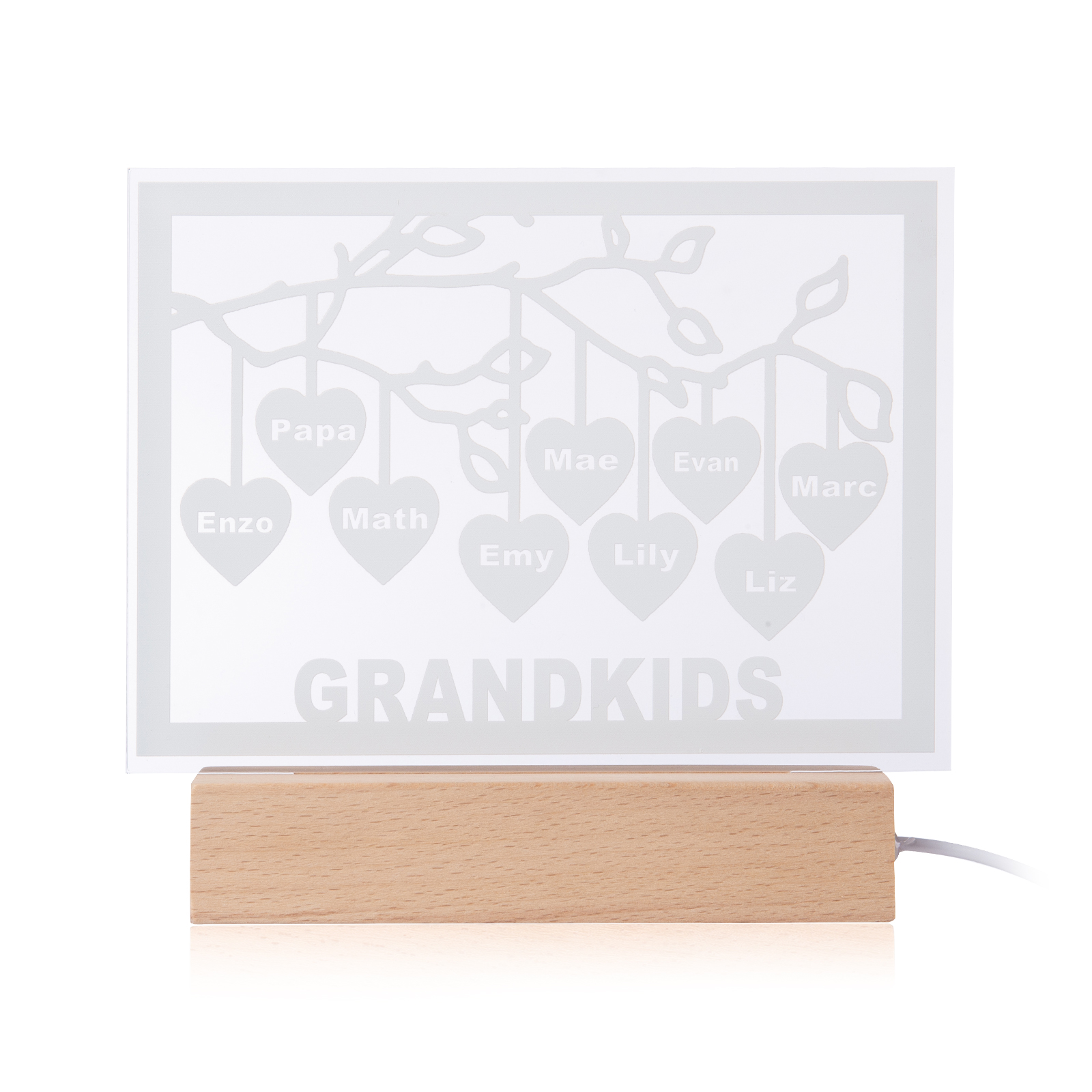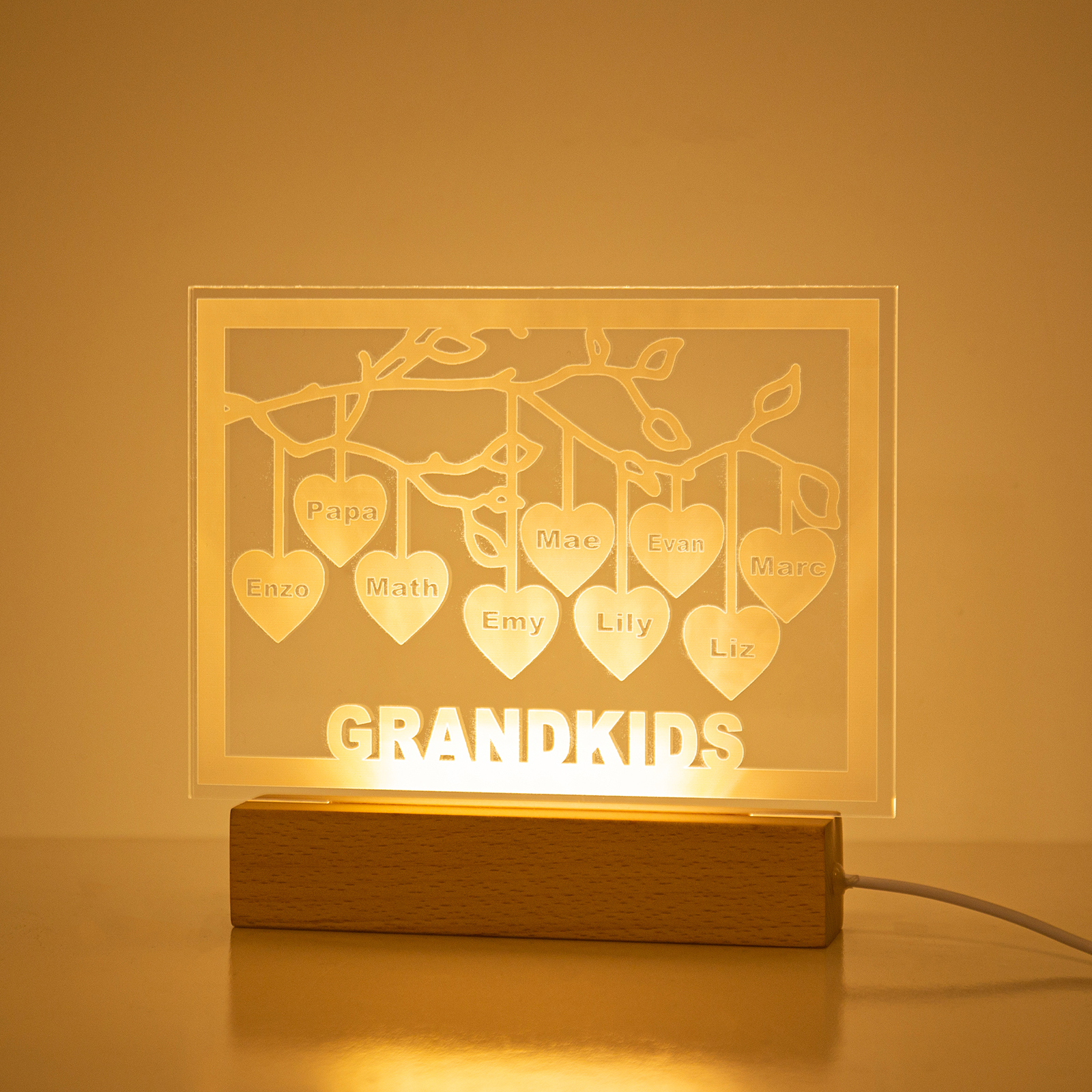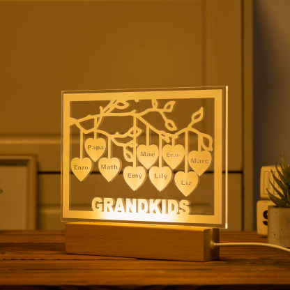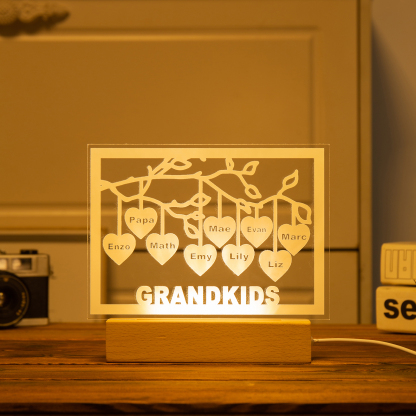 Personalized Family Tree Night Light LED Sign Engraved 9 Names Plaque USB Power Lamp