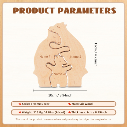Personalized Family Wooden Puzzle Ornament-Custom 3 Names Bear Hug Ornament Romantic Gifts For Family-Special Home Decoration