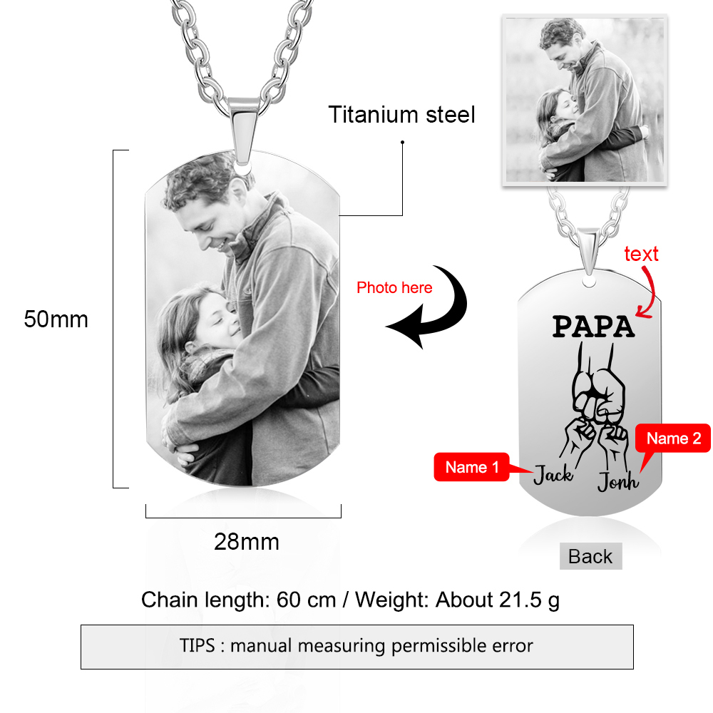 Personalized Fist Bump Necklace with 2 Kids' Names Custom Photo Necklace For Father