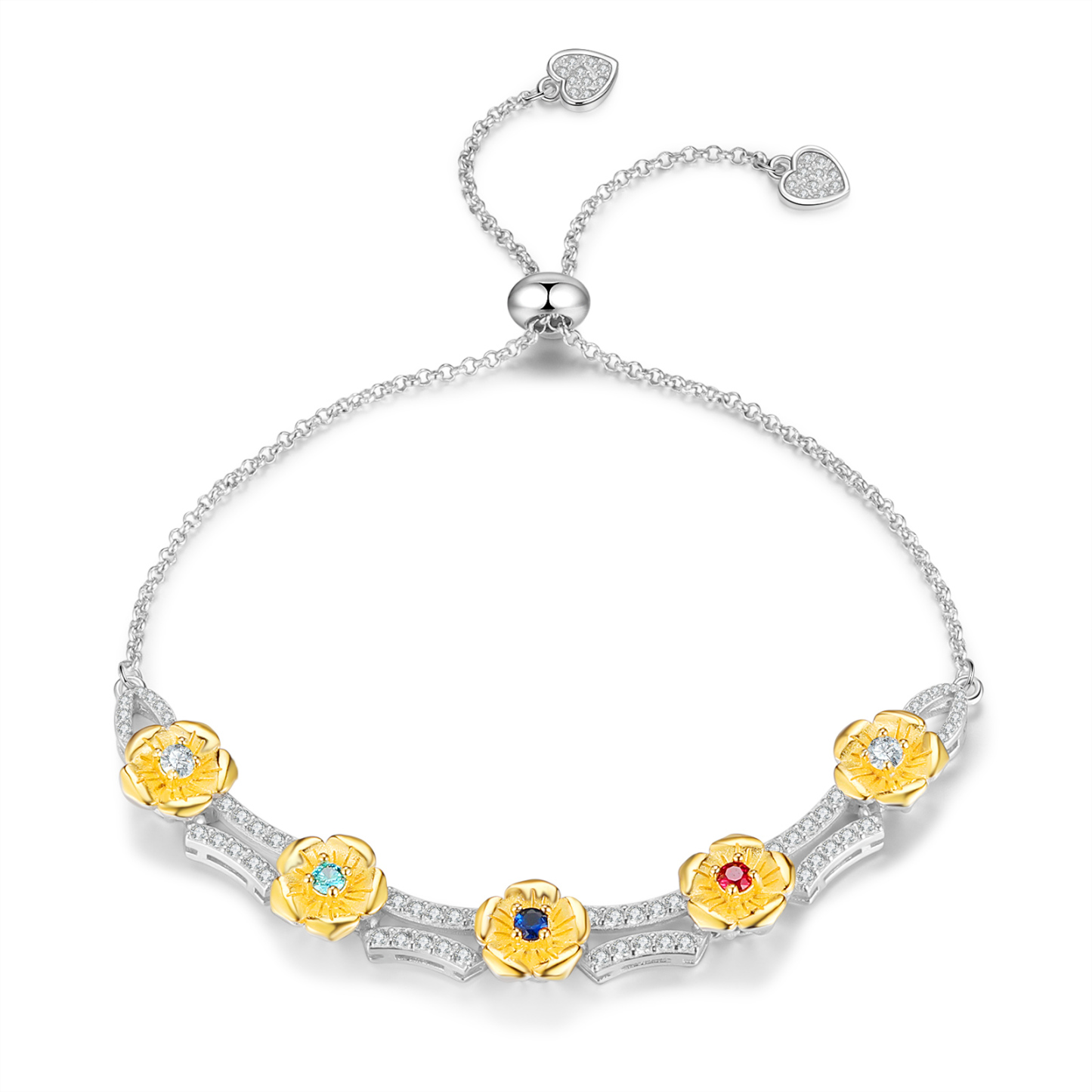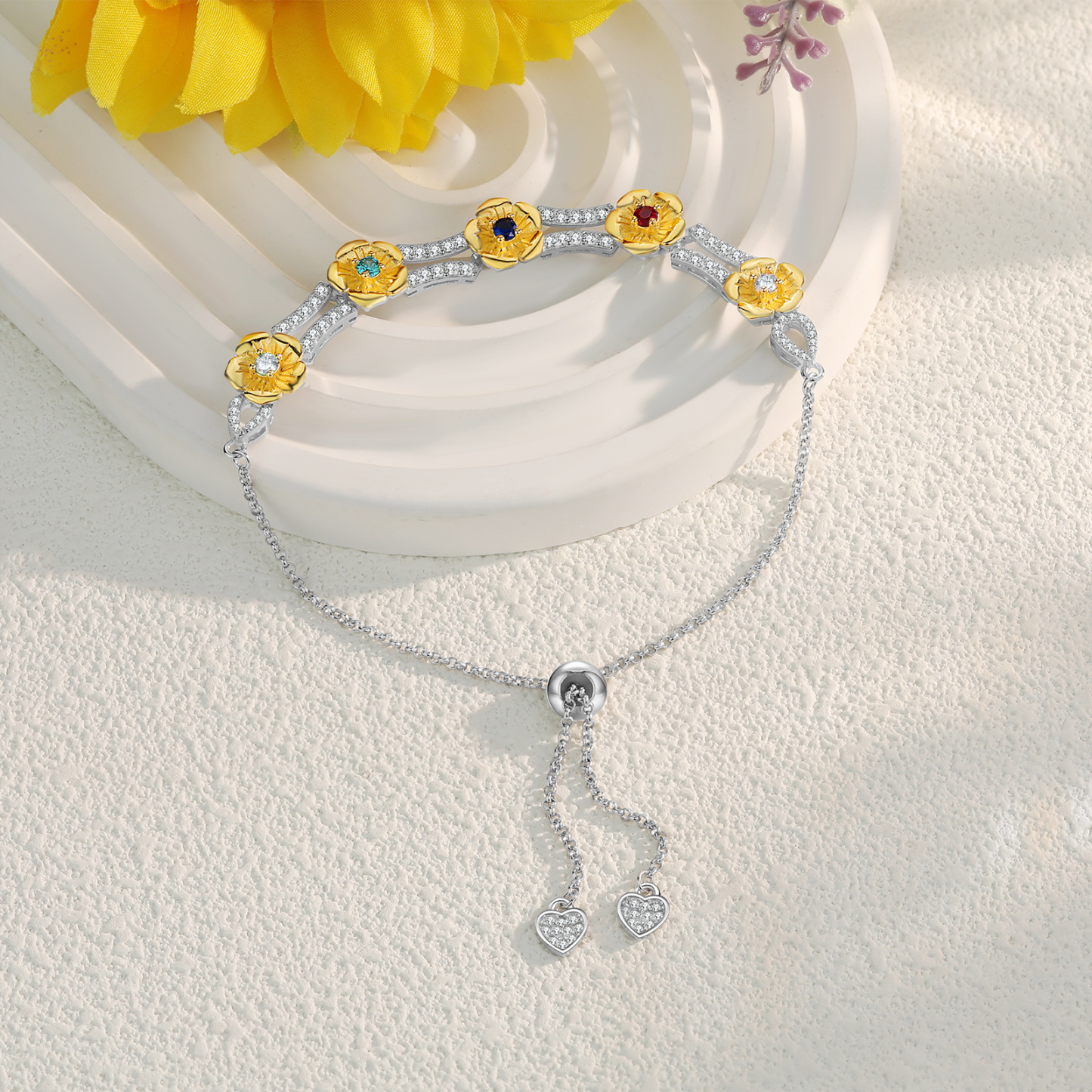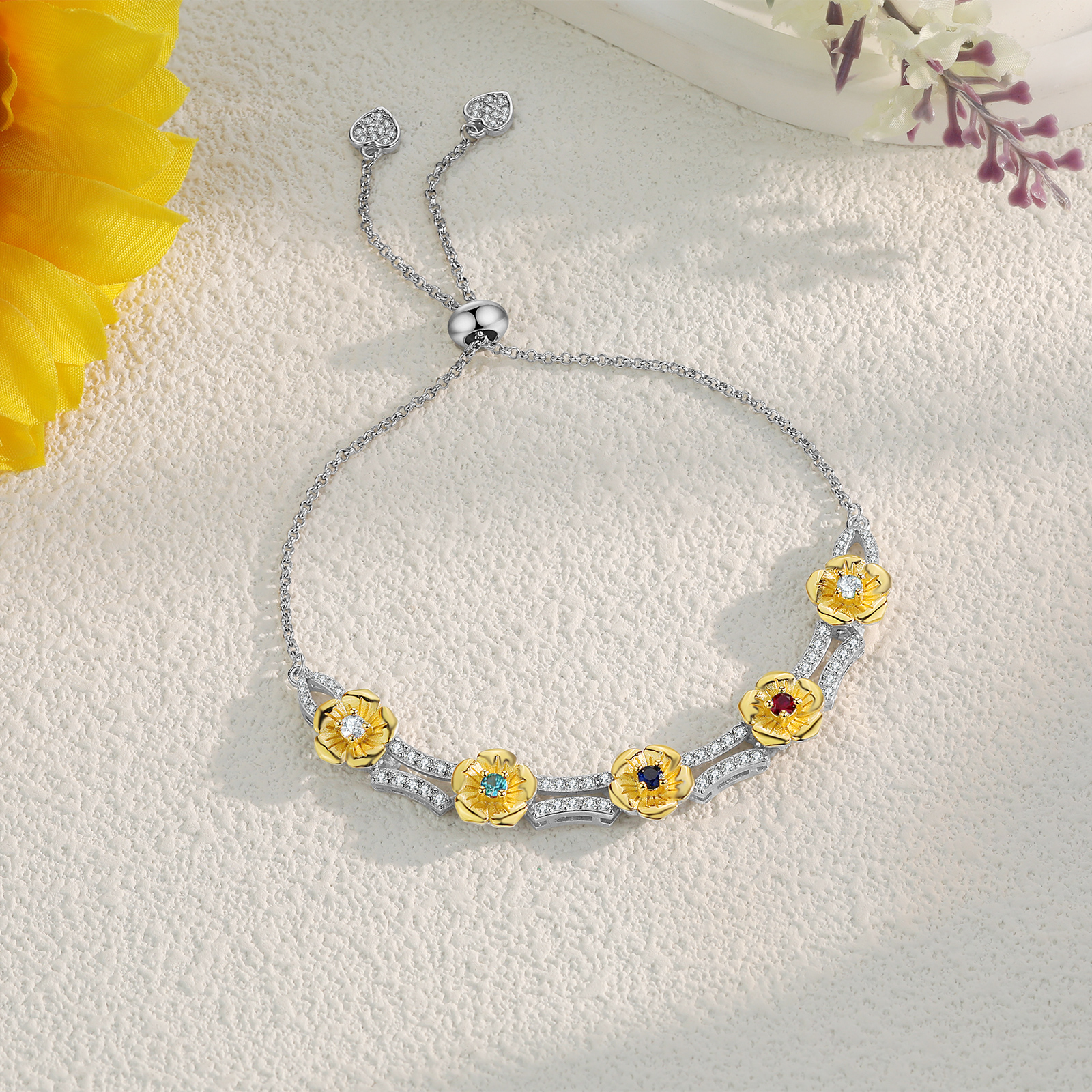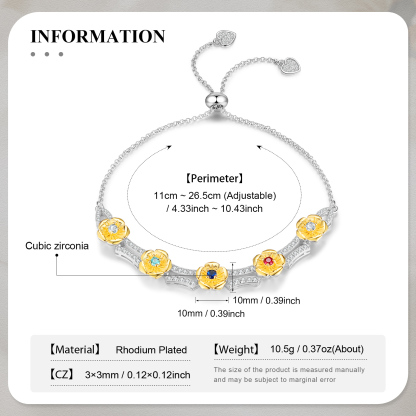 This exquisite bracelet allows you to customize it with 1 to 5 birthstones, making it a unique and meaningful piece just for you or your loved ones. The adjustable length ensures a perfect fit, catering to various wrist sizes. Crafted with meticulous attention to detail, this bracelet showcases the beauty of fine craftsmanship and personalization.