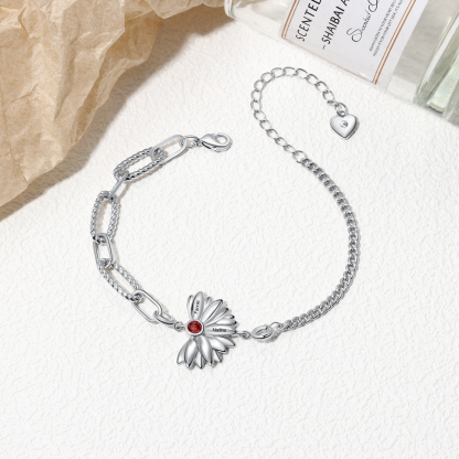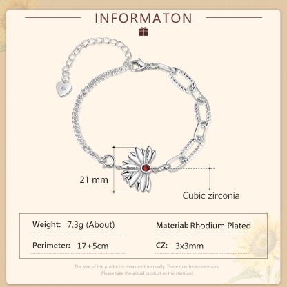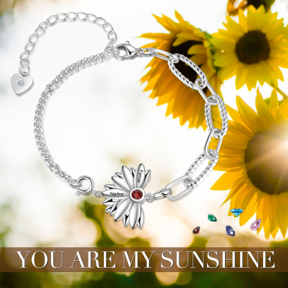Personalized Sunflower Bracelet Customized 1 Birthstones Engraving 2 Names Bracelet Gift for Her