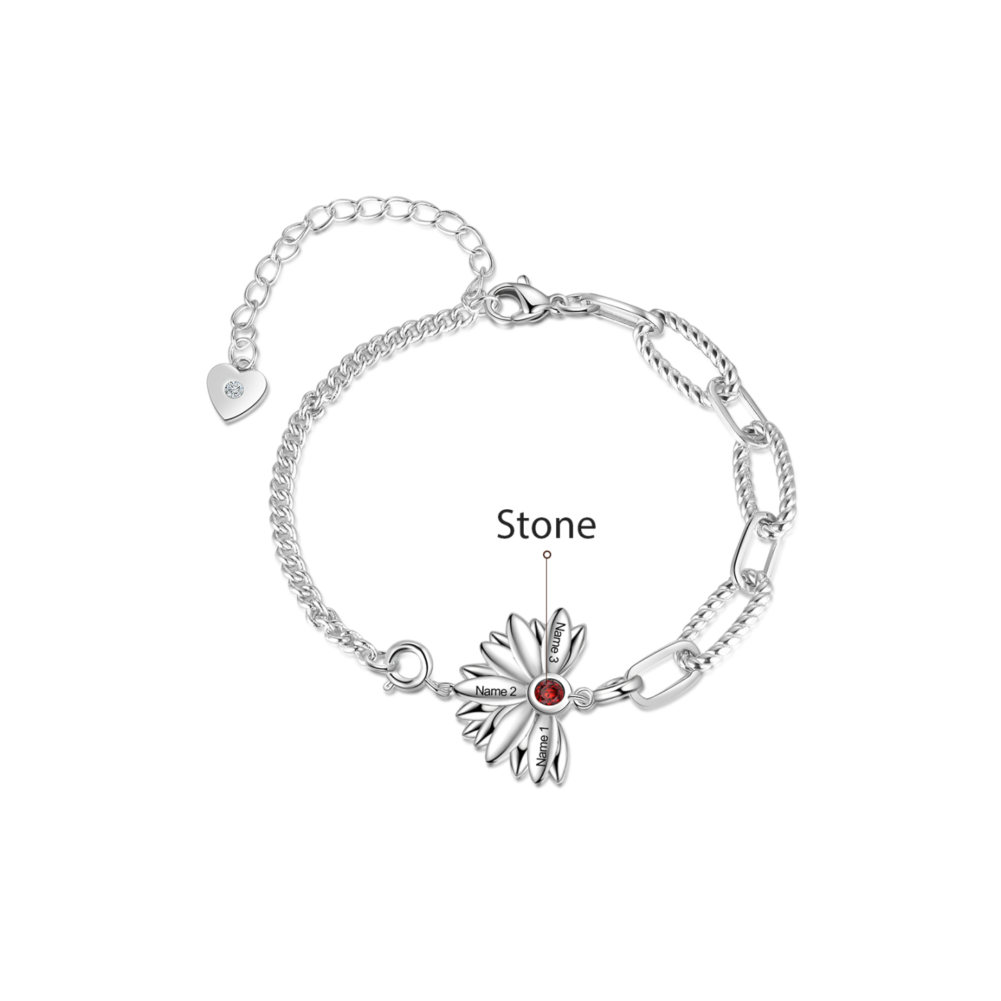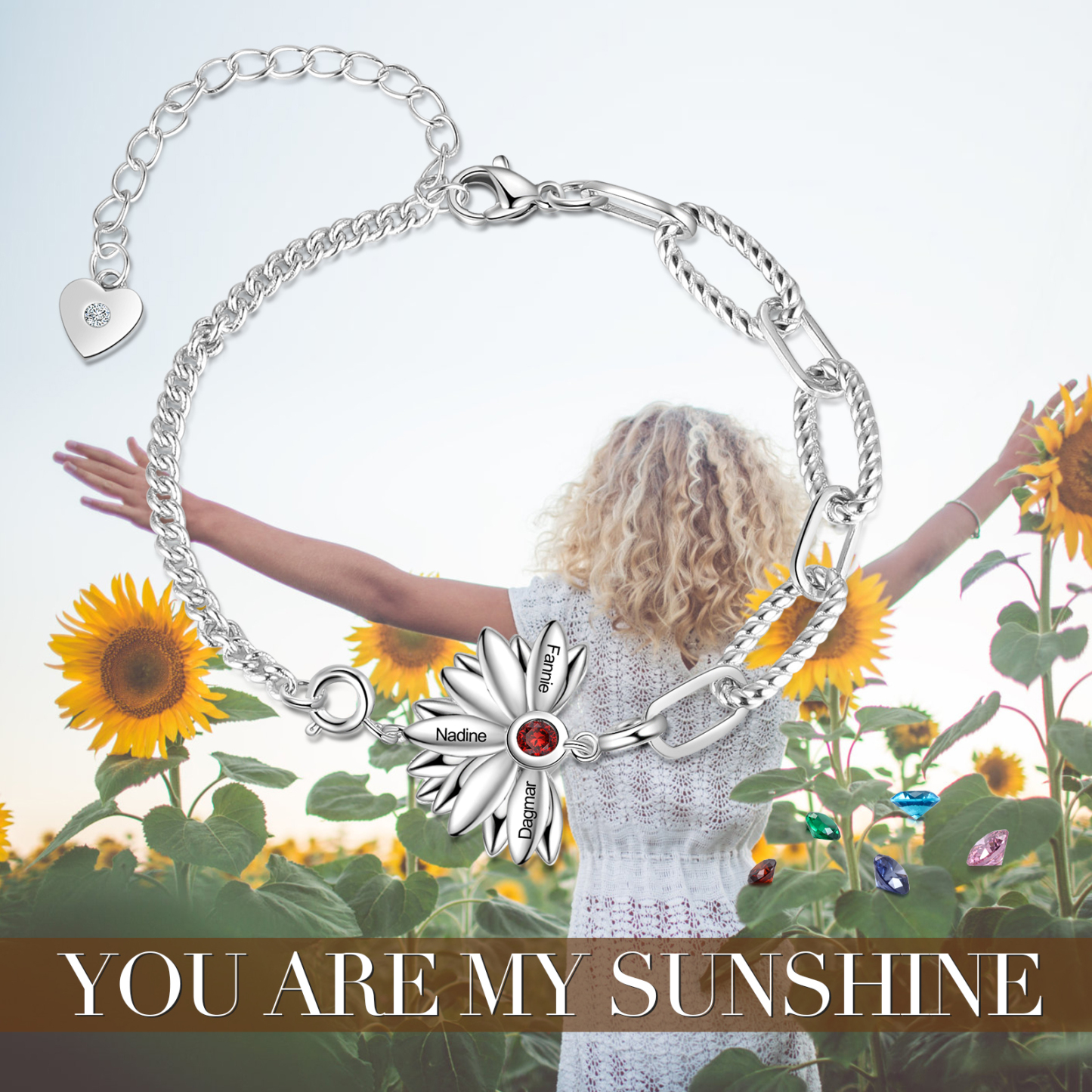 Personalized Sunflower Bracelet Customized 1 Birthstones Engraving 3 Names Bracelet Gift for Her