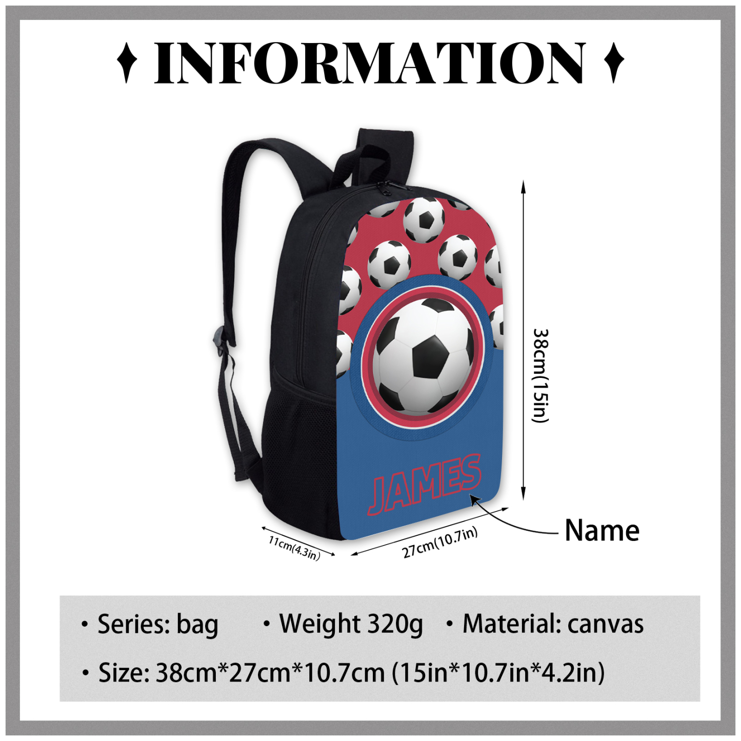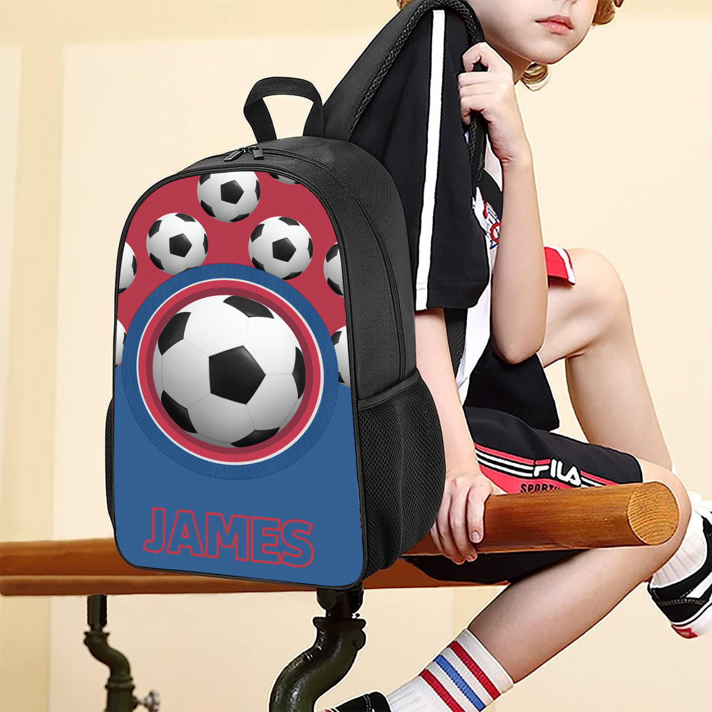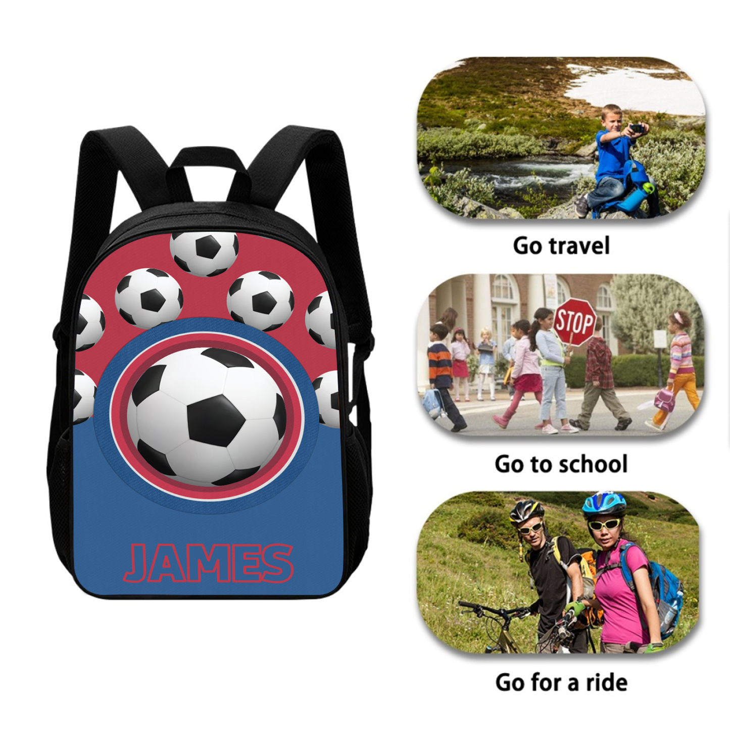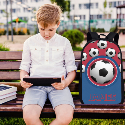 Personalized Football Name School Bag Boys Black Backpack, Customized Schoolbag Travel Bag For Kids