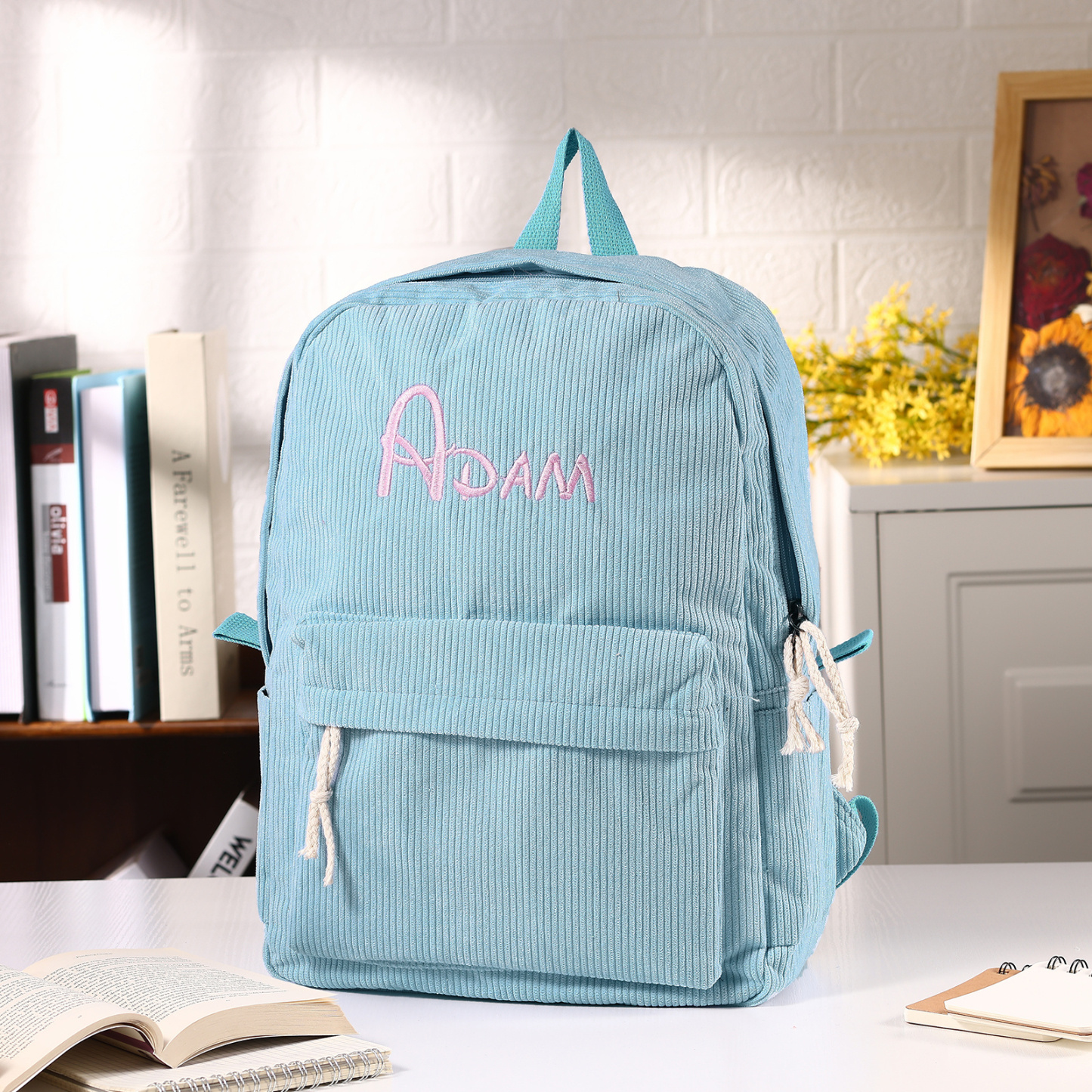 Start the new school year with style and confidence with our custom name school backpack. Designed for both comfort and practicality, this backpack lets you personalize it with any name in your favorite color—making each day uniquely yours. Its soft corduroy fabric and large, organized compartments keep your essentials secure while showcasing your individuality. More than just a bag, it’s a thoughtful gift and a daily reminder of encouragement and love.