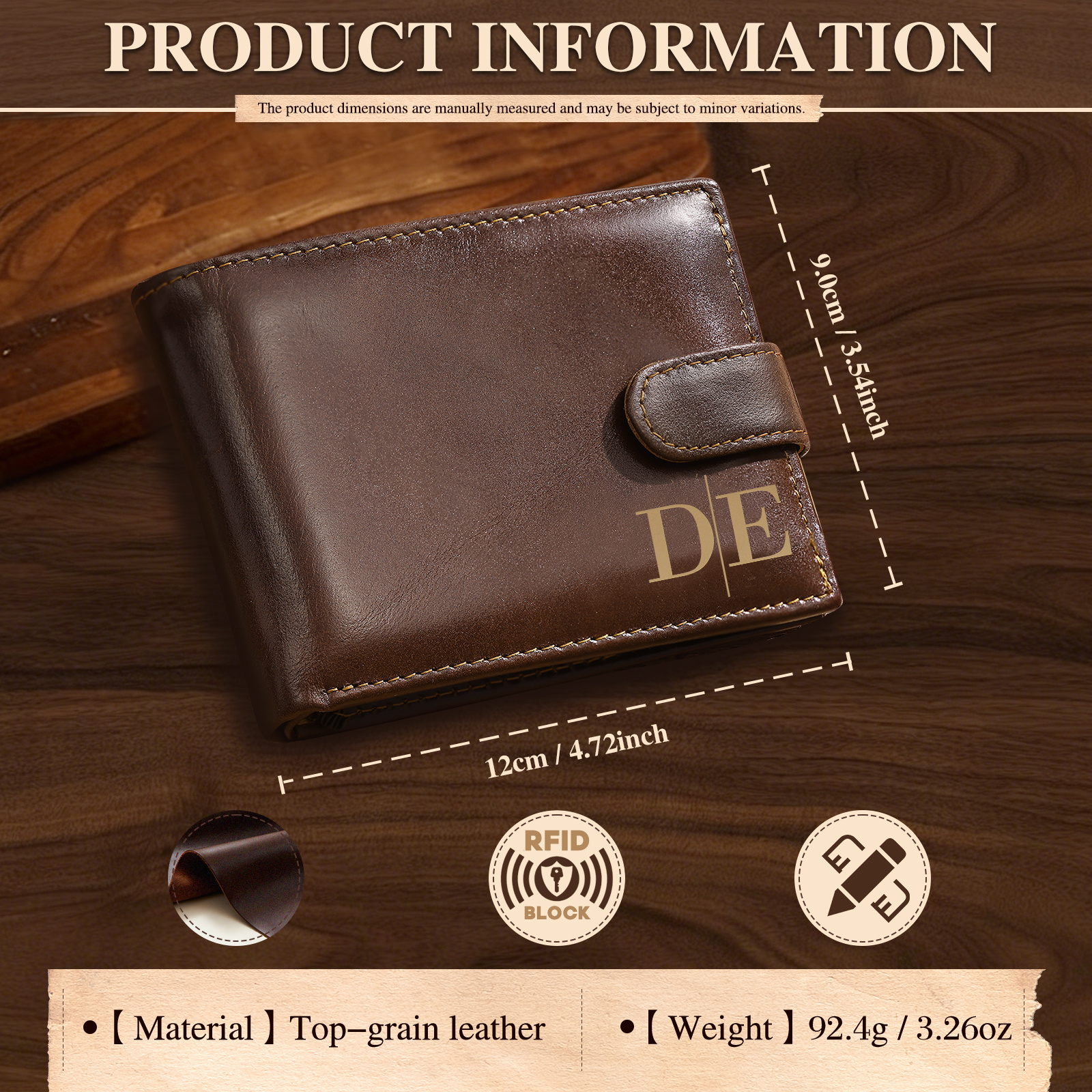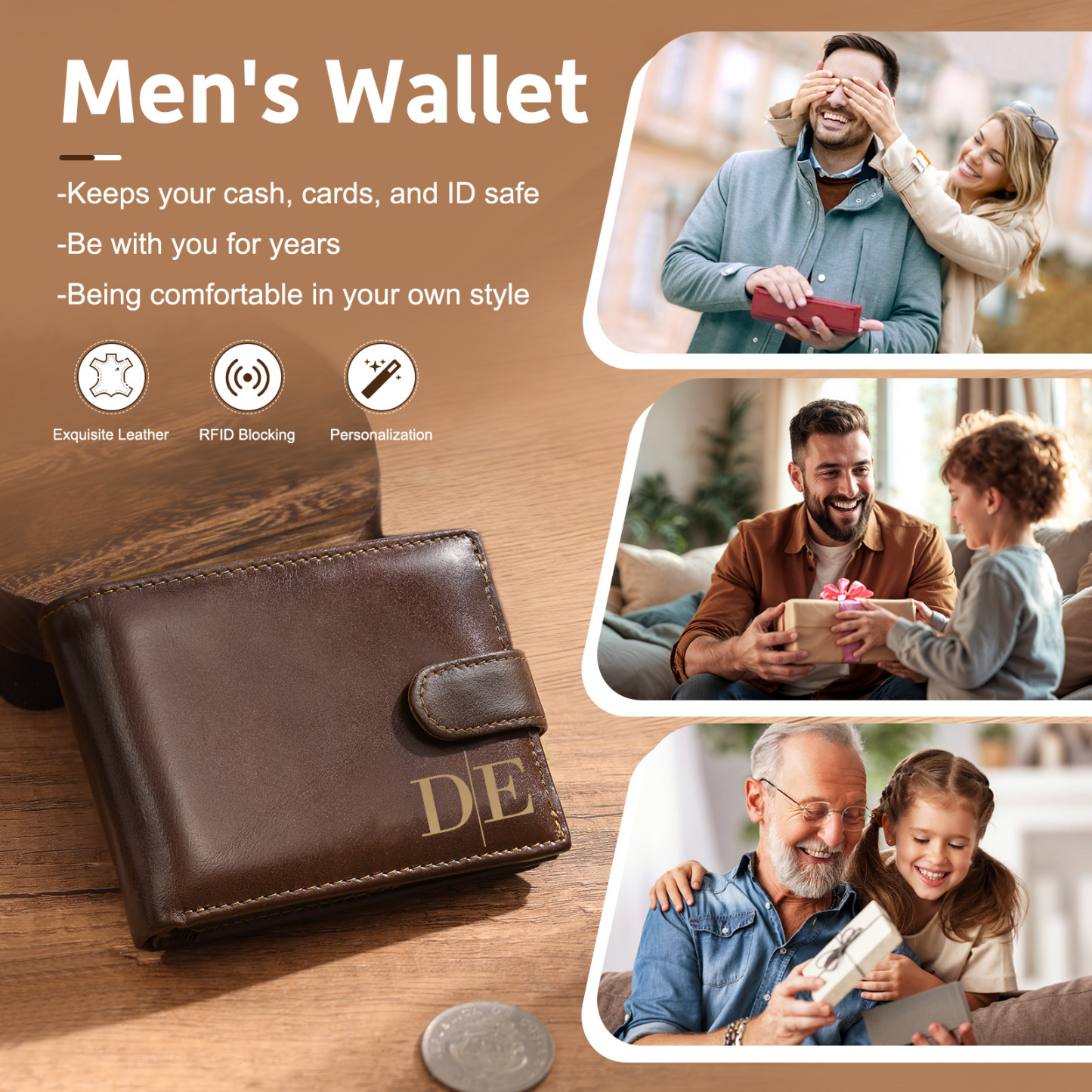 Keywords: personalized men’s wallet, custom engraved wallet, RFID-blocking wallet, top-grain leather wallet, gift for dad, gift for husband, anniversary gift for him, groomsman wallet gift, sentimental everyday gift, personalized leather accessory