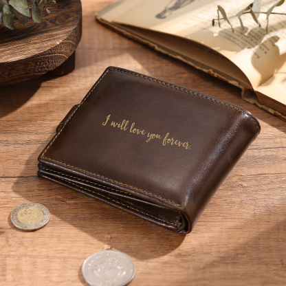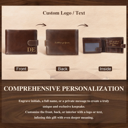 Give a meaningful and practical gift with this personalized men’s leather wallet—crafted to keep everyday essentials neatly organized while carrying a message that will be remembered for years to come. Personalize the front, back, or inside with initials, a name, or a heartfelt message, turning a classic wallet into a one-of-a-kind keepsake.