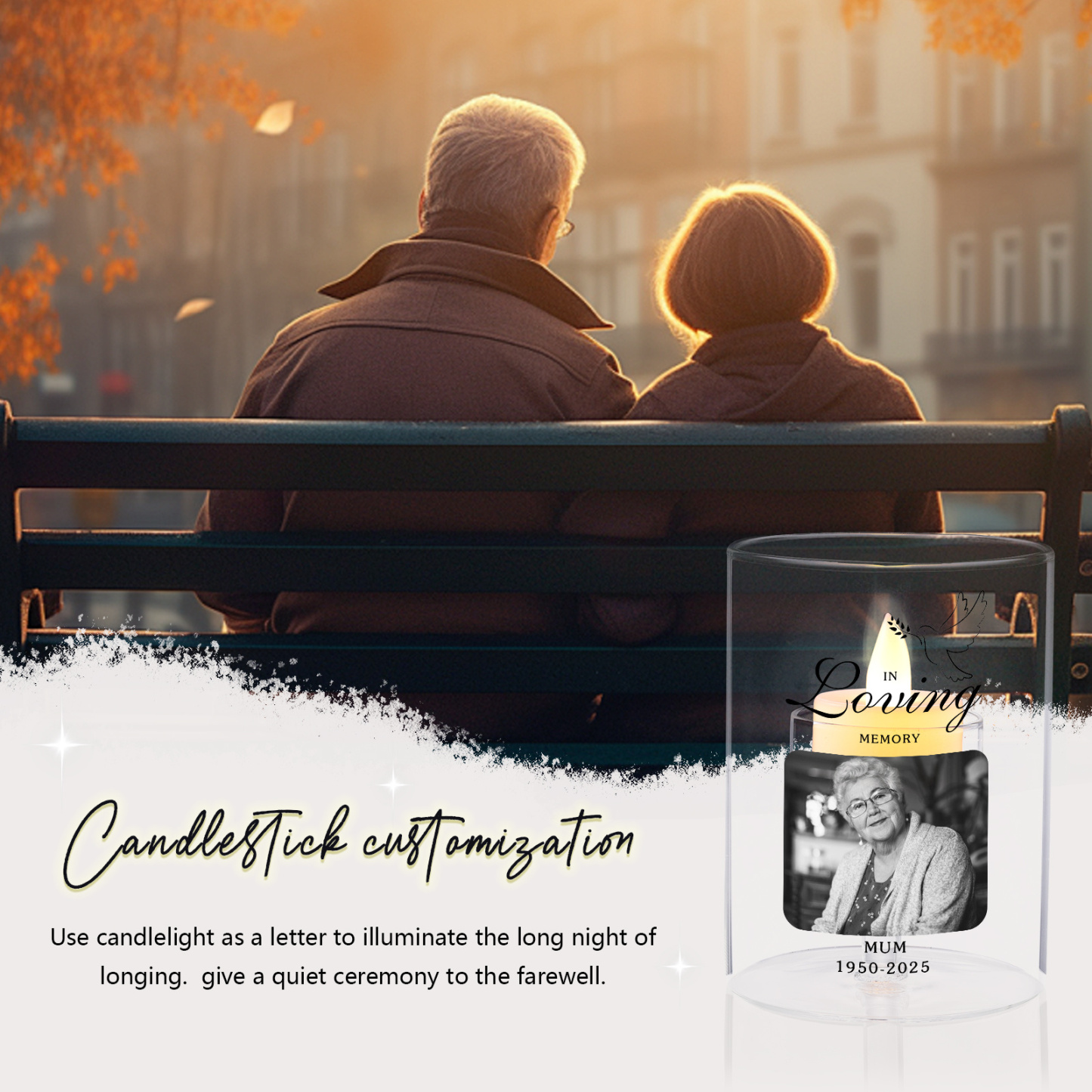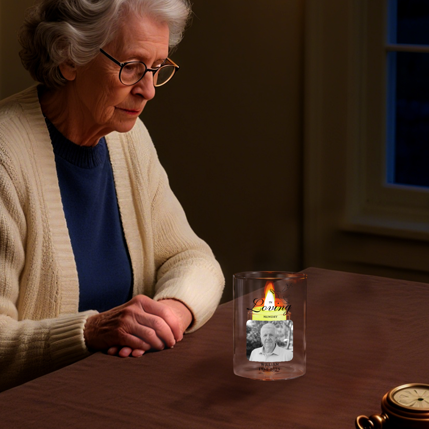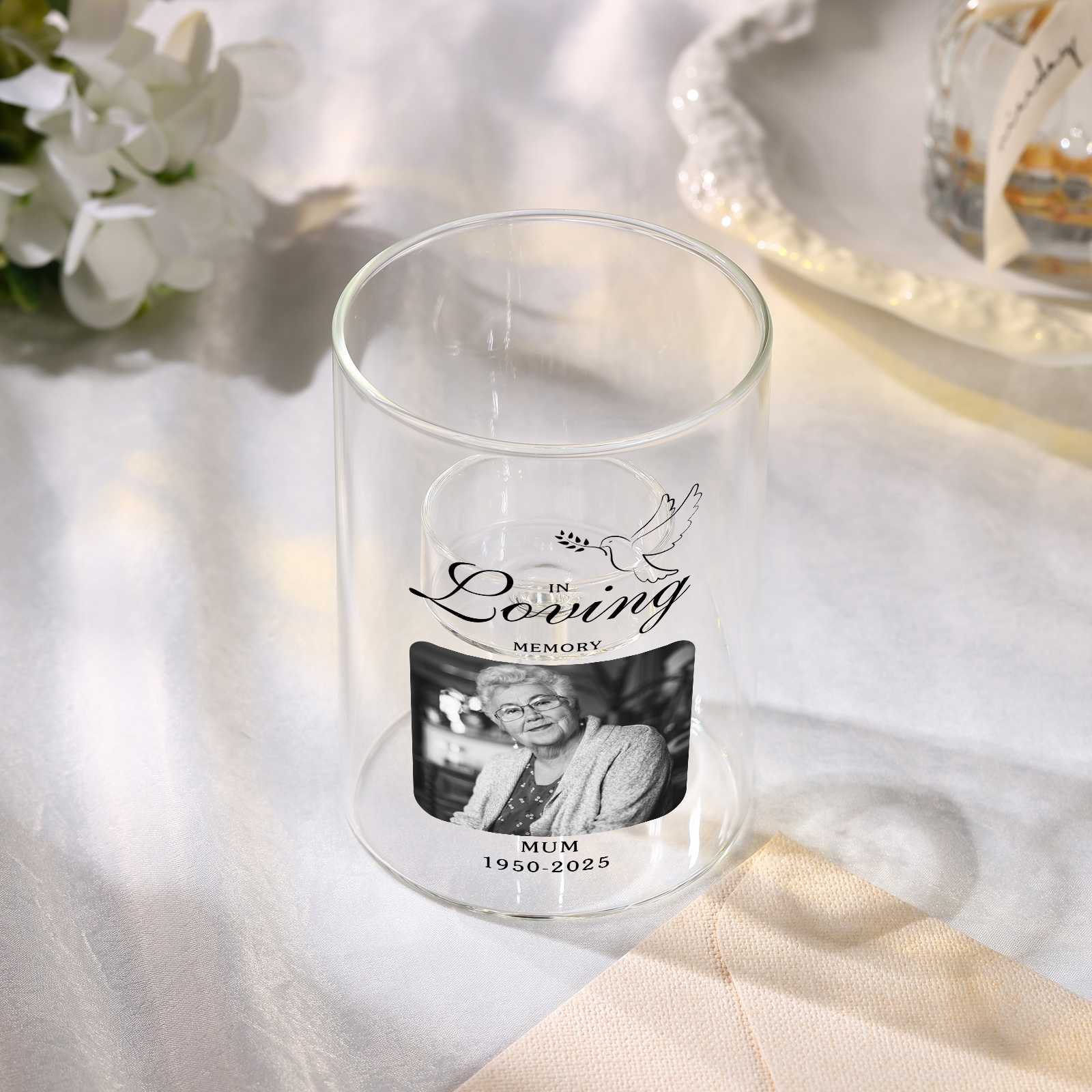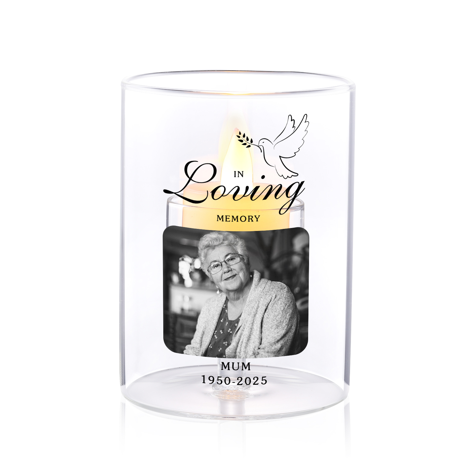 Give a comforting and practical gift with this personalized memorial candle holder, thoughtfully made for moms, dads, grandparents, partners, friends, or anyone you want to honor. Customizable with a photo, name, and years, it turns a gentle candle glow into a daily tribute and a cherished keepsake.