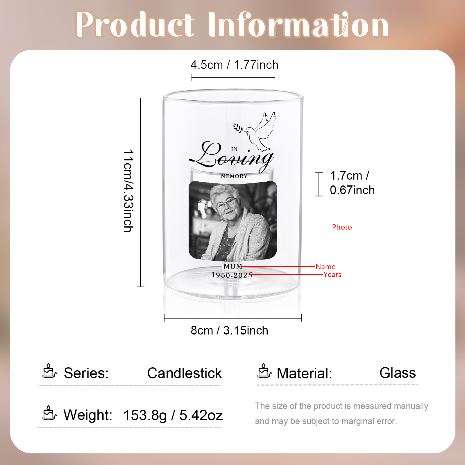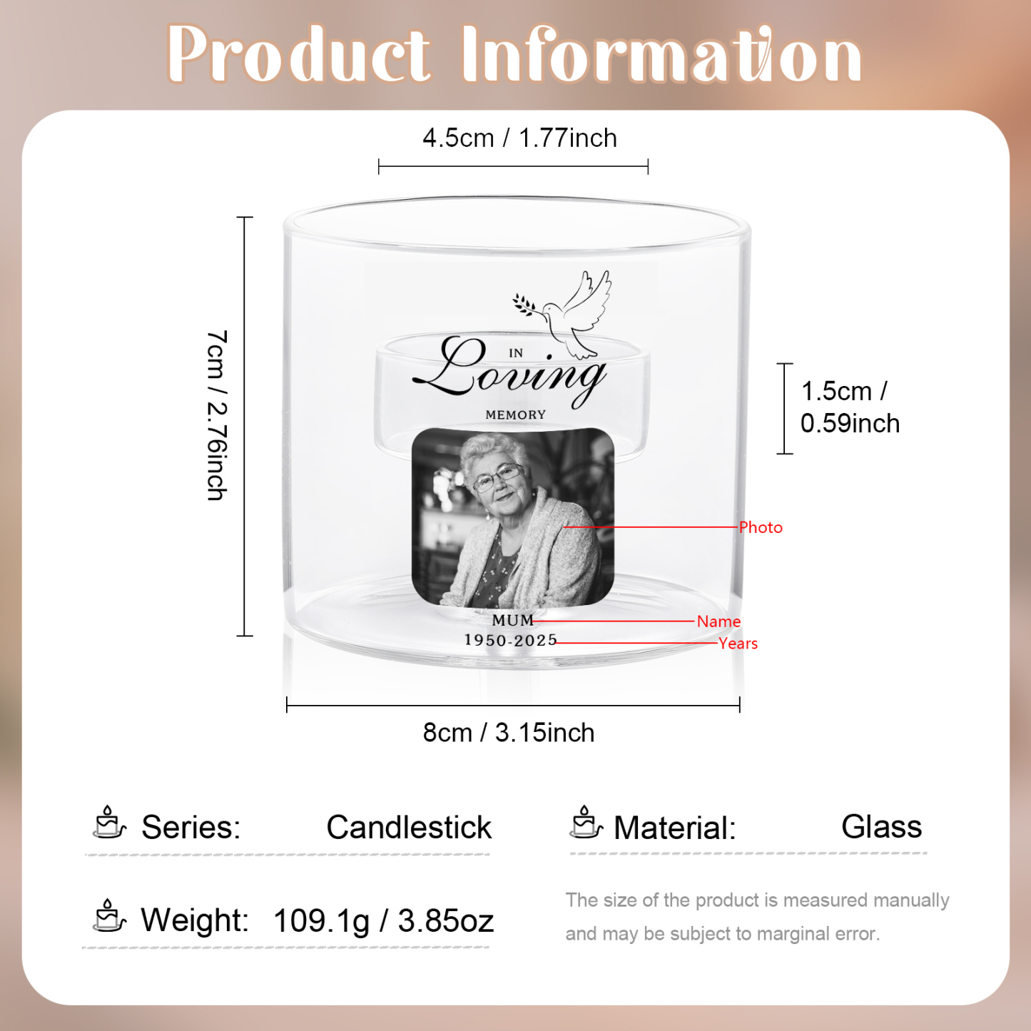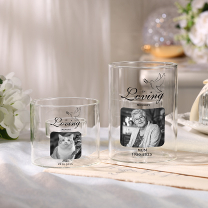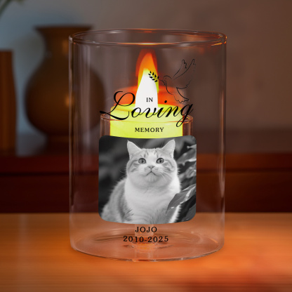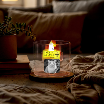 Keywords: personalized memorial candle holder, custom photo remembrance gift, in loving memory tealight holder, sympathy gift UK, bereavement gift, condolence present, pet memorial candle, glass candle holder, personalized keepsake
