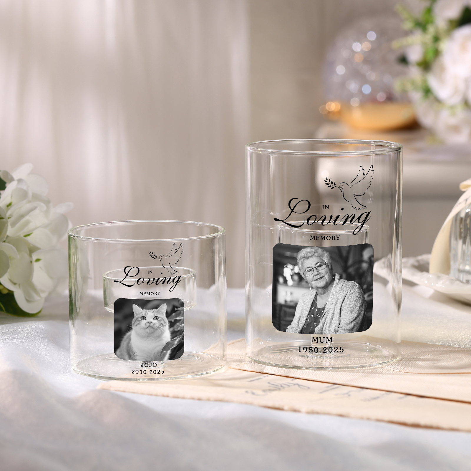 - Two sizes to suit mantels, bedside tables, or memorial corners