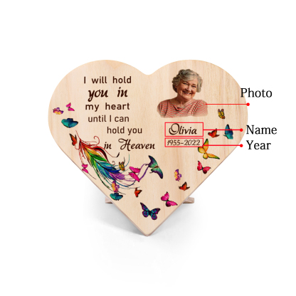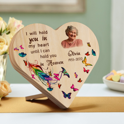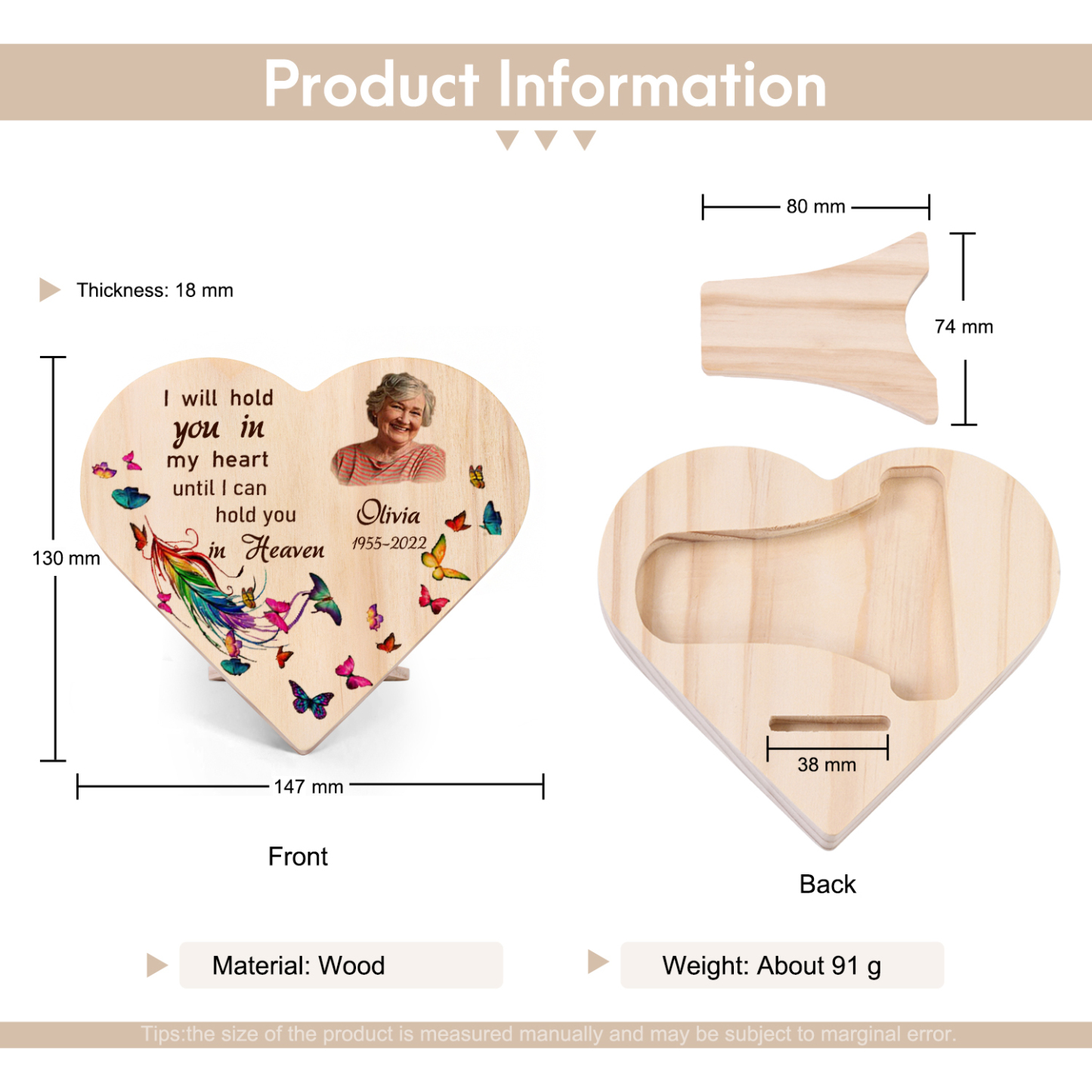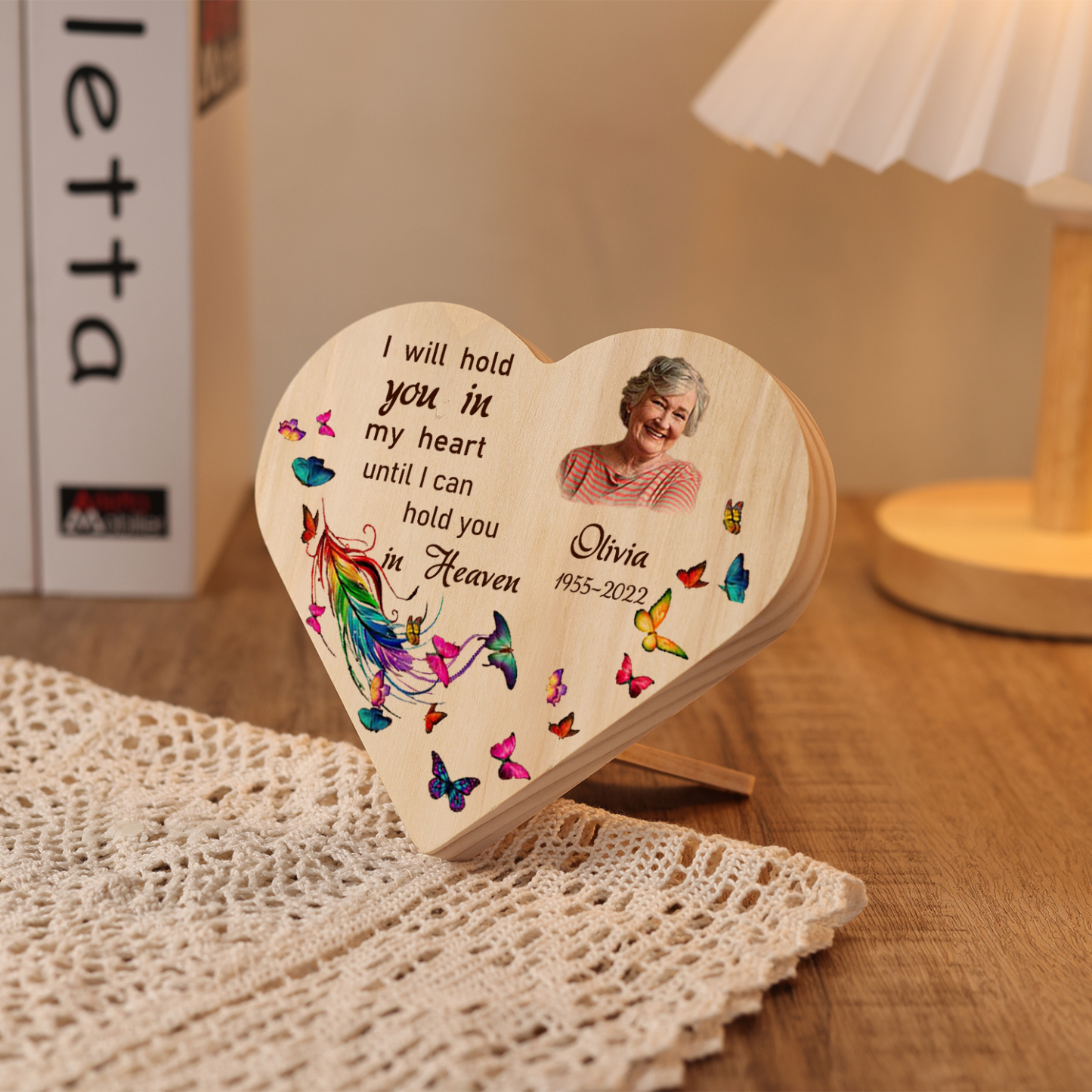 Personalized Memorial Wood Heart Ornament-Custom Heart Photo Wooden Desktop Decoration-I Will Hold You In My Heart