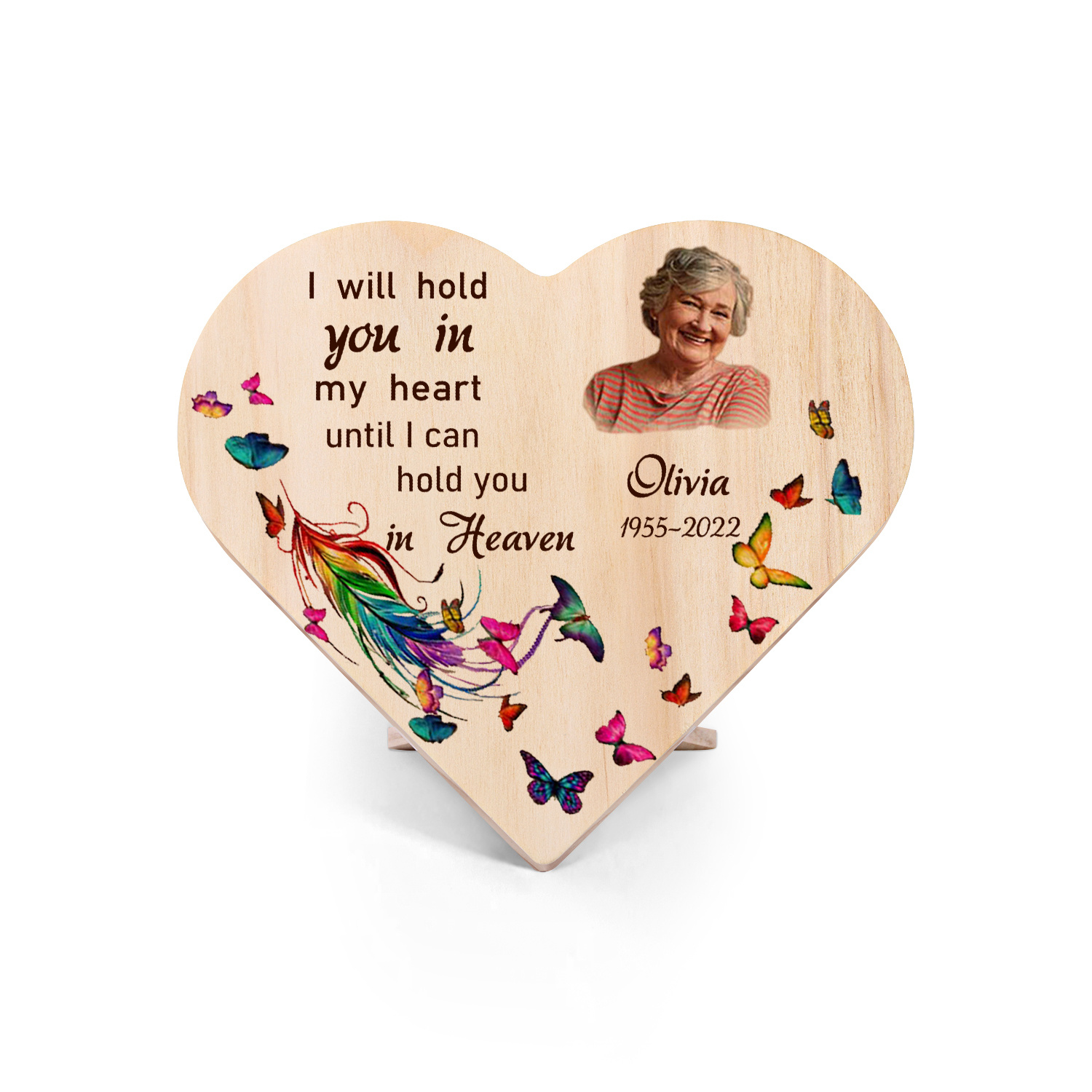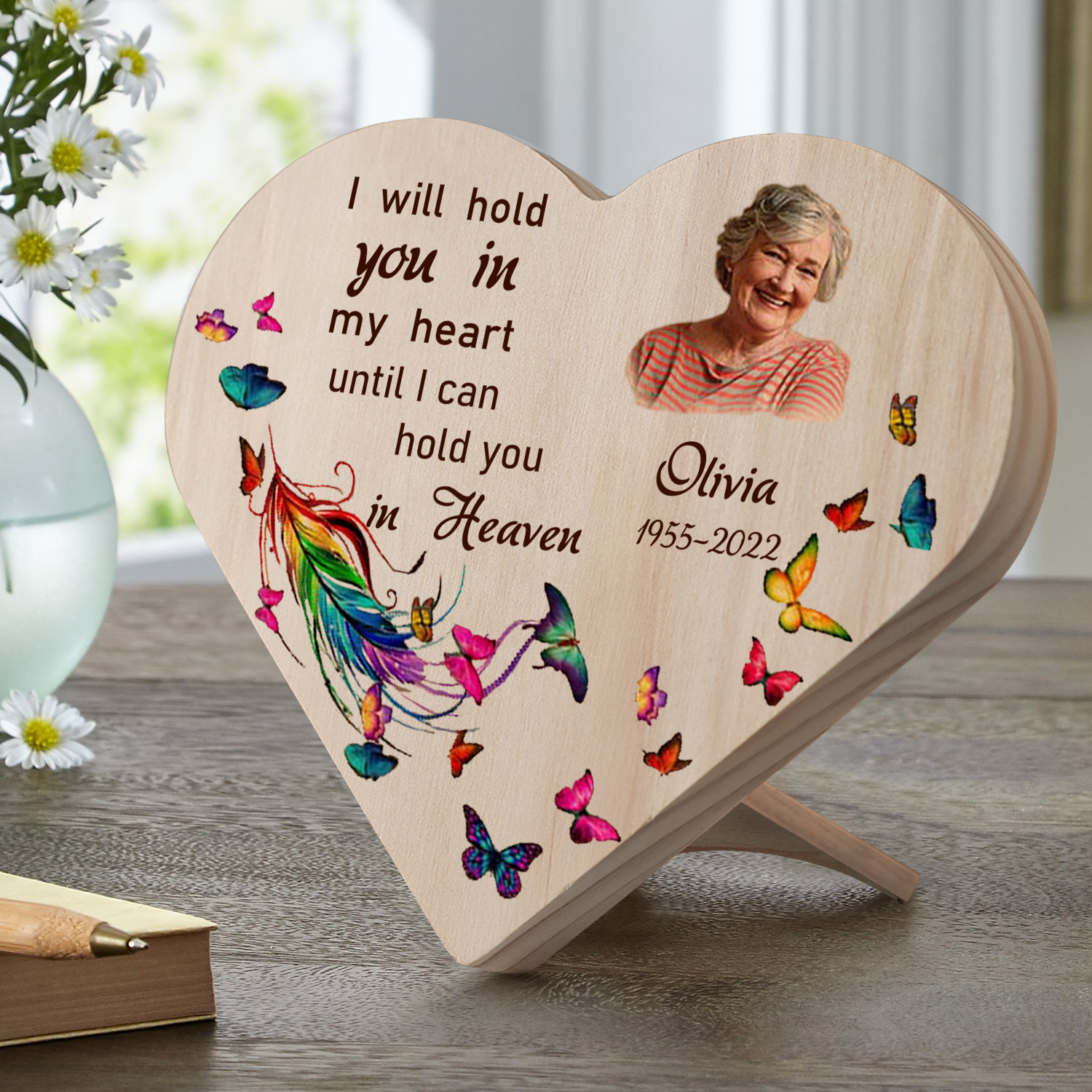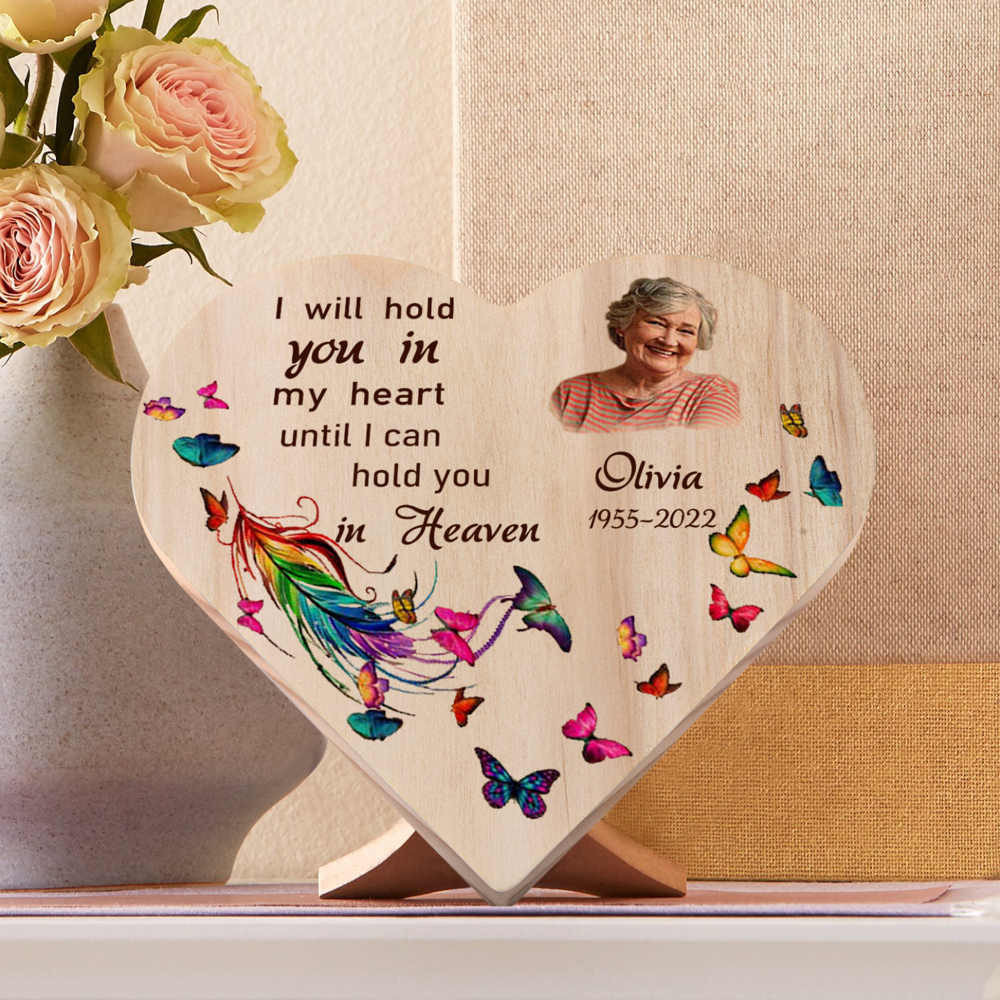 Personalized Memorial Wood Heart Ornament-Custom Heart Photo Wooden Desktop Decoration-I Will Hold You In My Heart