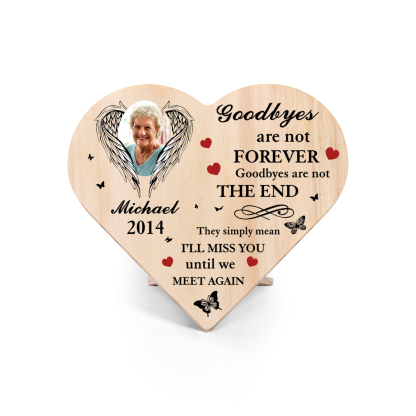 This beautifully designed piece features angel wings and butterfly patterns imprinted on a high-quality wood surface for a timeless appeal. You can personalize it with a name, photo, and date of your choosing, making it an ideal gift or memento.