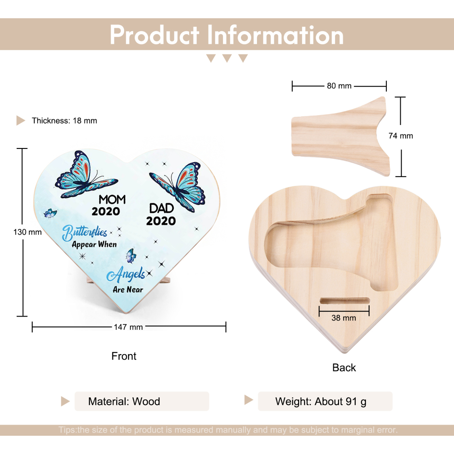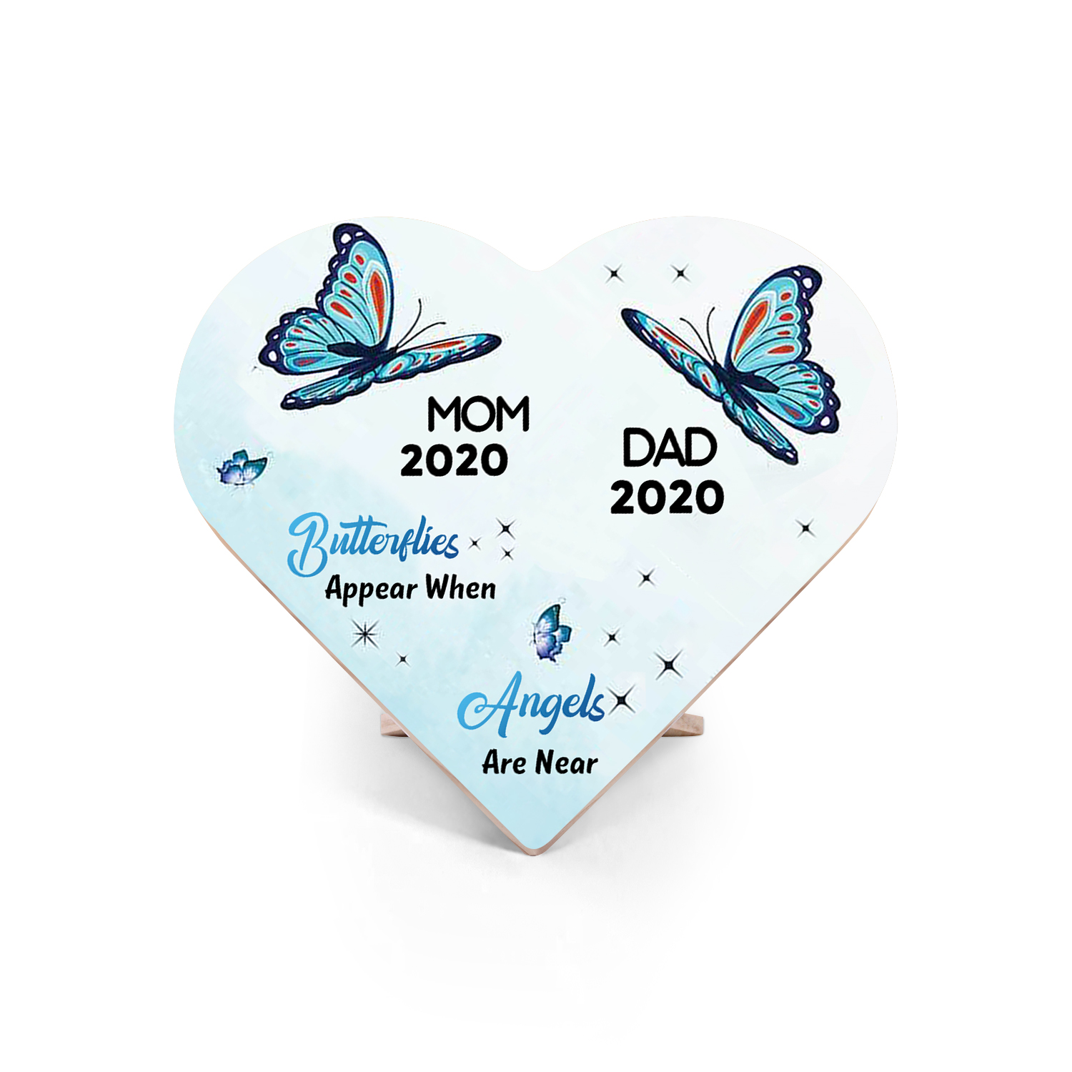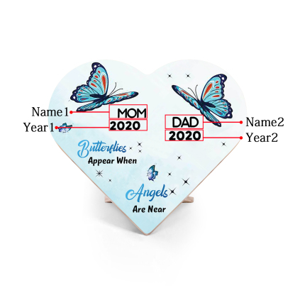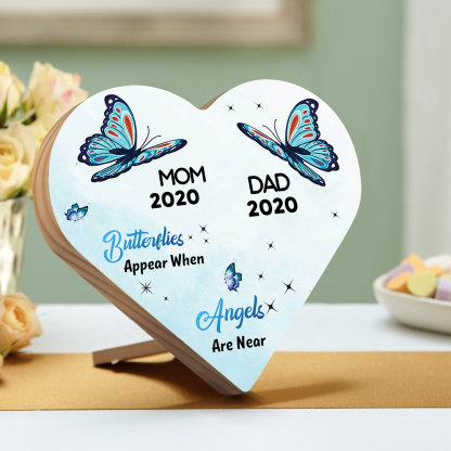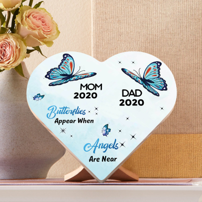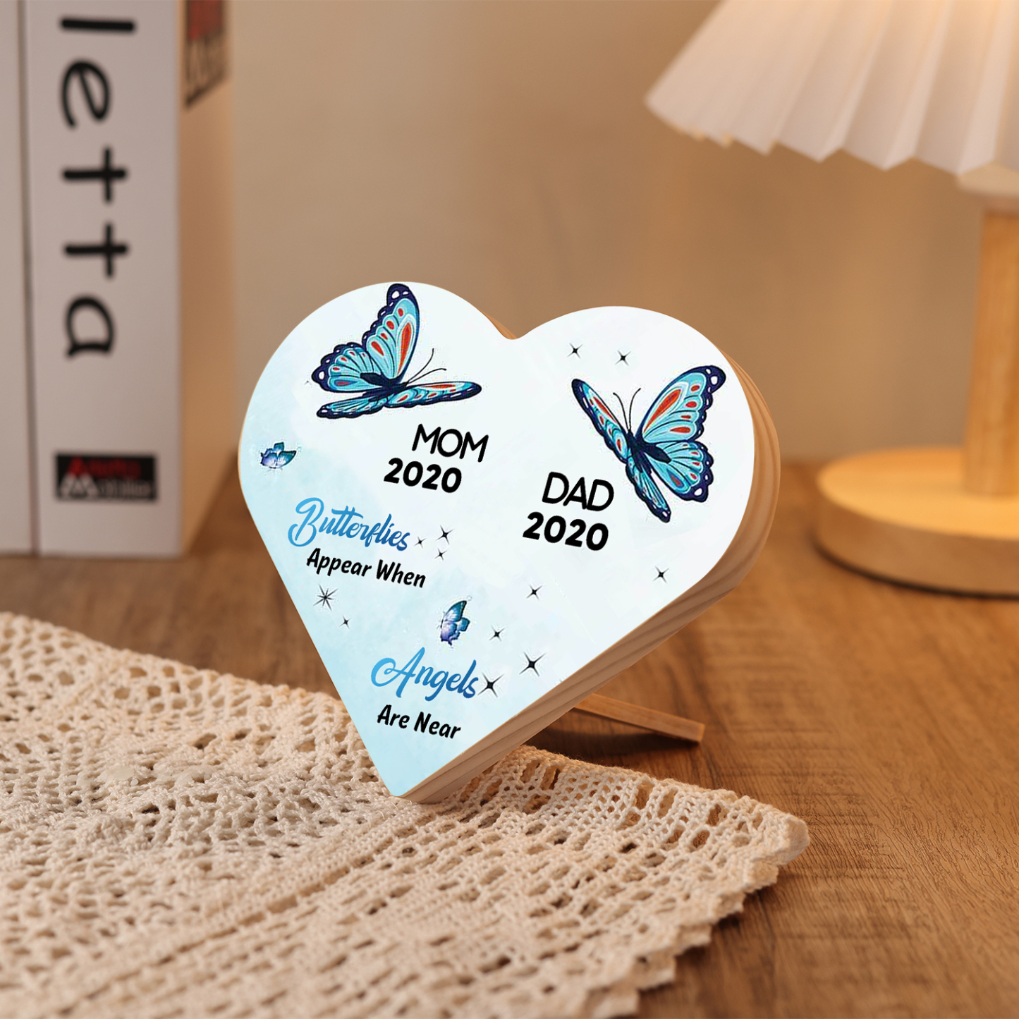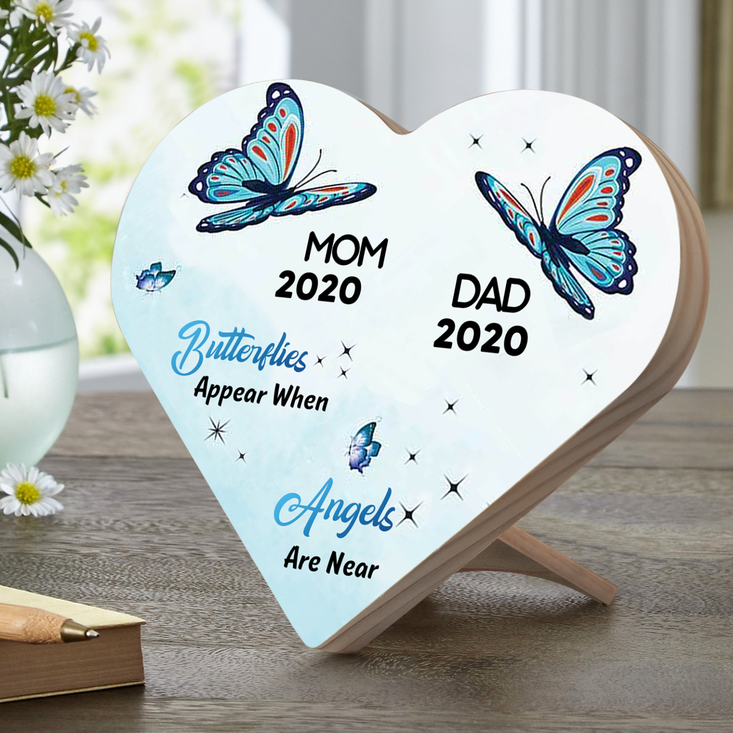 Personalized Memorial Butterfly Wood Heart Ornament-Custom Heart Wooden Desktop Decoration-Butterflies Appear When Angels Are Near
