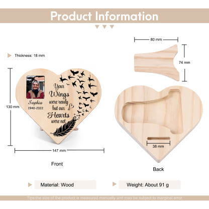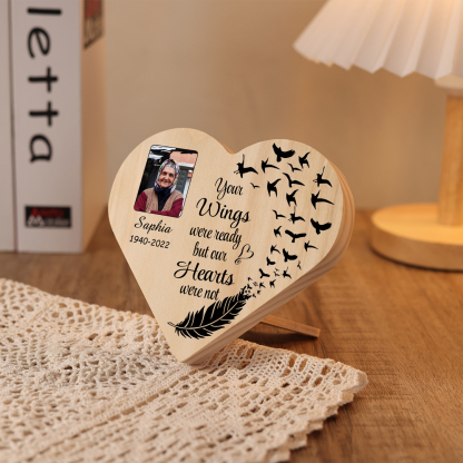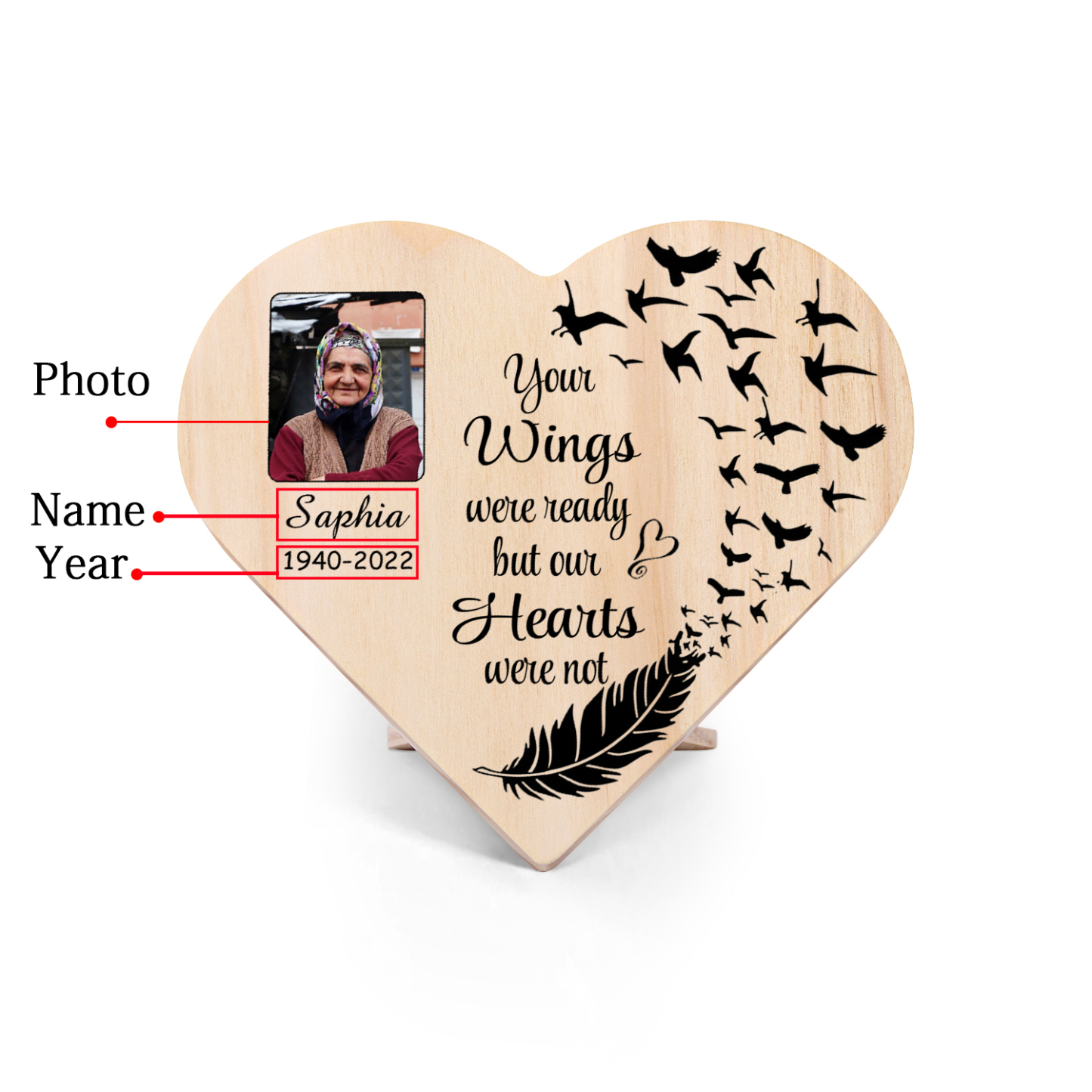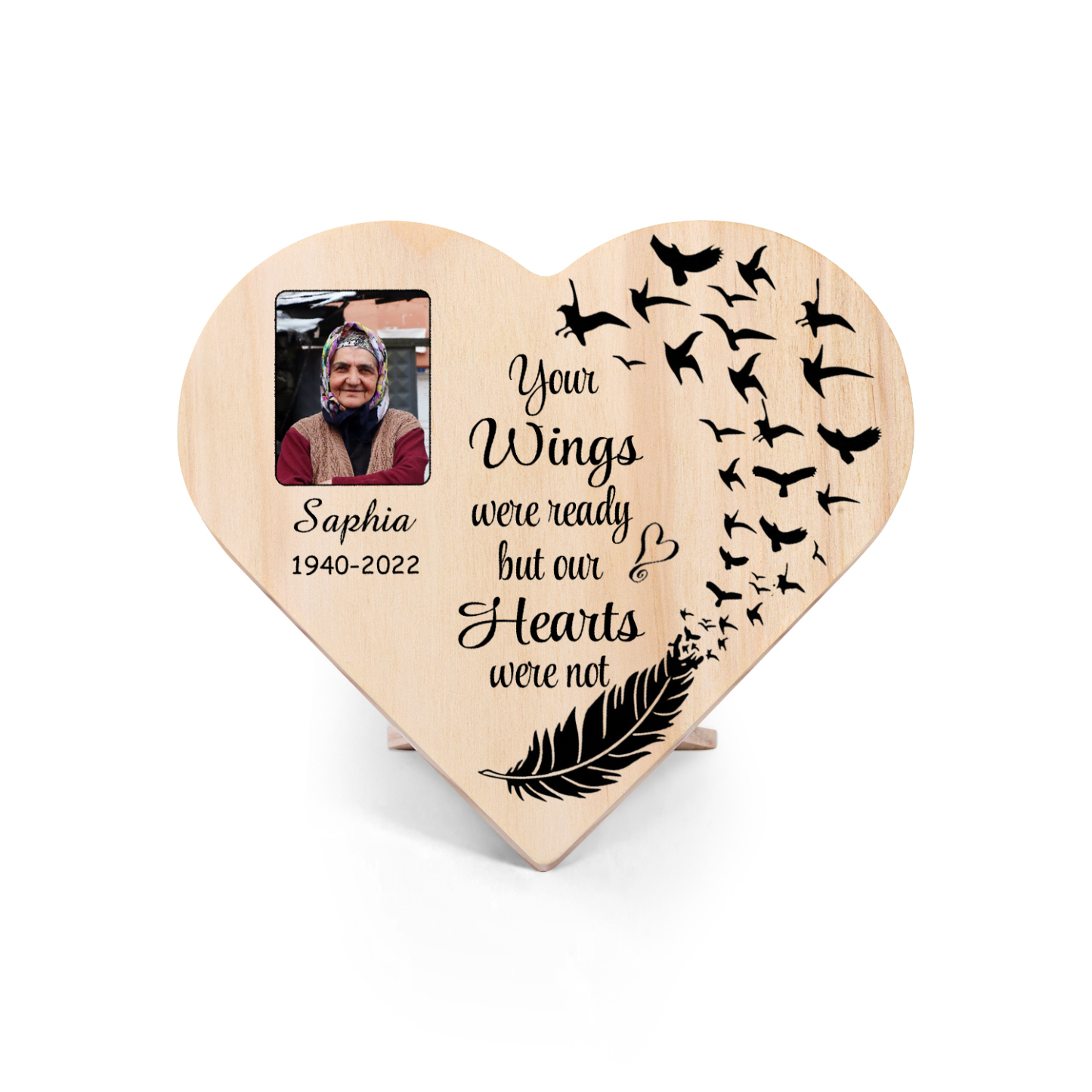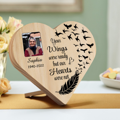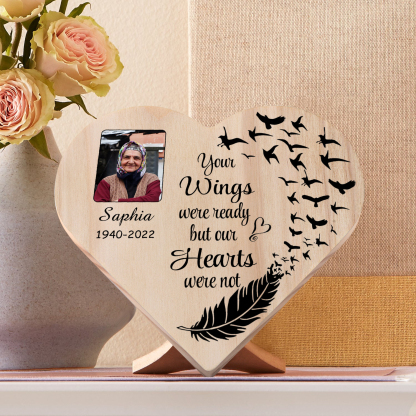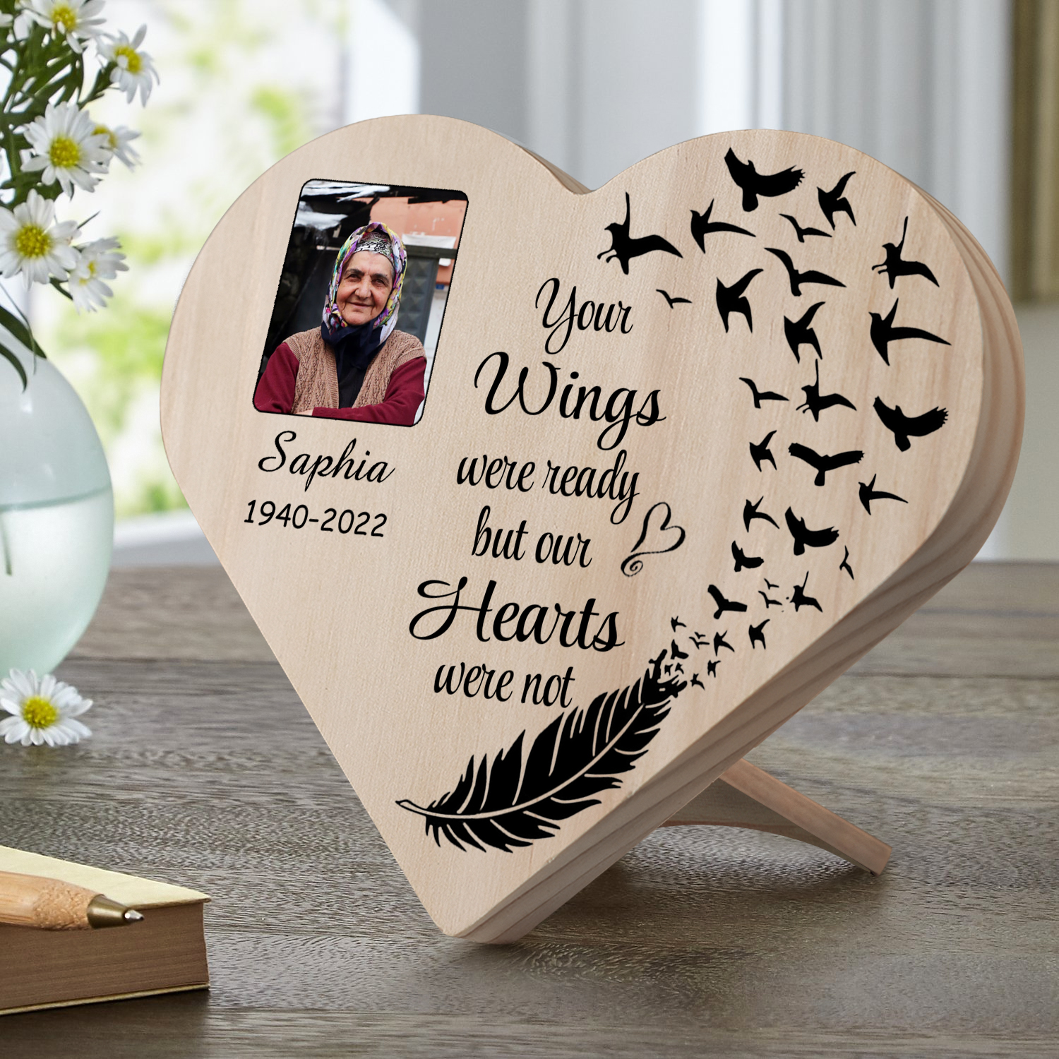 Personalized Memorial Wood Heart Ornament-Custom Heart Wooden Desktop Decoration-Your Wings Were Ready But My Heart Wasn't