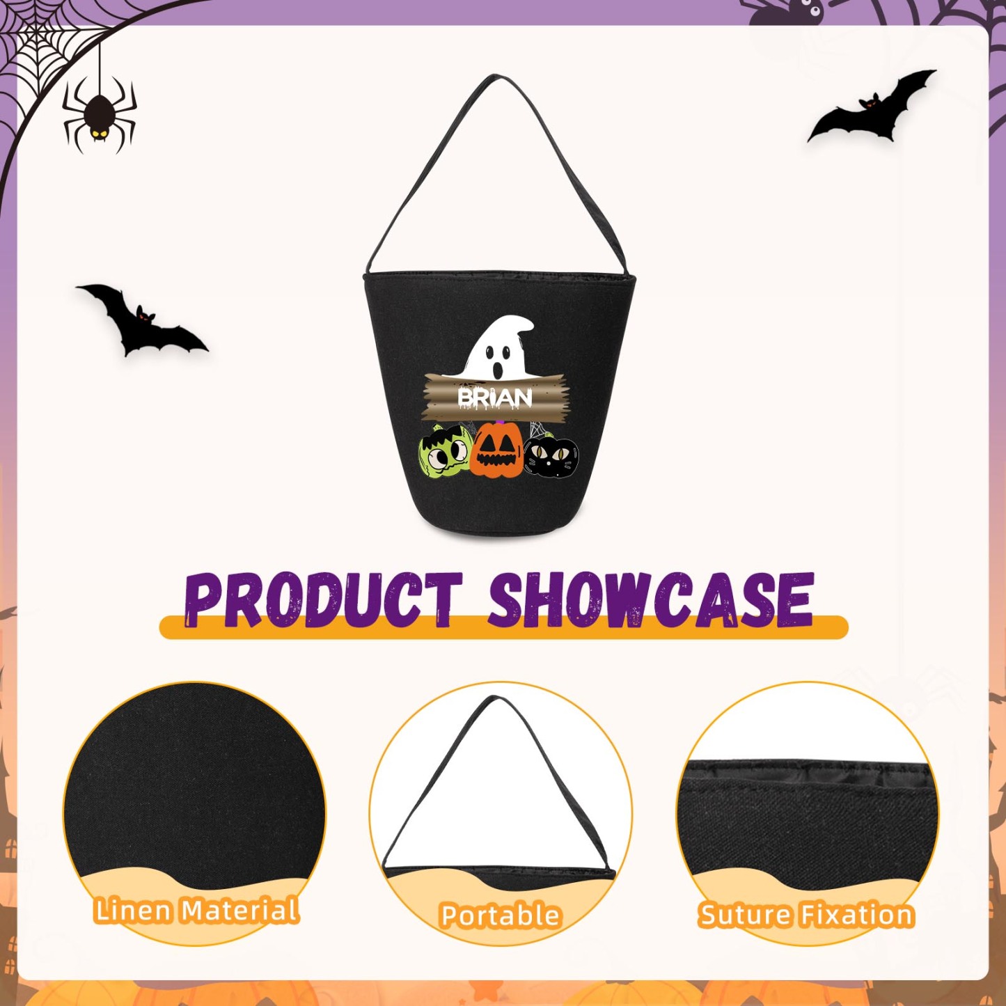 🎃Introducing our latest Halloween Candy Bag, now available with customizable names! This spooktacular candy bag is the perfect accessory for trick-or-treating and Halloween parties. Made from durable materials, it ensures your candies stay safe and secure throughout the night.
