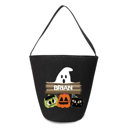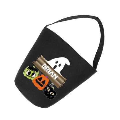 Personalized Halloween Tote Black Bag Custom 1 Name Ghost Tote Trick or Treat Bag Kids Halloween Gifts
