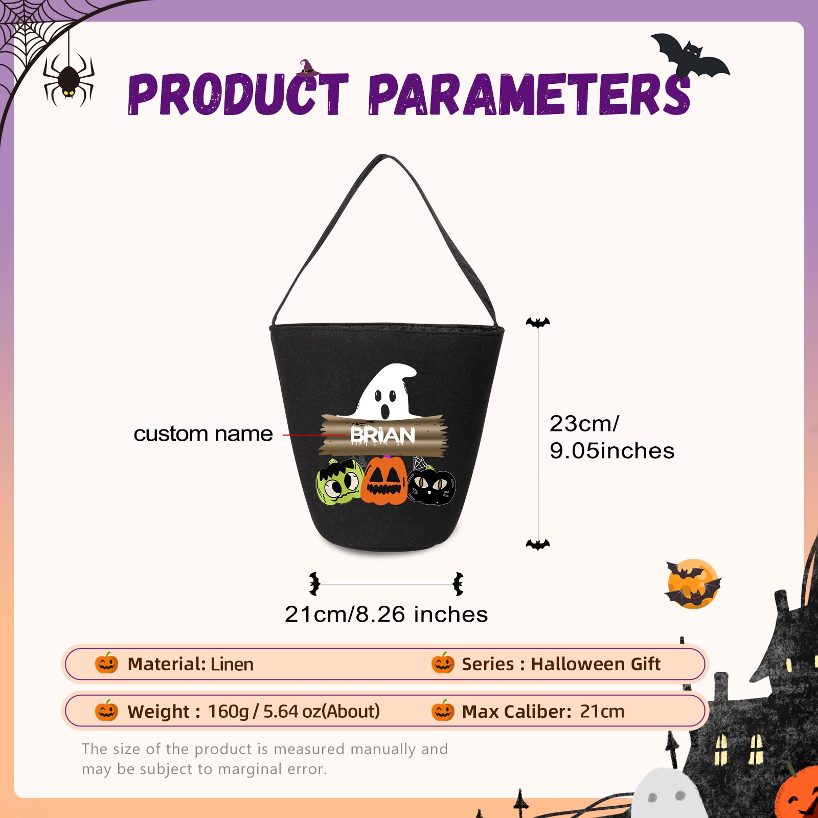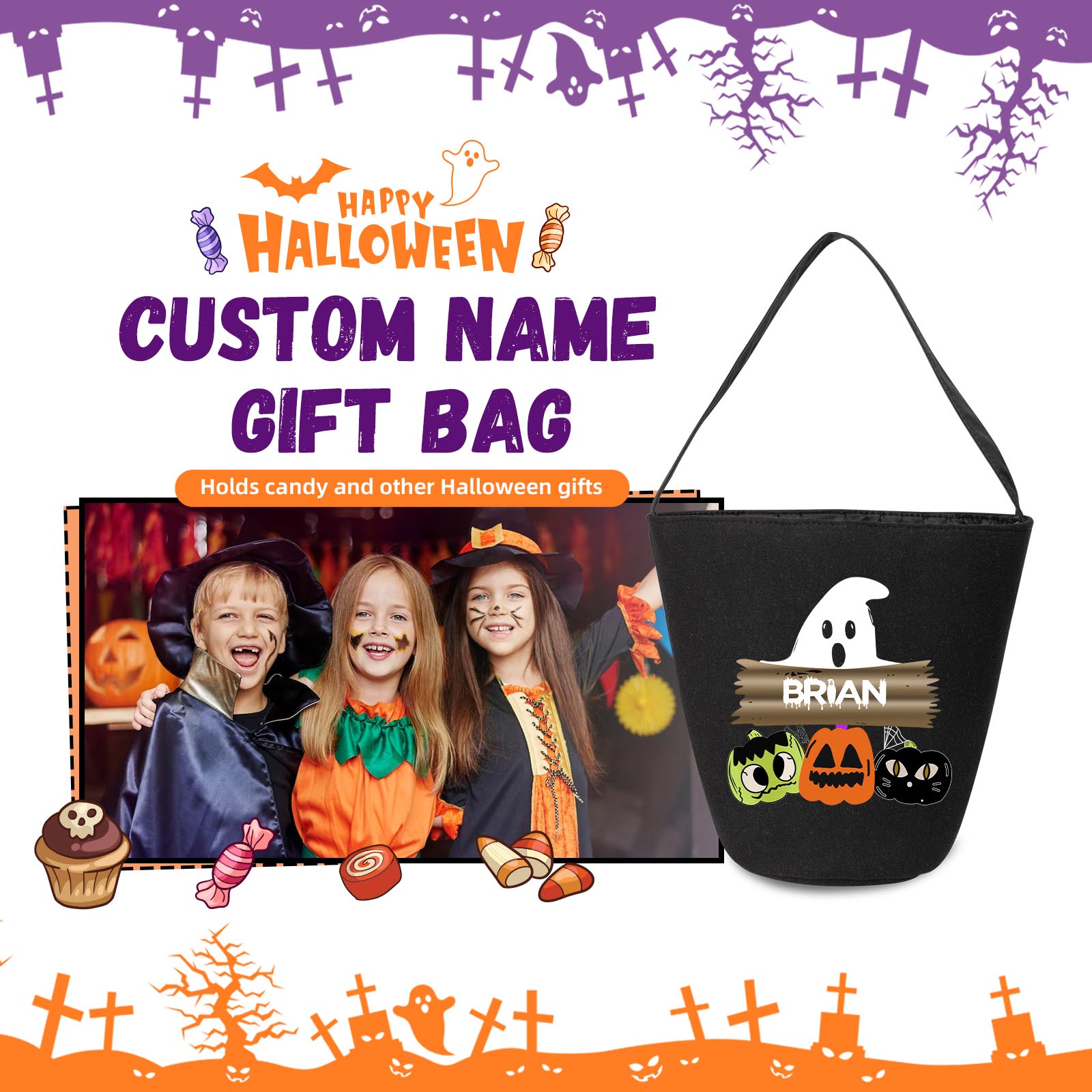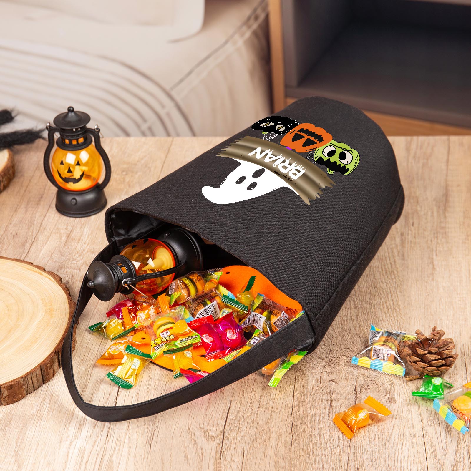 With our unique customization option, you can add your desired name to make this candy bag truly one-of-a-kind. Whether it's your own name, a spooky moniker, or a fun nickname, personalizing your candy bag adds an extra touch of Halloween magic.