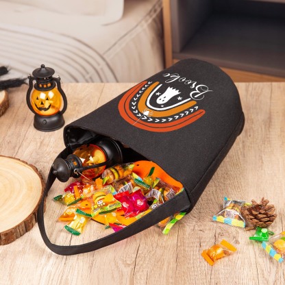With our unique customization option, you can add your desired name to make this candy bag truly one-of-a-kind. Whether it's your own name, a spooky moniker, or a fun nickname, personalizing your candy bag adds an extra touch of Halloween magic.