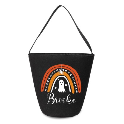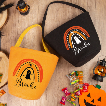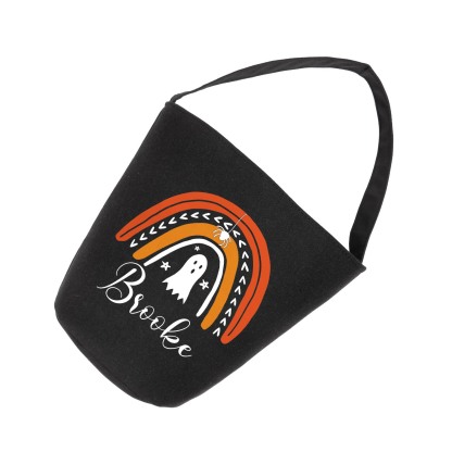 Personalized Happy Halloween Ghost Tote Black Bag, Custom 1 Name Candy Bag Halloween Gift